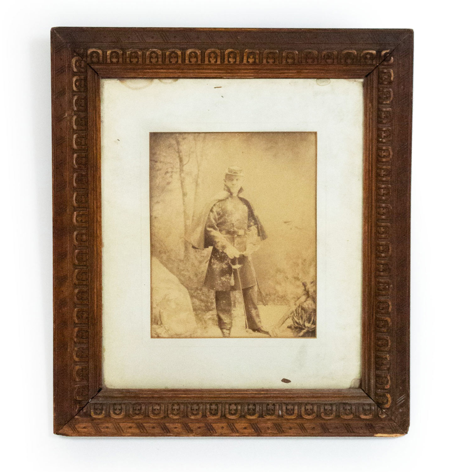 American Victorian walnut framed photograph of Civil War soldier
