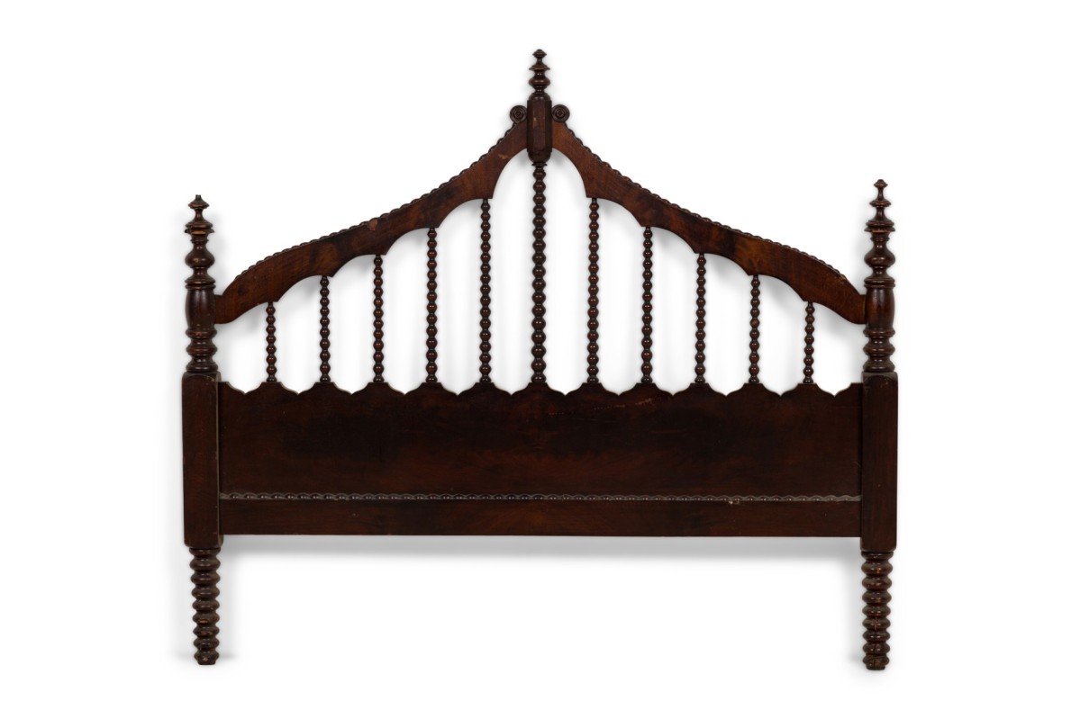 American Gothic Victorian full size spool bed headboard and footboard with beaded railings ending on baluster legs with finials. (No Side Rails)