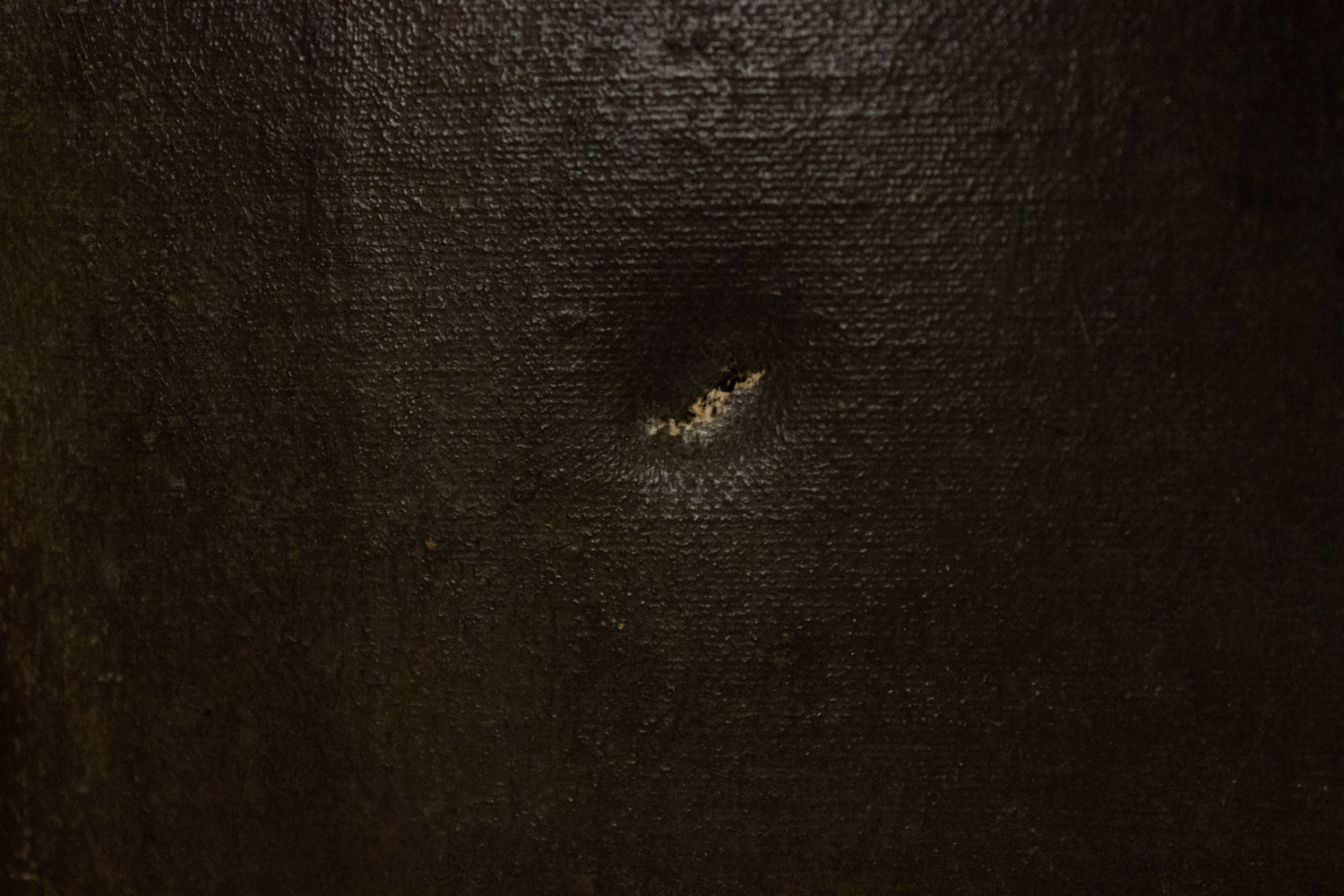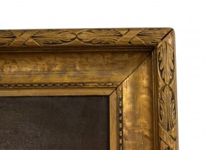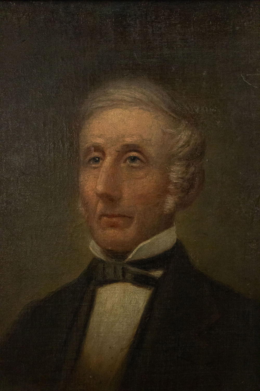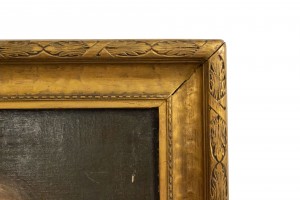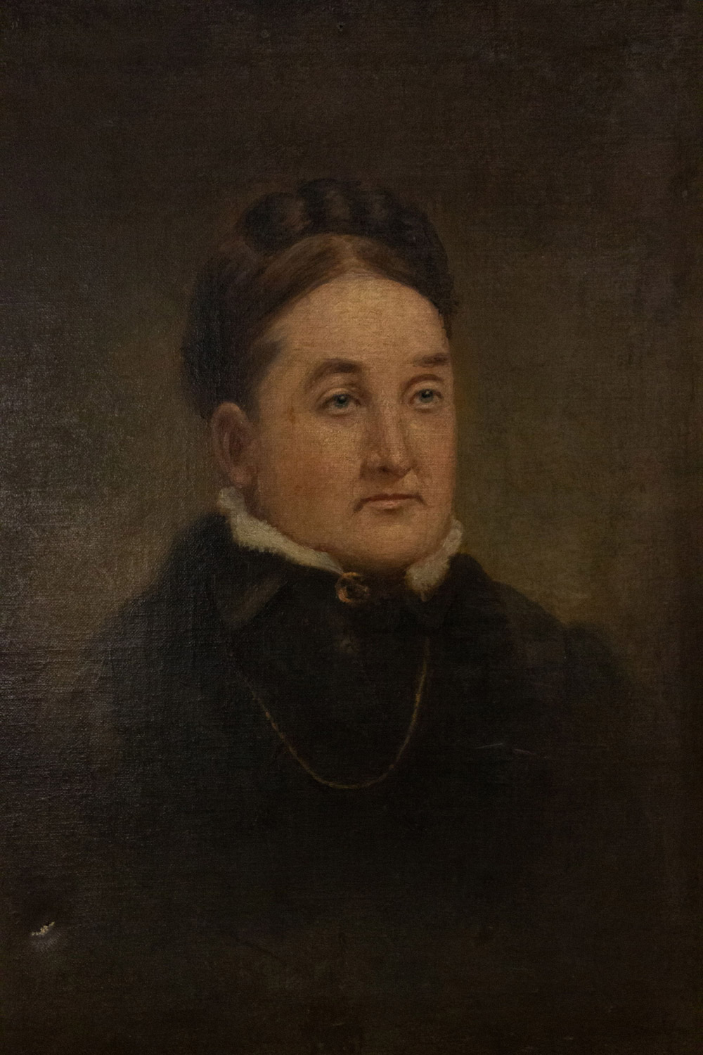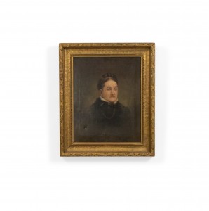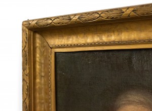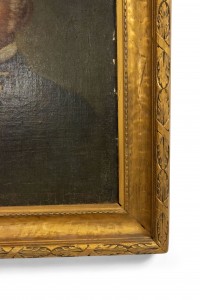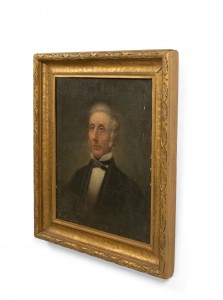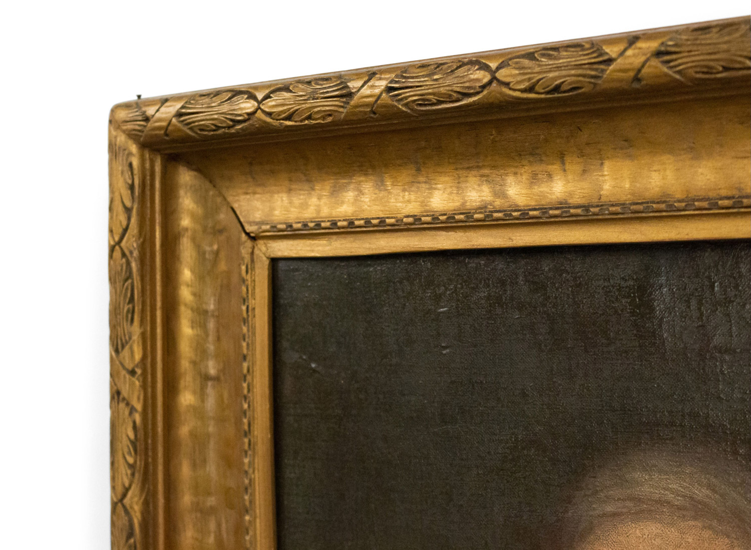PAIR of American Victorian style gilt framed oil painting portraits of lady with necklace and man with white collar