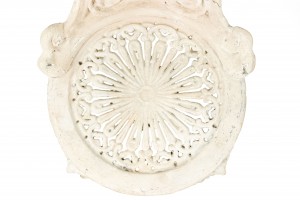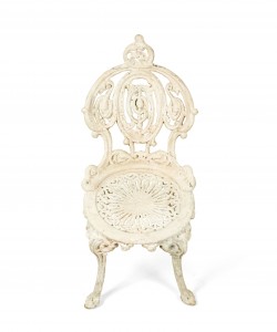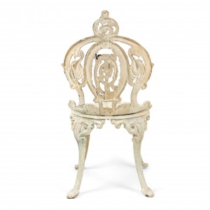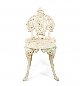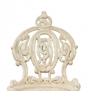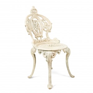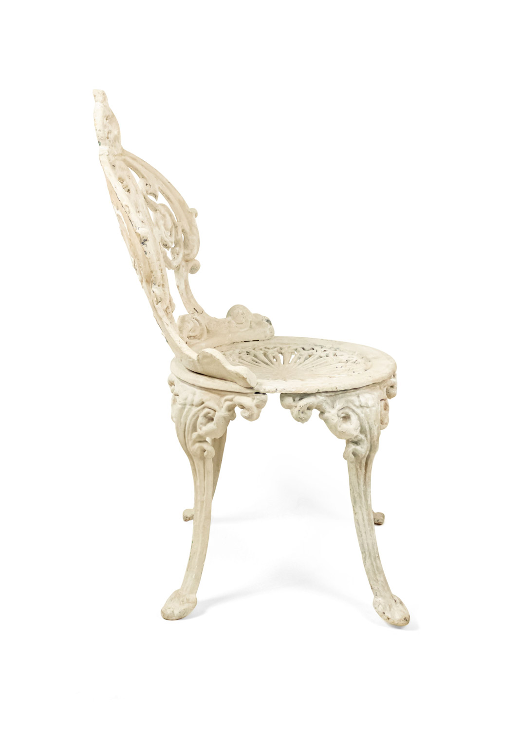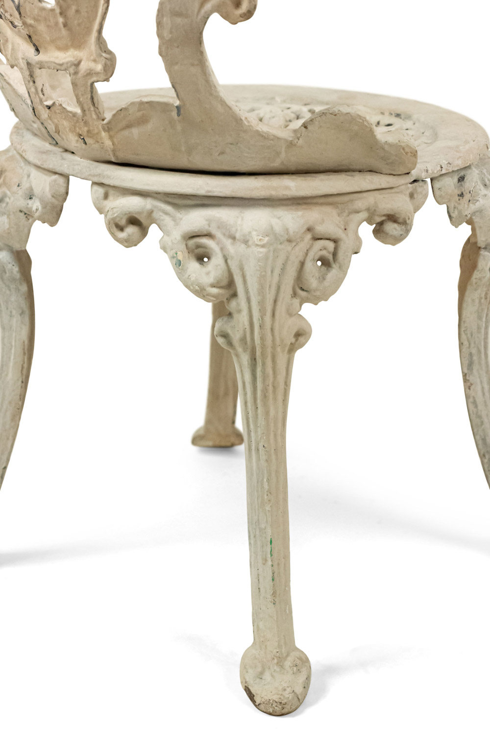 4 Outdoor American Victorian painted iron side chairs with oval scroll and filigree back and round seat (PRICED EACH)