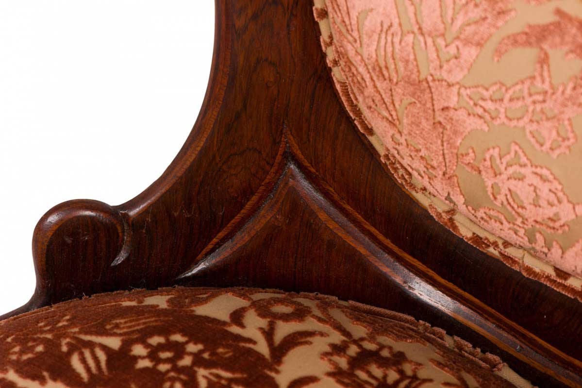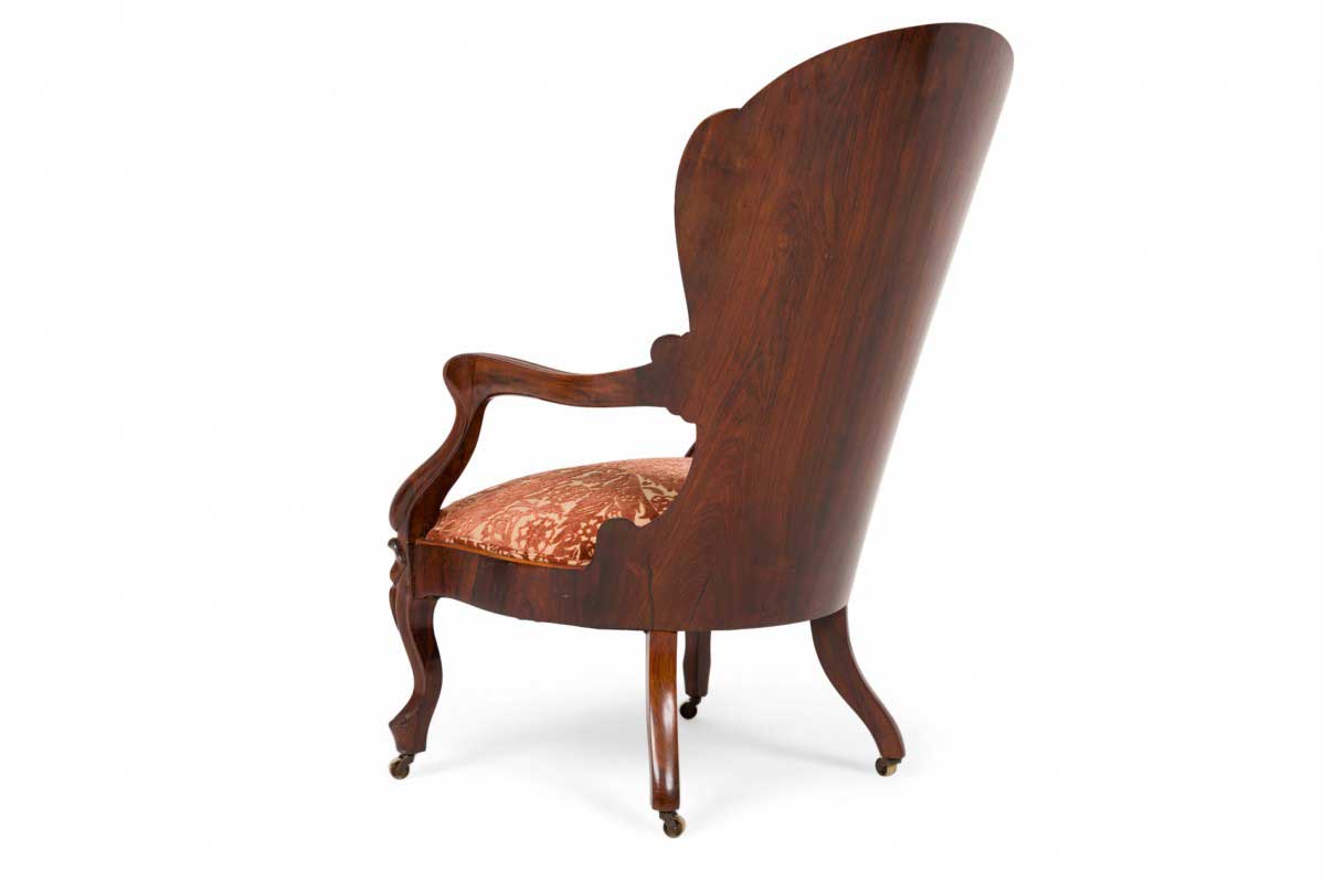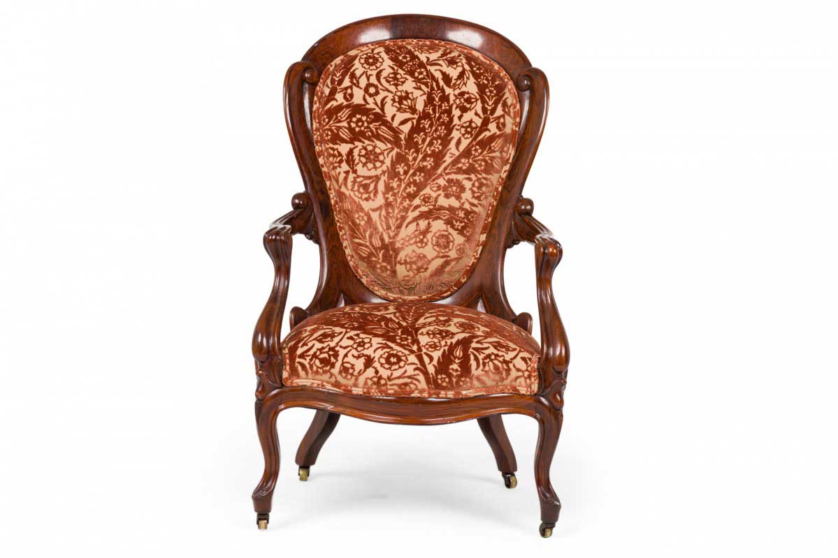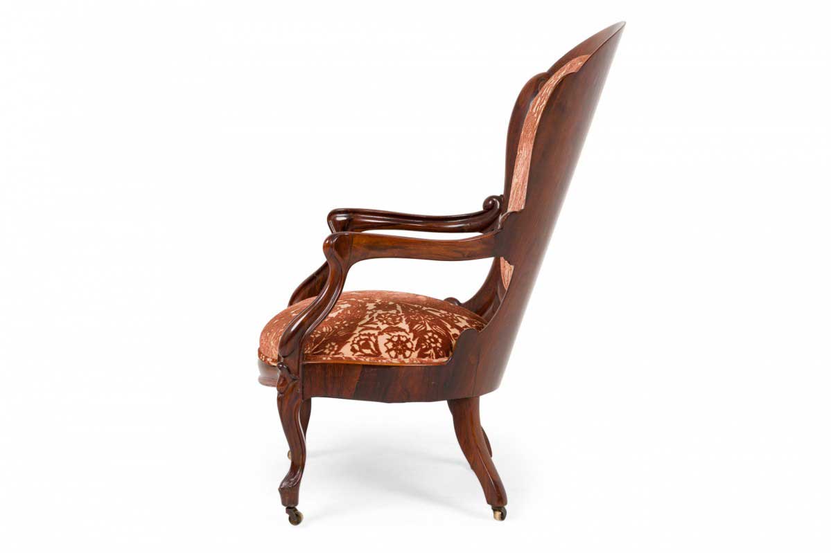 American Victorian Rosewood Floral Velvet Upholstered Armchair