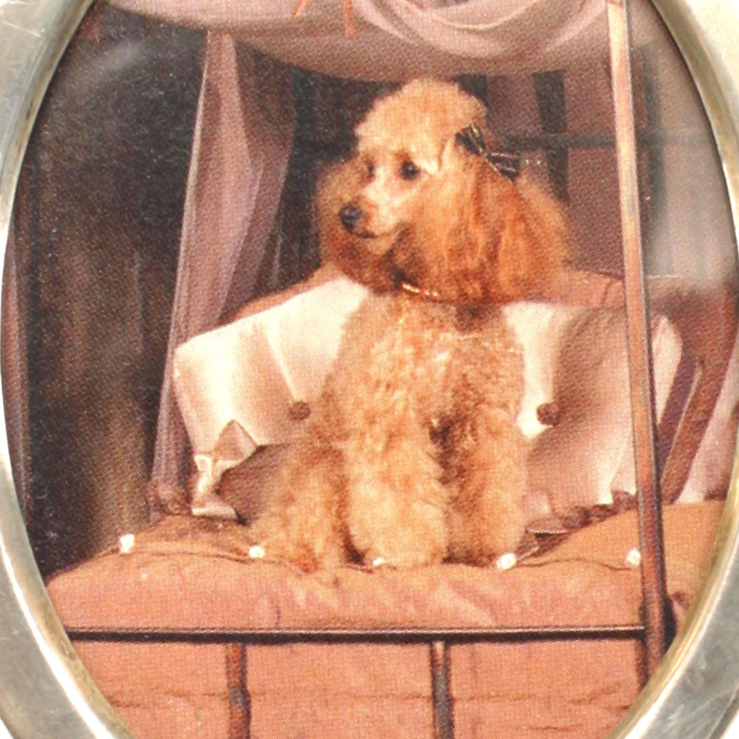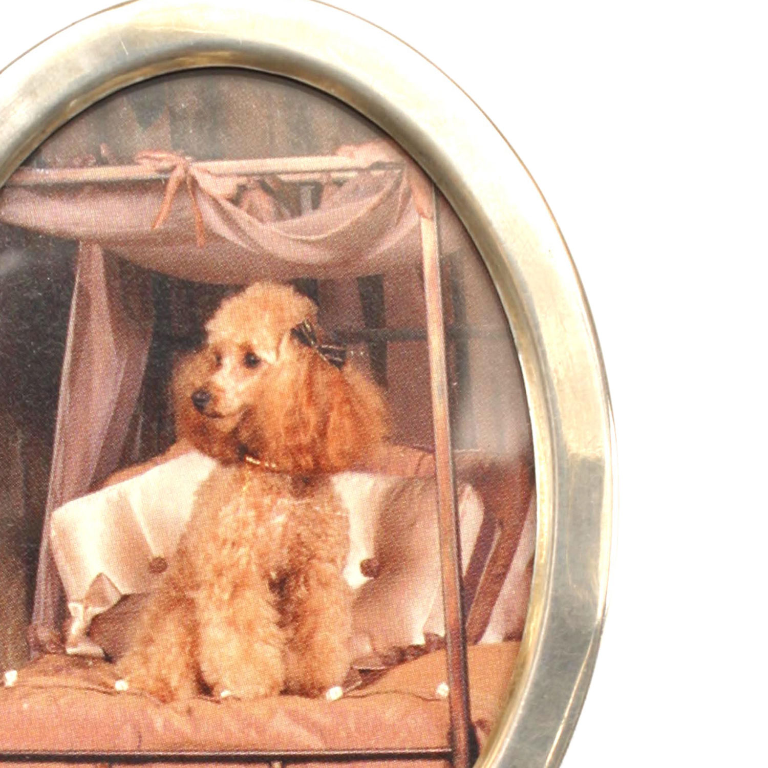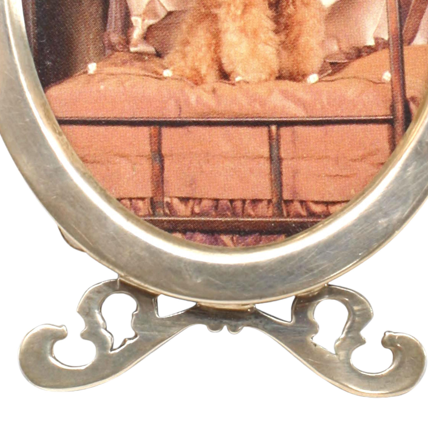 American Victorian sterling silver small easel picture frame standing on an open scroll base.
