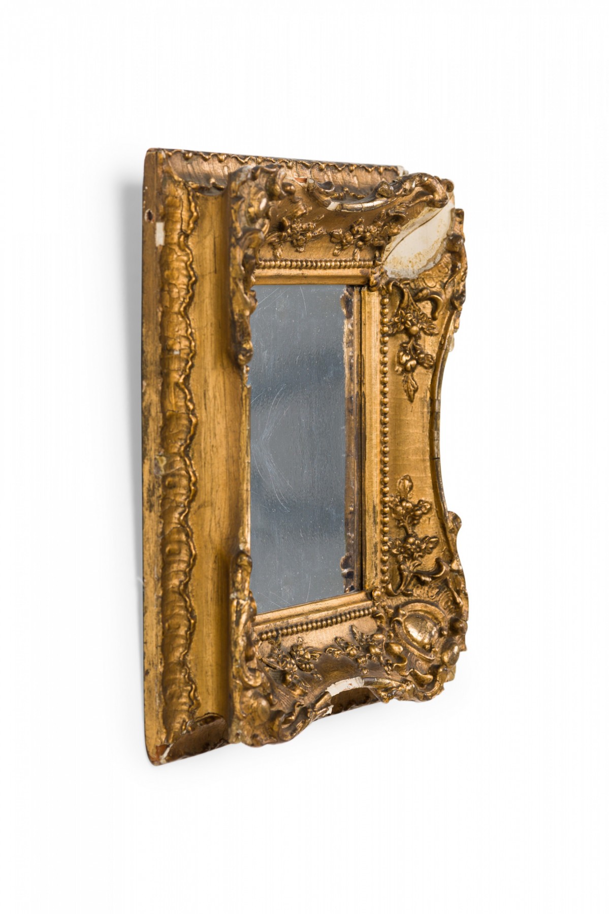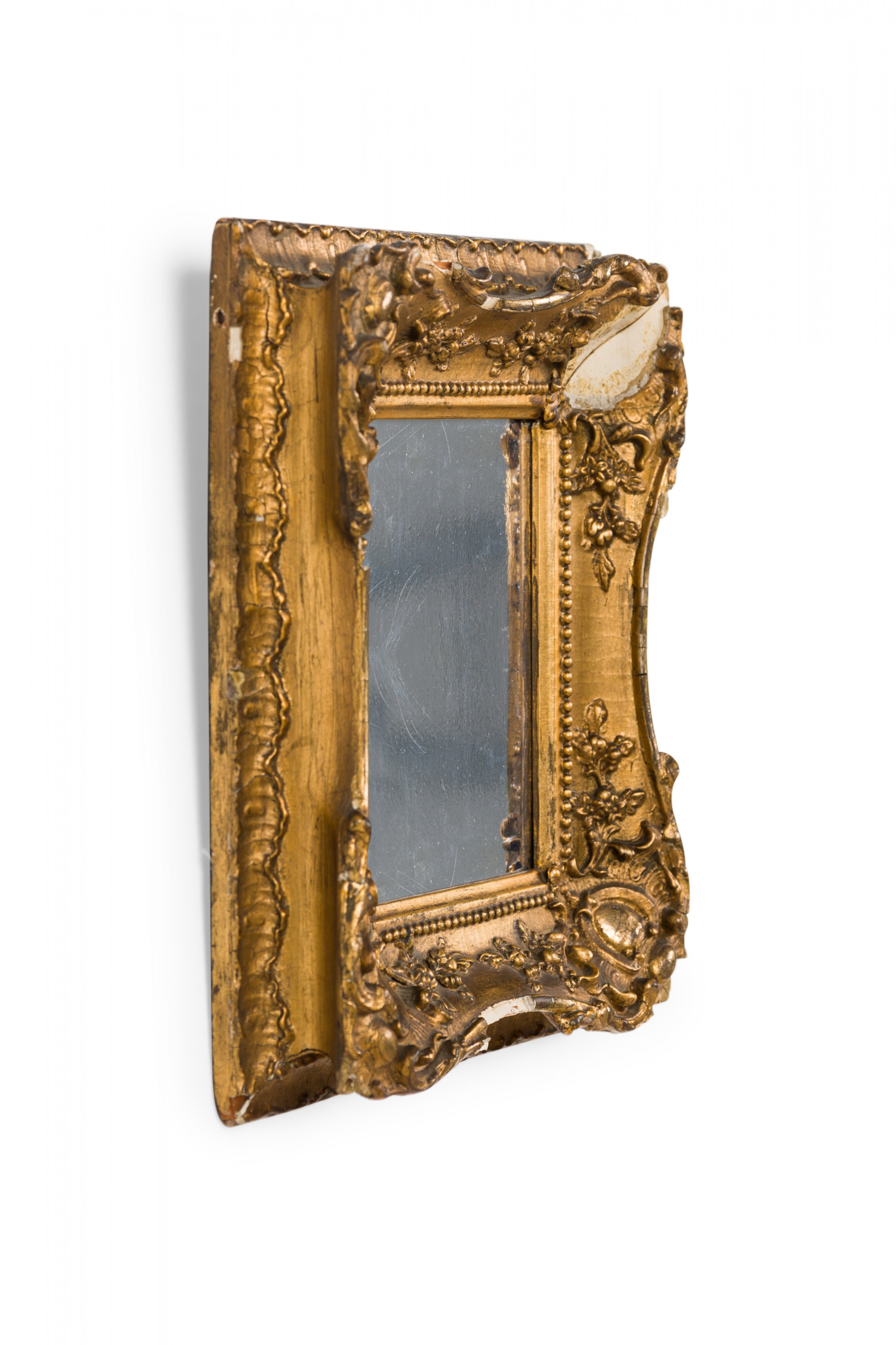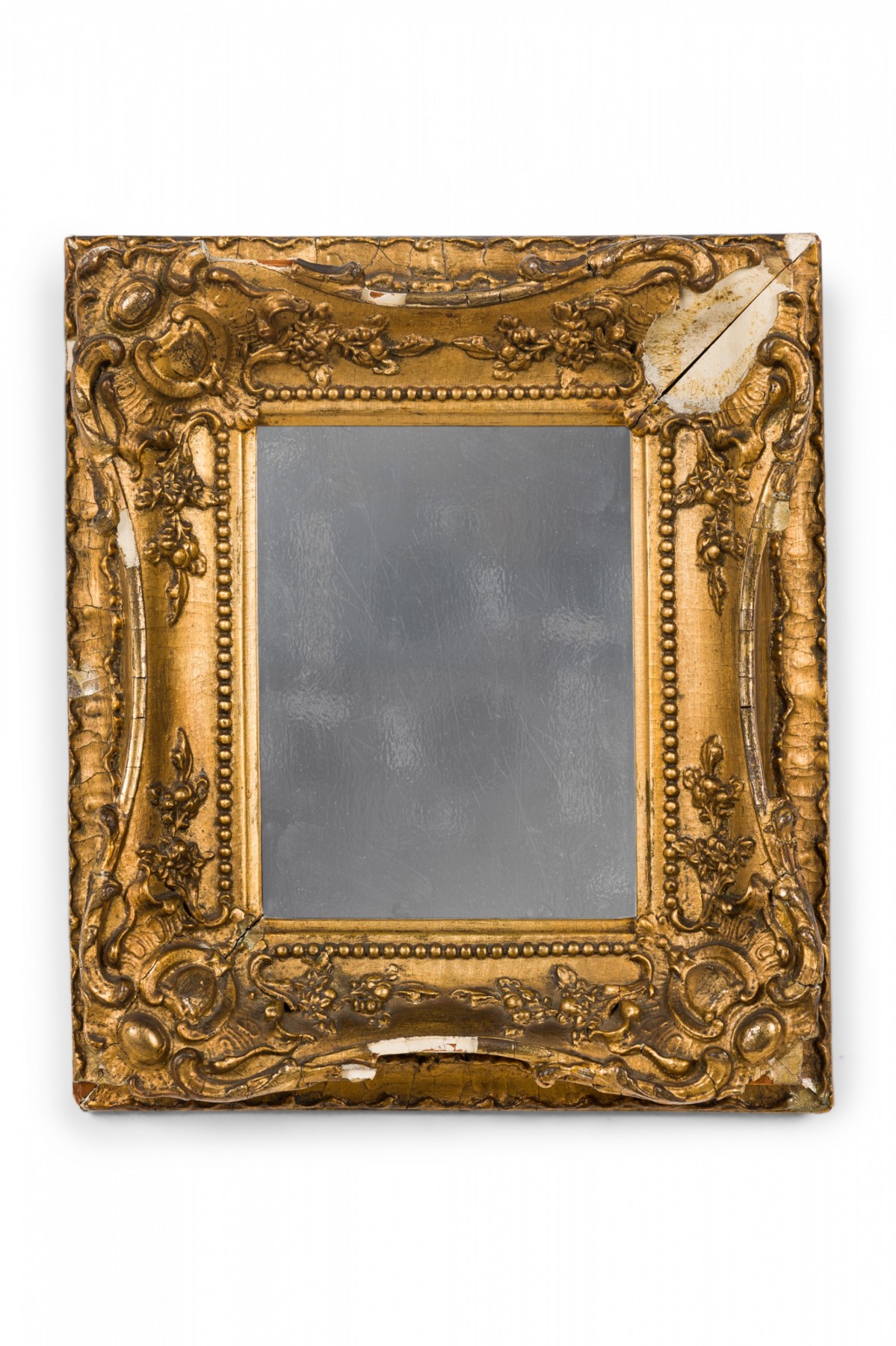 American Victorian style small mylar mirror mounted in a high relief scroll & foliate / beaded giltwood frame. (AS IS-damage to frame)