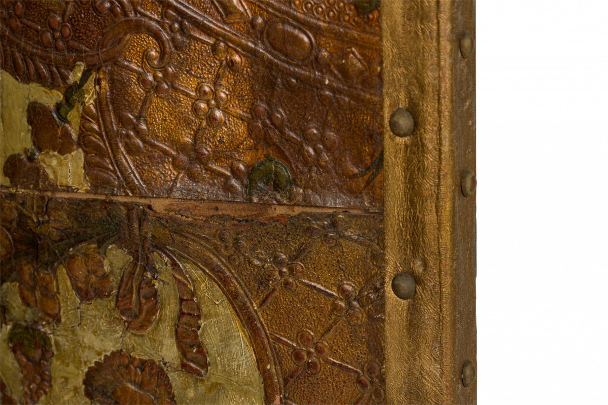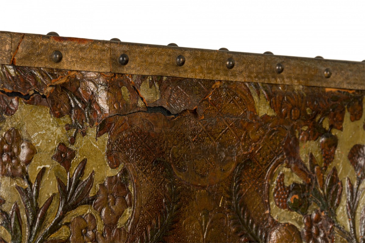 Choose one of the options below.Antique Italian Tooled Leather Floral Design Four Panel Folding Screen