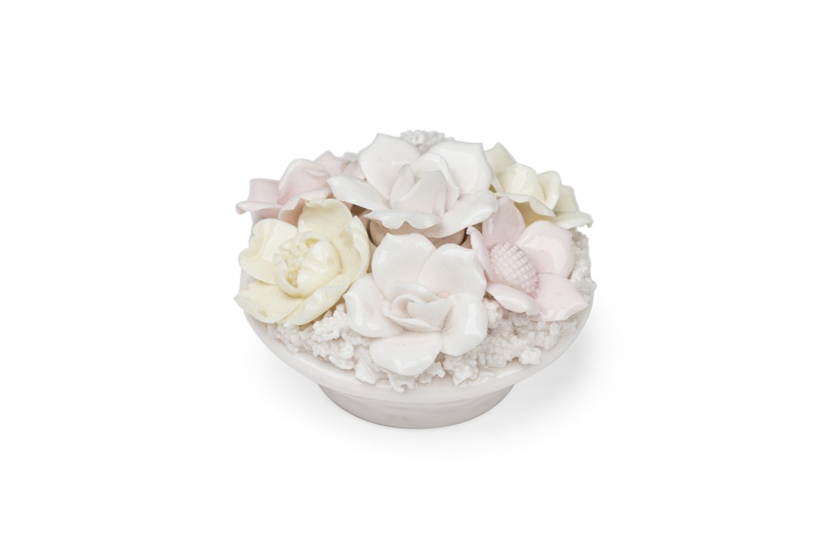 Ardalt Lenwile Japanese Mid-Century style flower basket candle holder with a secret compartment for the candle concealed with a floral lid (with number: 6237)