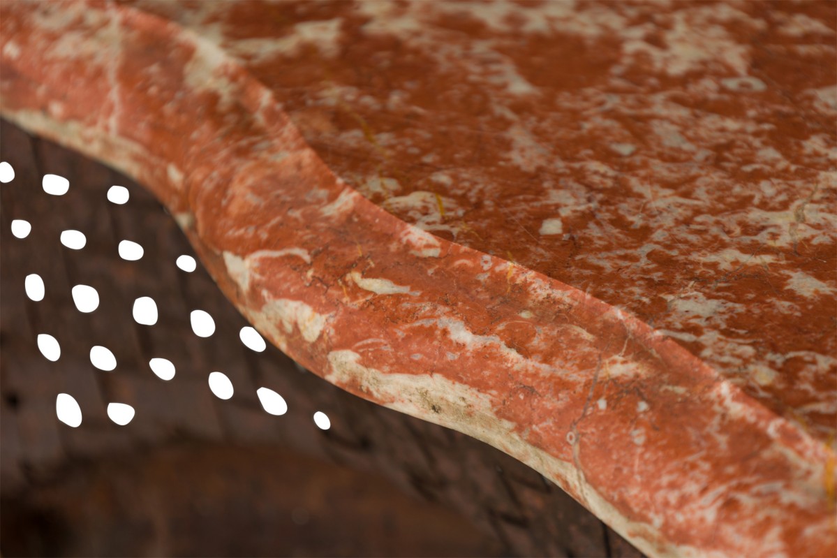 Choose one of the options below.2 Art Deco Basket Woven Wrought and Gilt Tole Blush Marble Top Console Tables