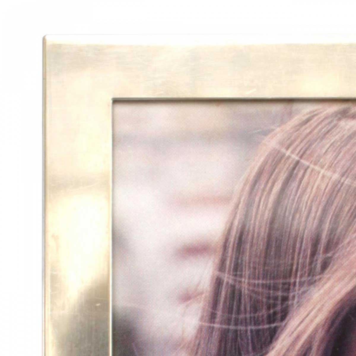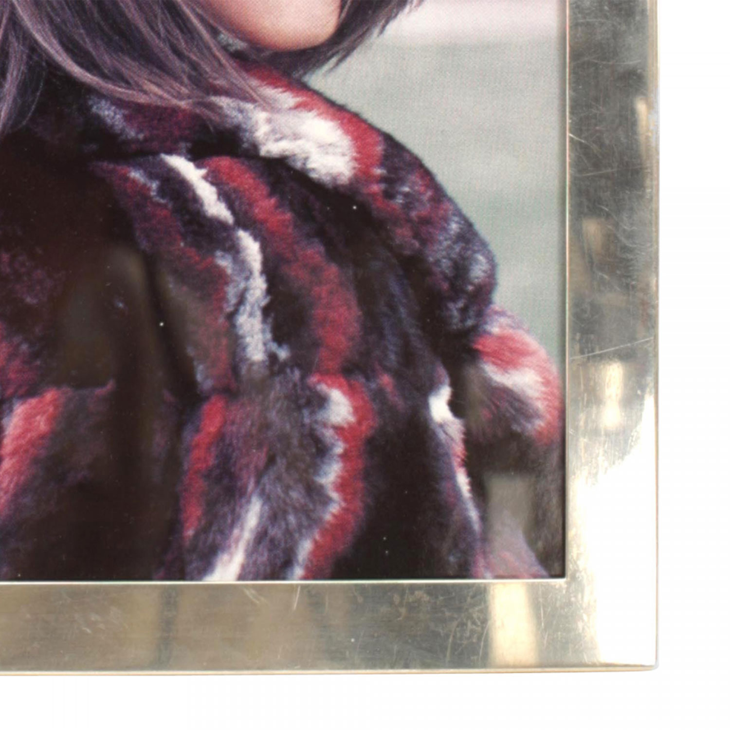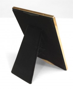 Art Deco-style sterling silver simple rectangular easel picture frame with brown velvet backing.