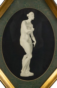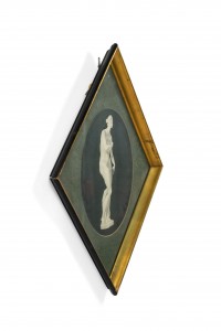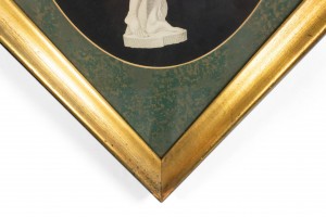 Art Moderne 1940s diamond shaped gold trimmed framed print of classical woman. (similar 030156)