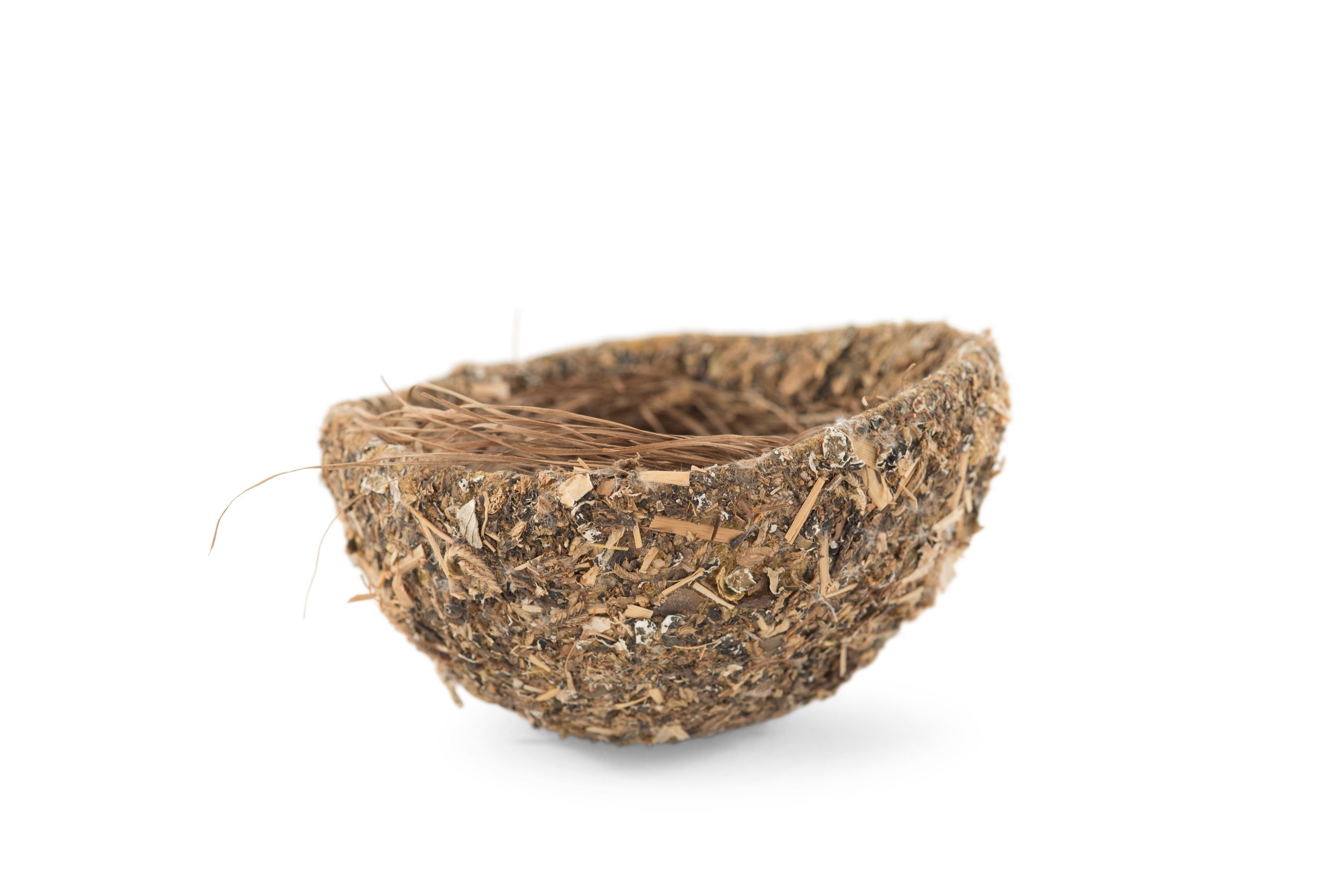 Artificial foam bird's nest with chip wood and twig finish