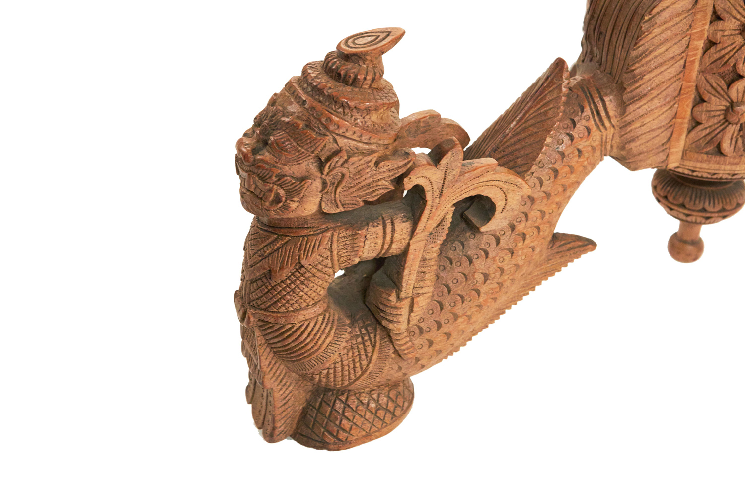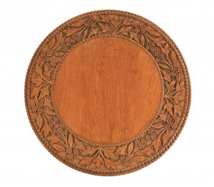 Asian Burmese-style (19th Century) stripped teak pedestal base table with round top and 3 figural heads on base feet.