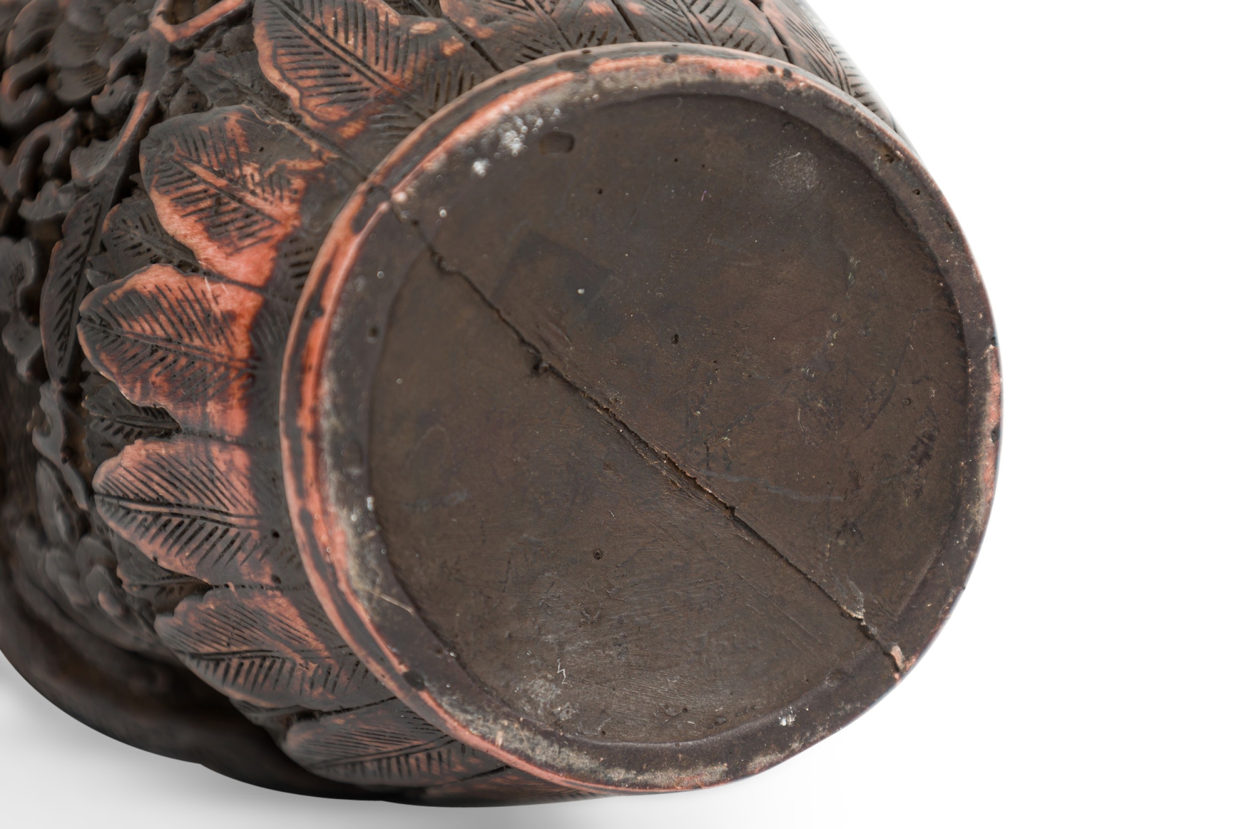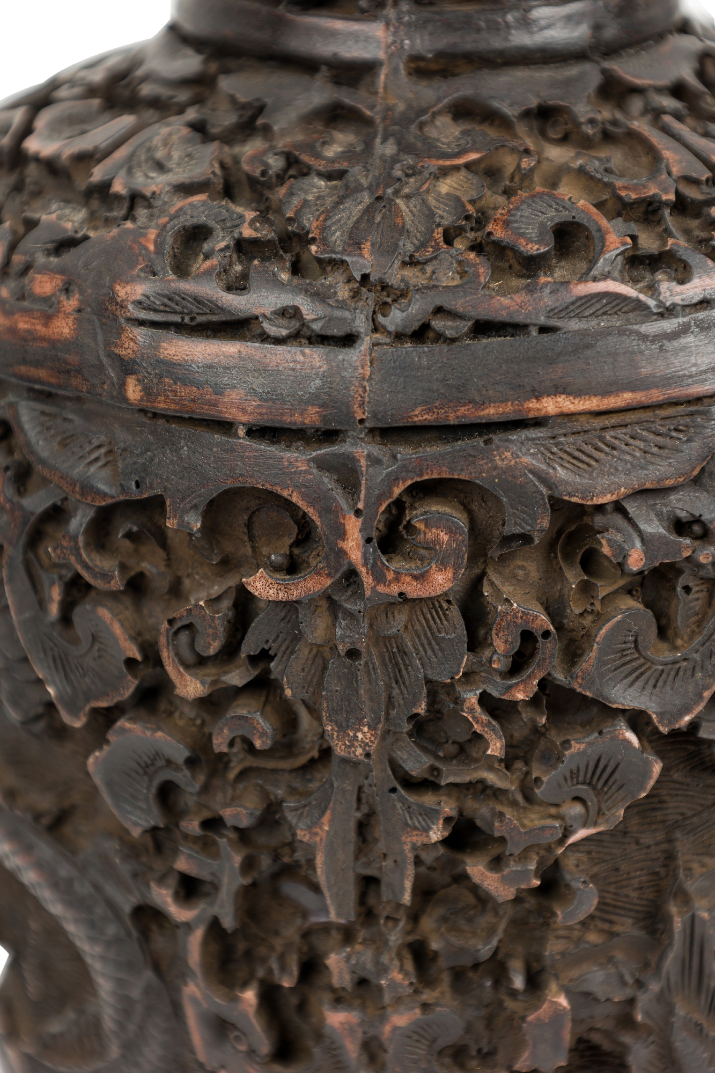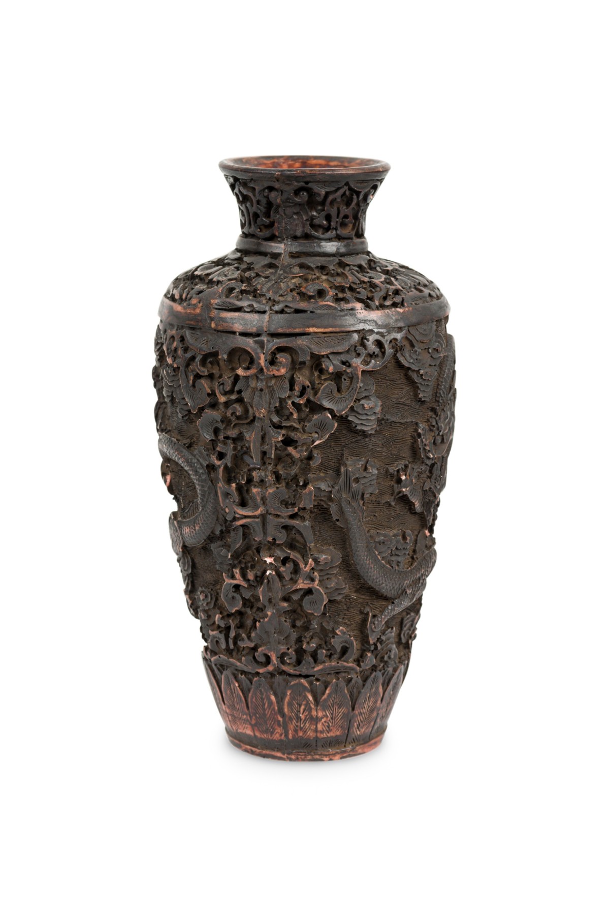 Asian Chinese Mid-Century carved cinnabar style vase with two dragons
