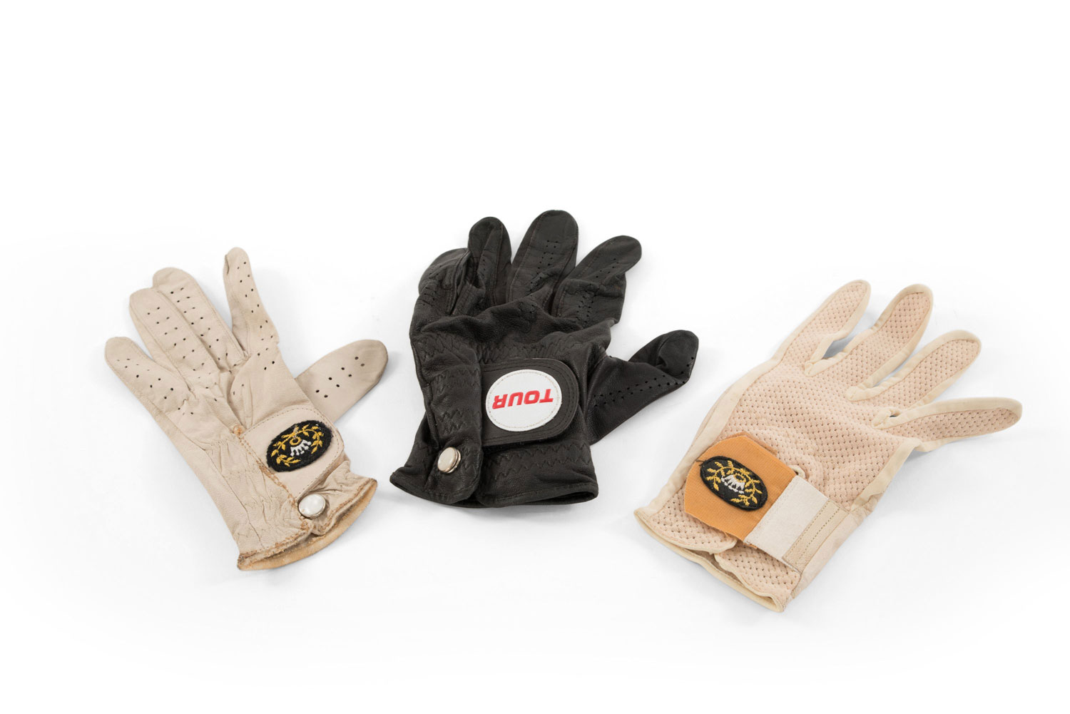Assortment of black and off-white leather golfer's gloves (3 - PRICED EACH)