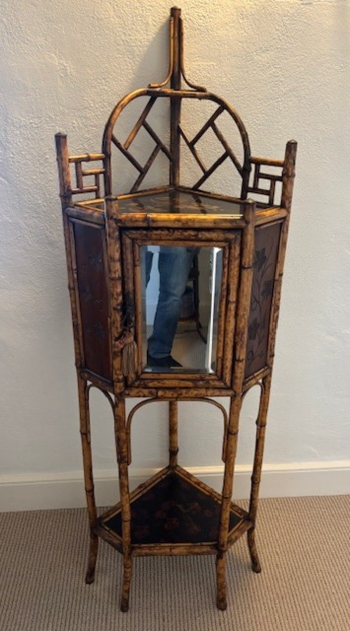 Austrian Biedermeier style (20th Century) ebonized commode with a bottom door revealing 2 shelves and a top faux drawer with a lift top.