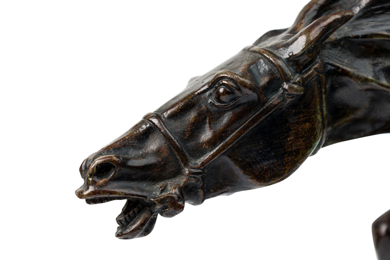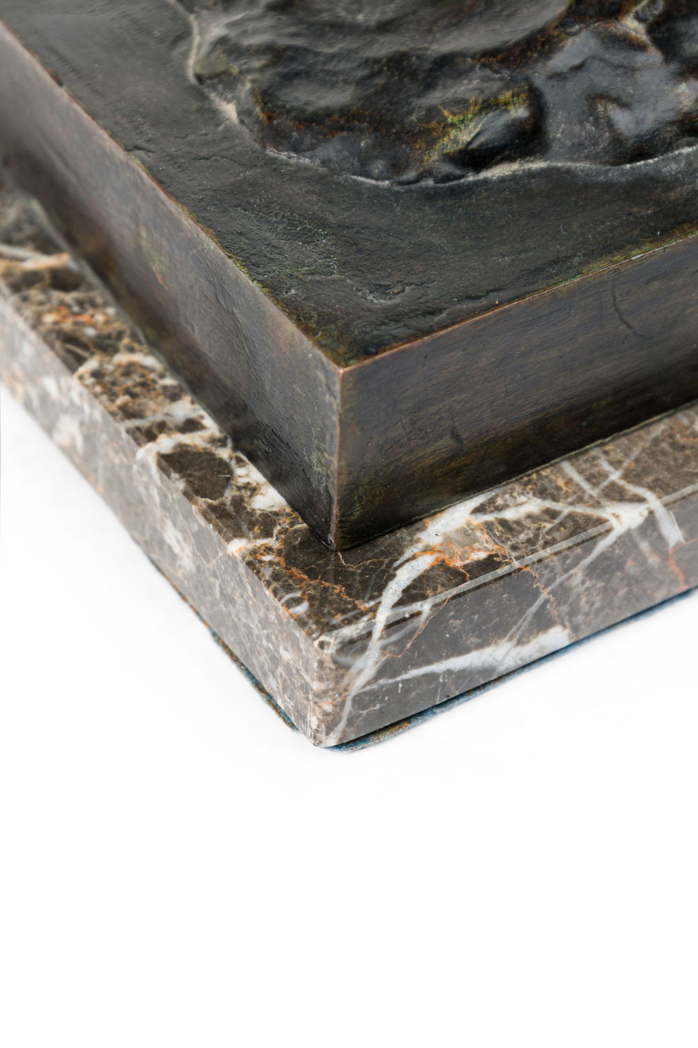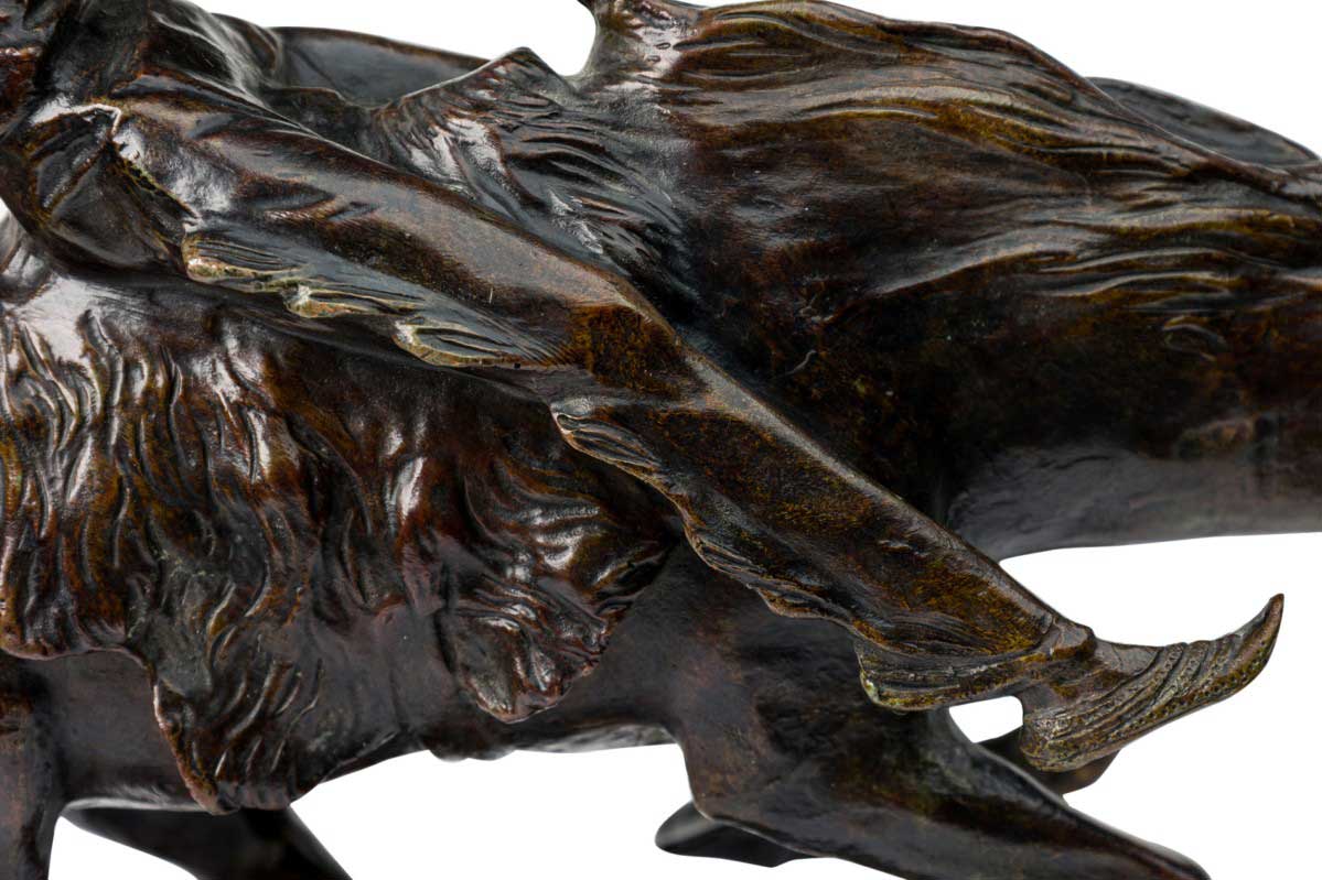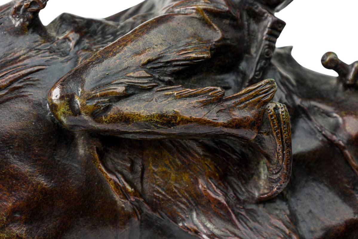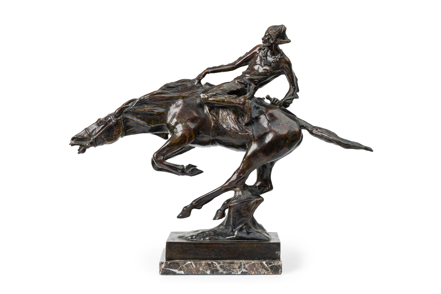 Austrian bronze figure of Native American (Indian) riding bare-back on bucking horse with grey marble base (signed B FACH, Argentor Wien)