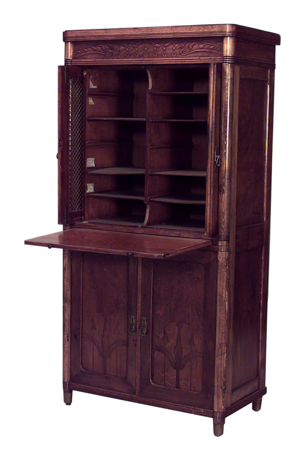 Austrian Secessionist Bentwood (19/20th Century) small secretary with 2 grill doors and 2 embossed wood doors. (J.&J. KOHN)