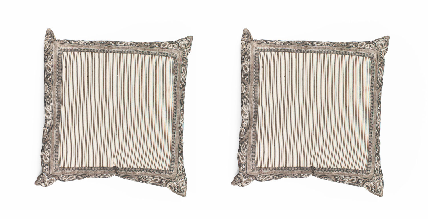 PAIR of Contemporary throw pillows with a beige and taupe striped pattern (PRICED AS PAIR)