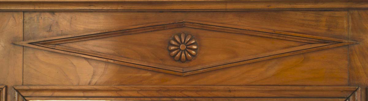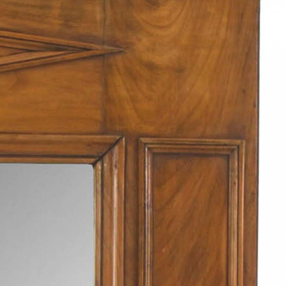 Austrian Biedermeier-style vertical fruitwood wall mirror with paneled sides and a diamond design motif on top.