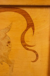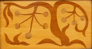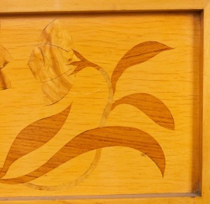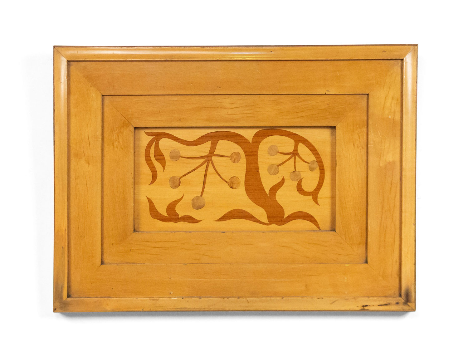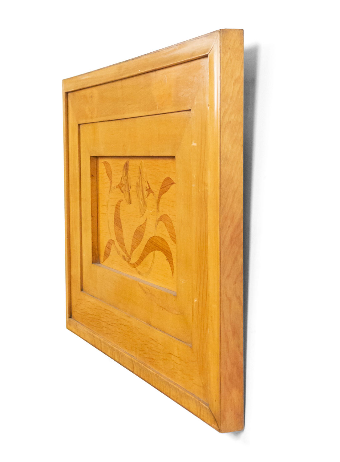 4 Swedish Biedermeier style 1950s maple rectangular wall plaques having a stylized inlaid floral design (PRICED EACH)