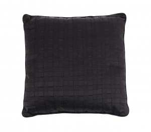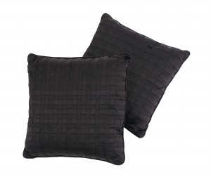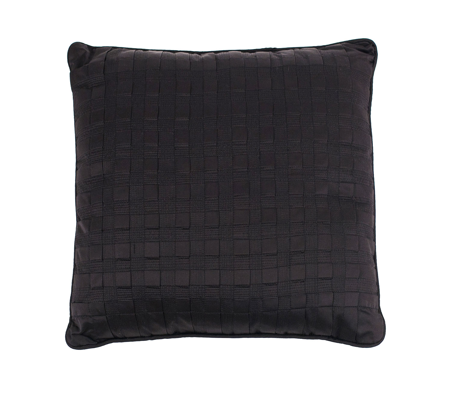 PAIR of black satin square throw pillows with a stitched checkerboard pattern on one side (PRICED AS PAIR).