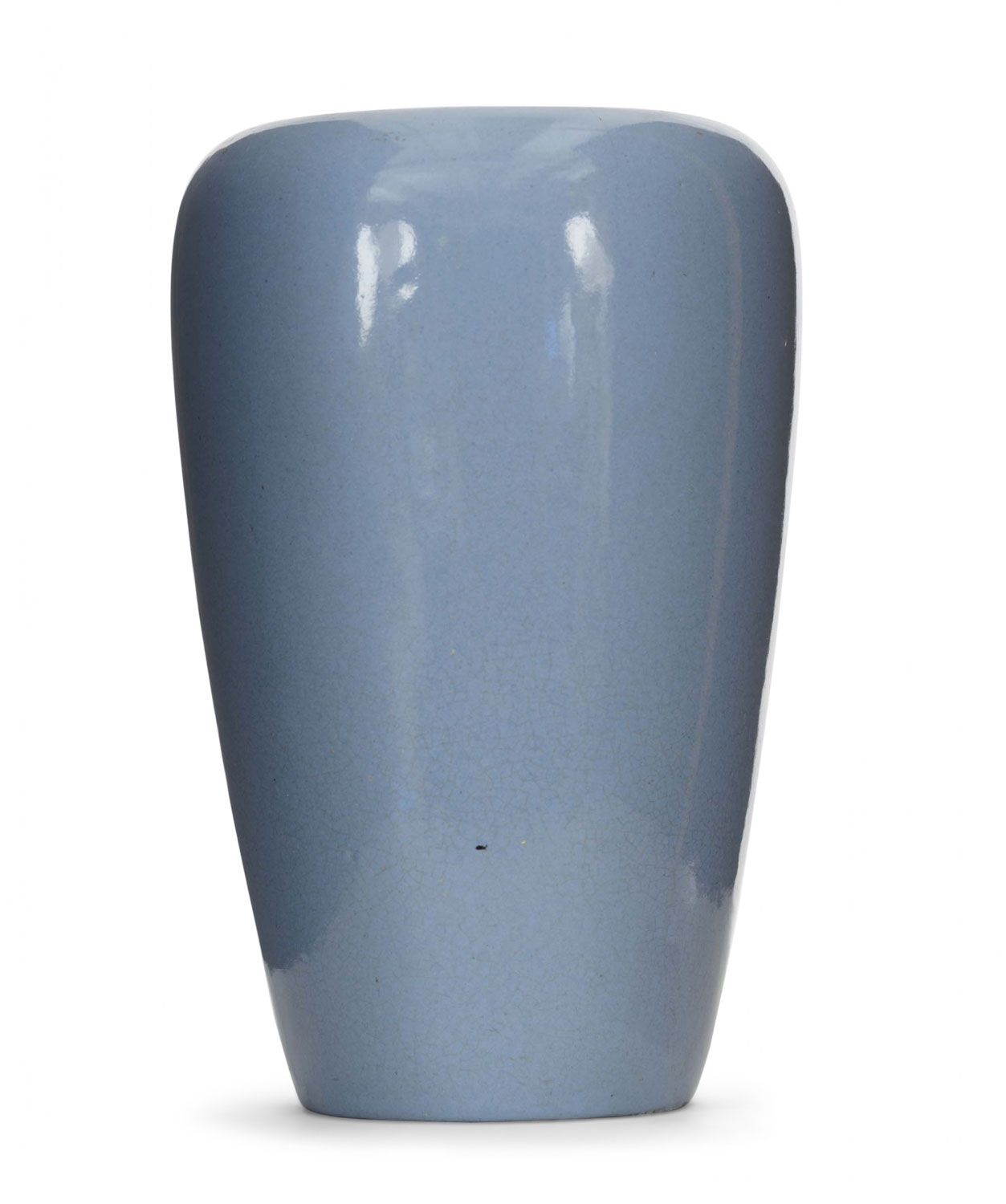 Tall tapered light blue glazed ceramic vase with a wide opening