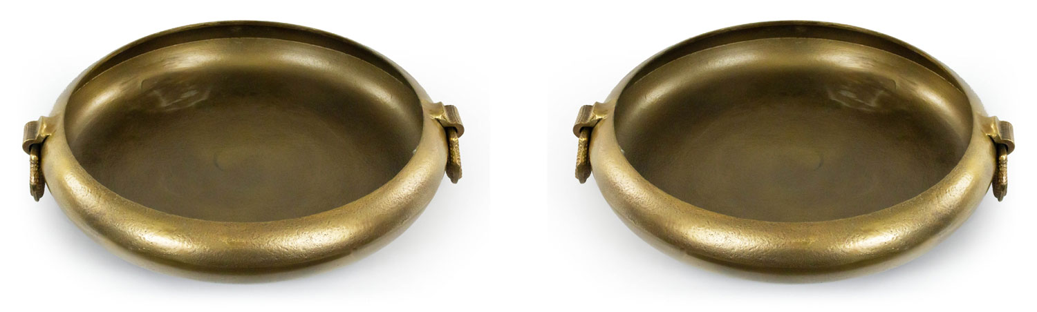 Choose one of the options below.2 Brass Shallow Planters with Textured Handles