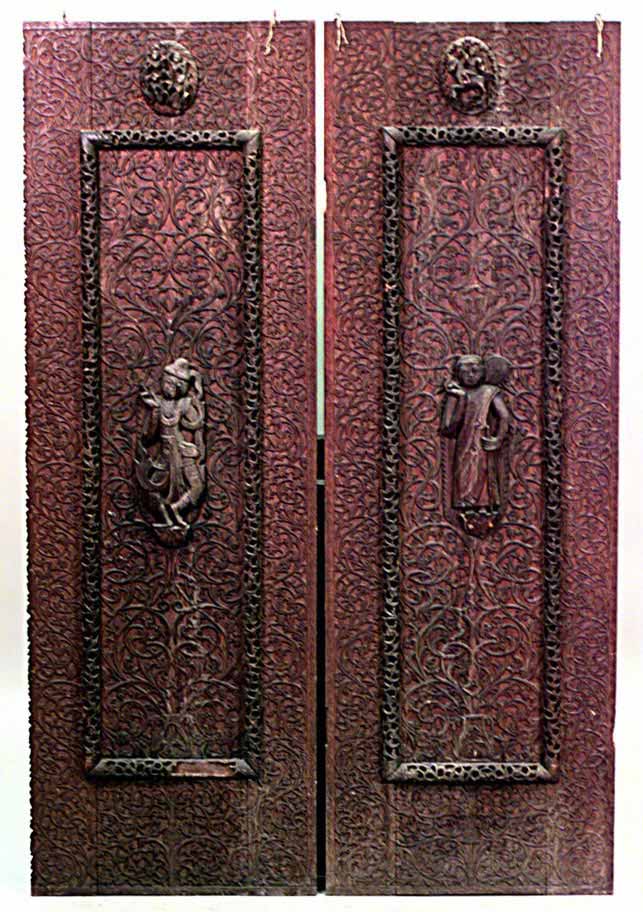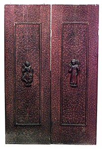 2 Asian Burmese style (19th Century) walnut carved door panels with figures and filigree border (PRICED EACH).