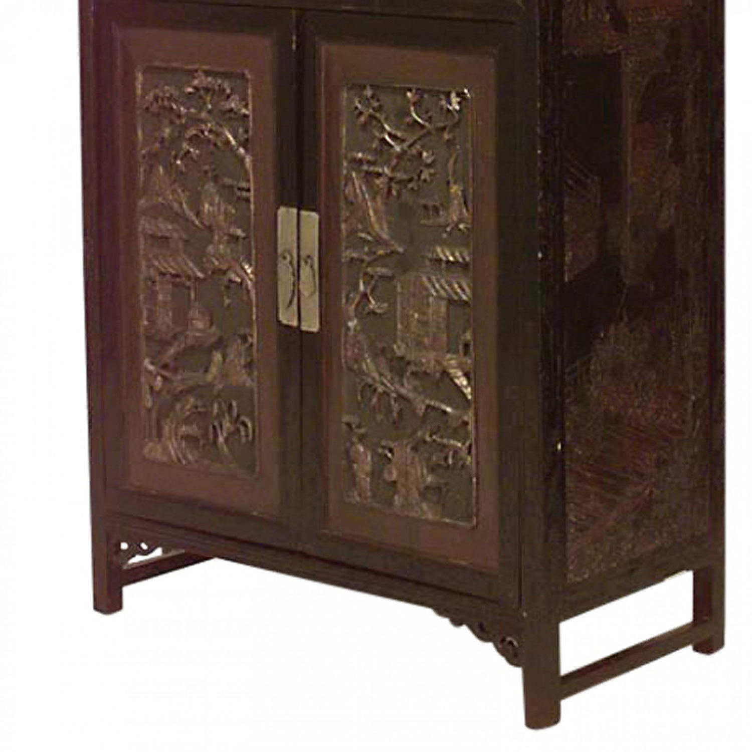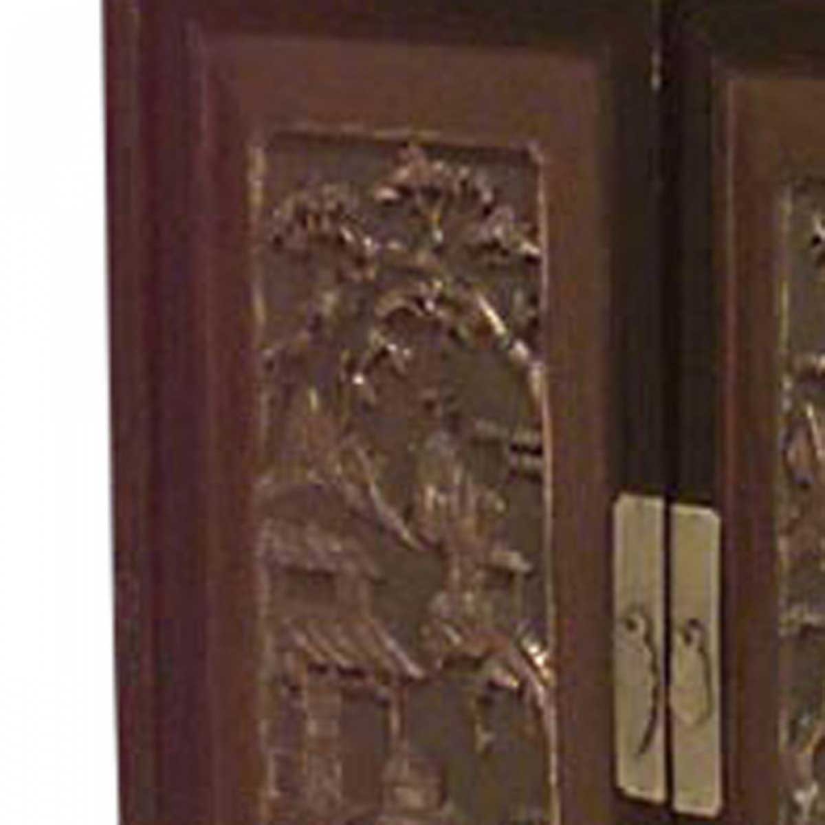 2 Asian Chinese style (19th Century) black lacquered and decorated coromandel cabinets with 4 doors with carved panels (PRICED EACH).