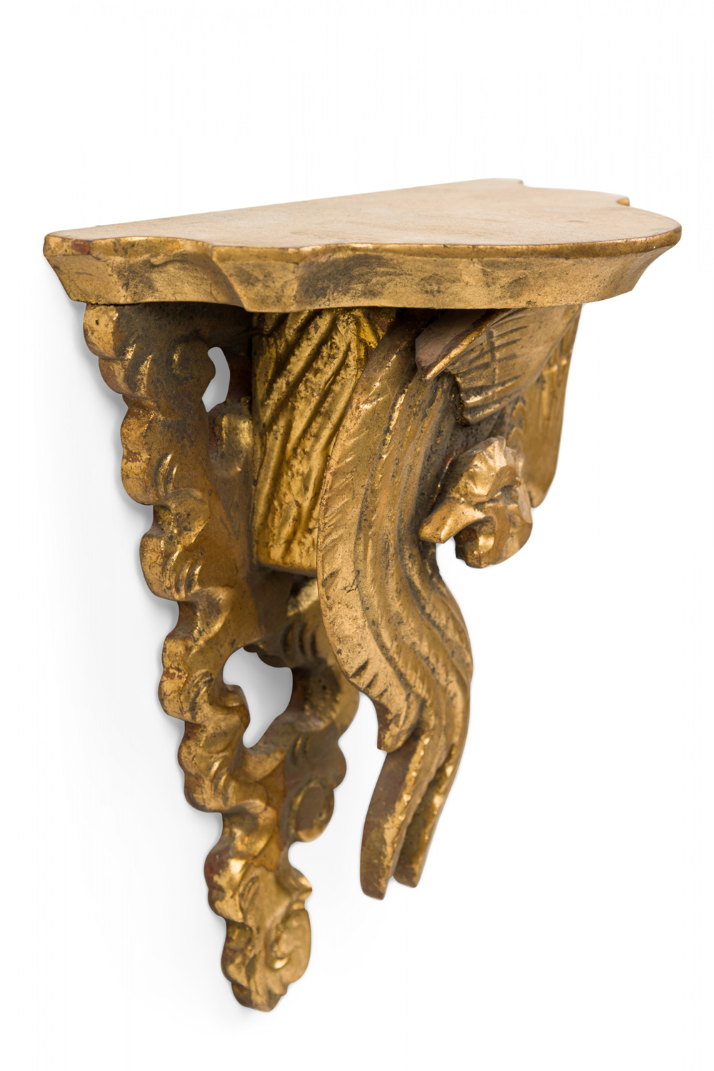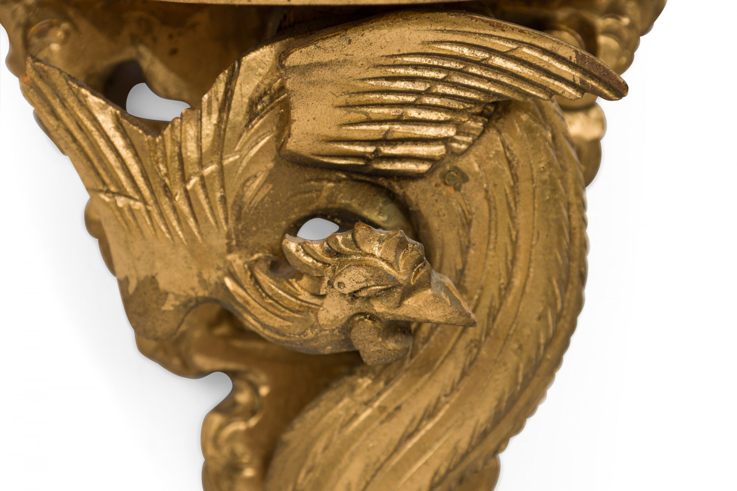 English Chinese Chippendale style (20th Cent) gilt small wall shelves with bird.