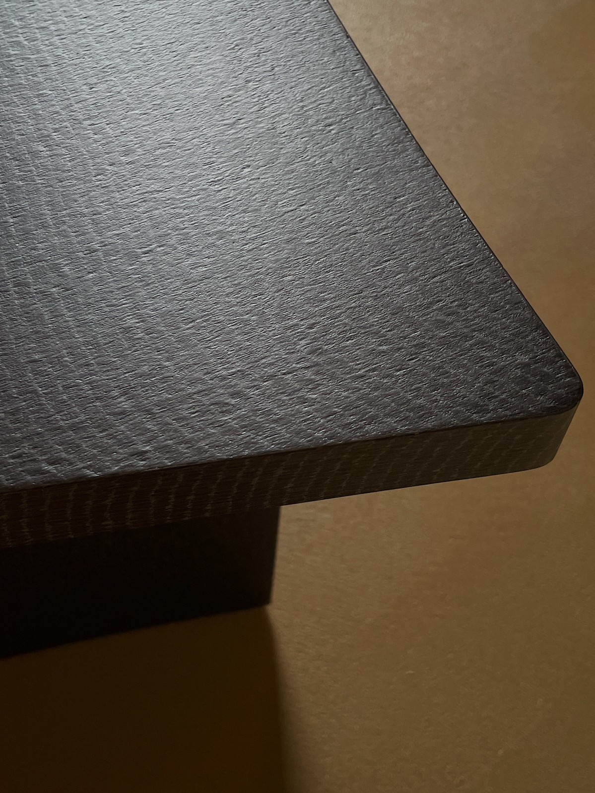 4 Contemporary dining chairs representing a silhouette of a Samurai sword from the front profile, bearing triangular seats with elongated back rests ending on cuboid plinth base (PRICED EACH)