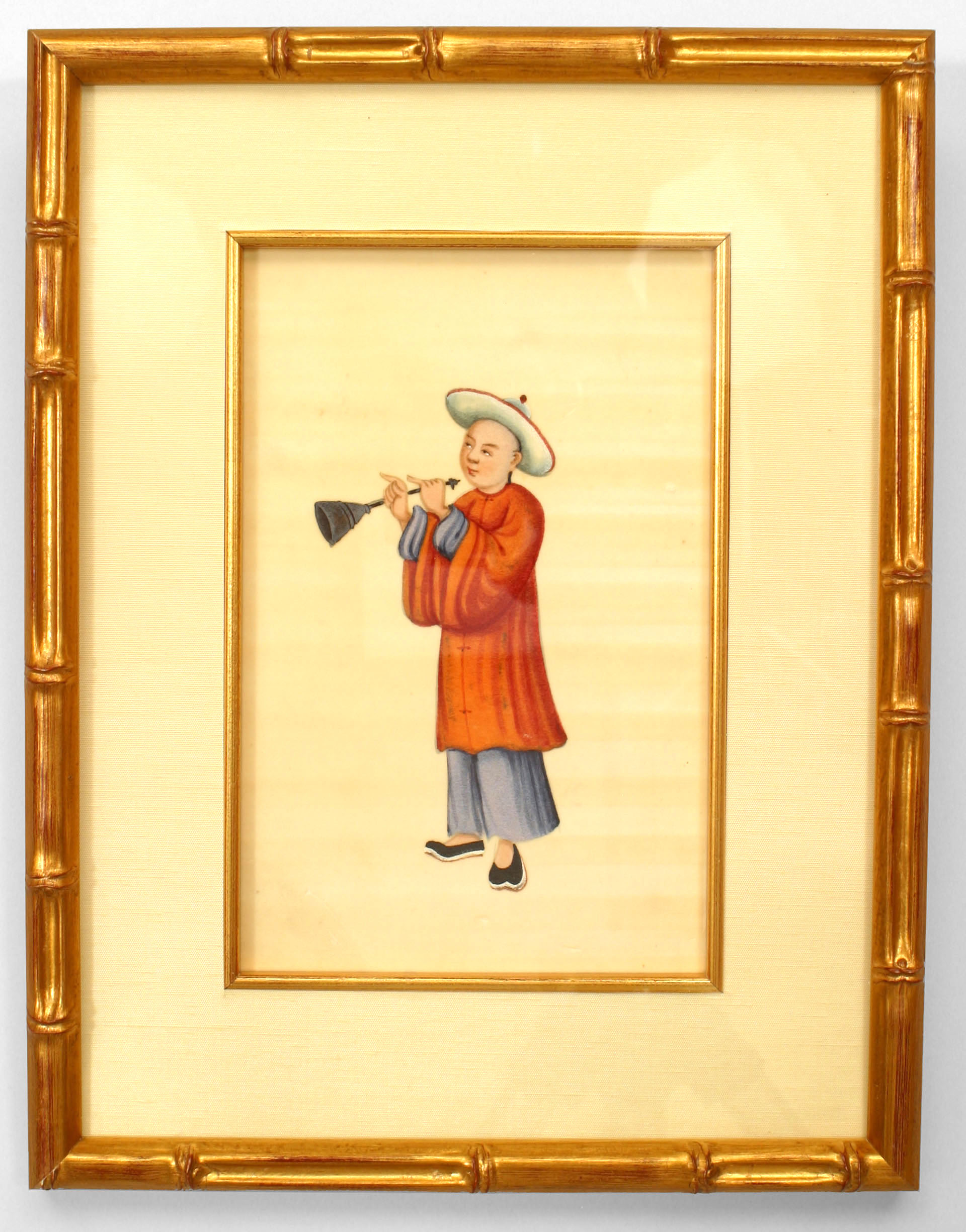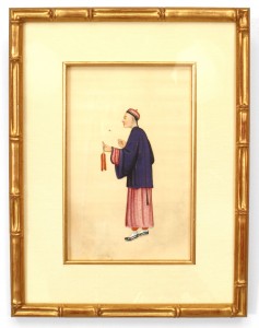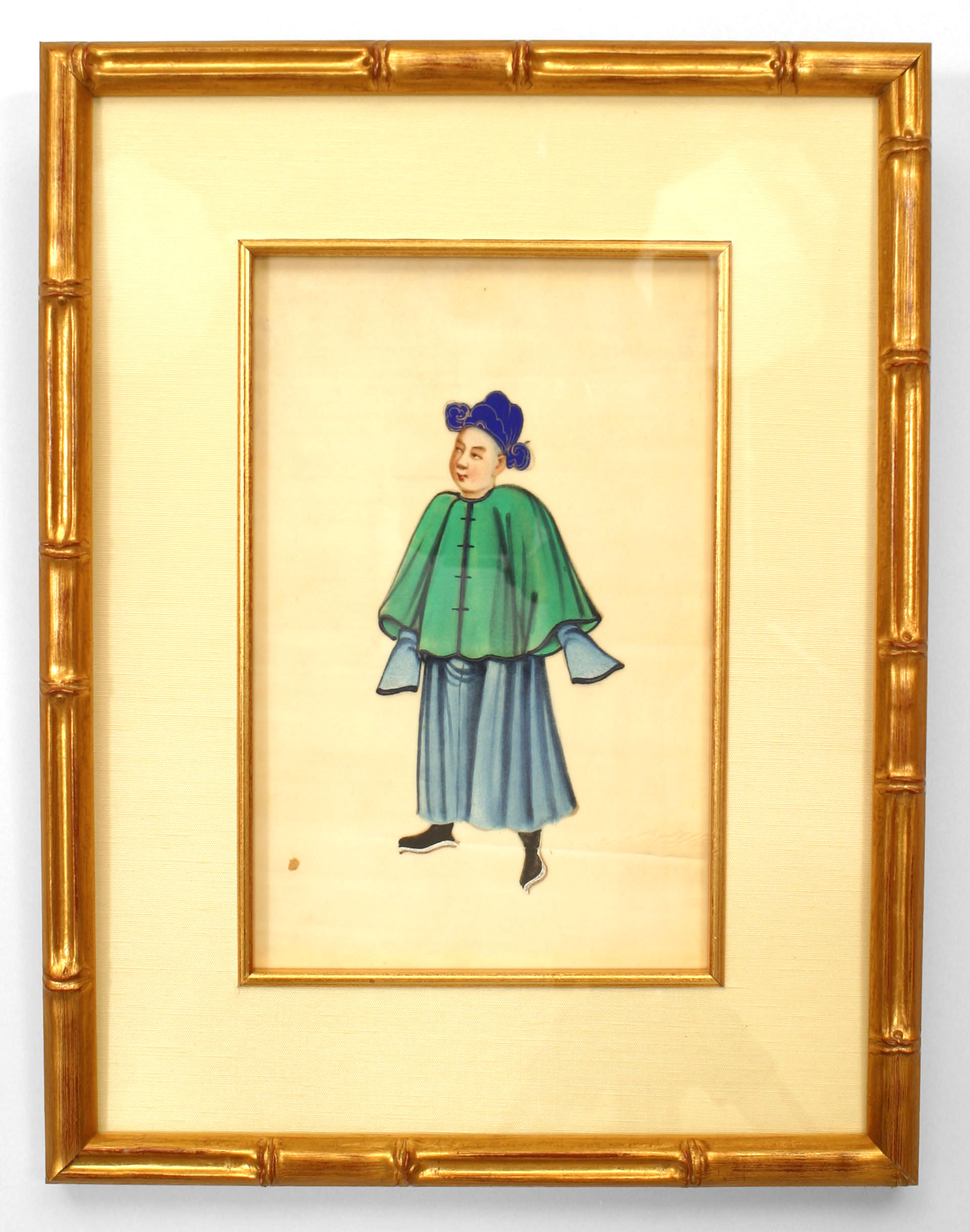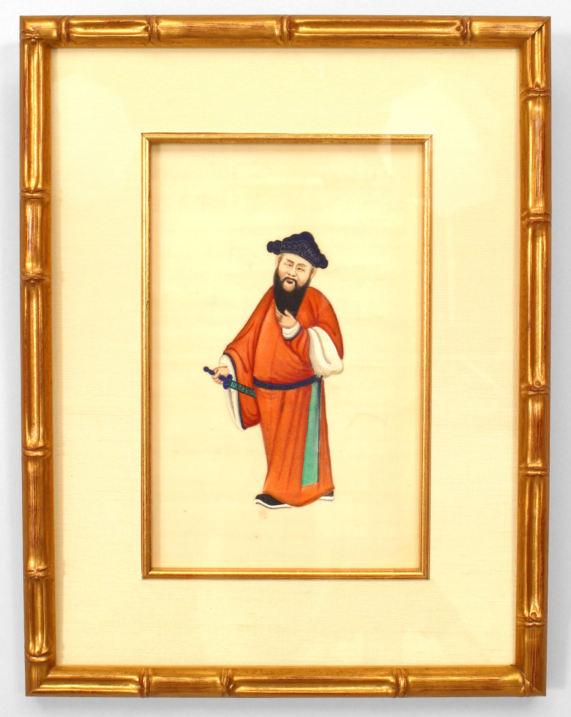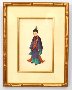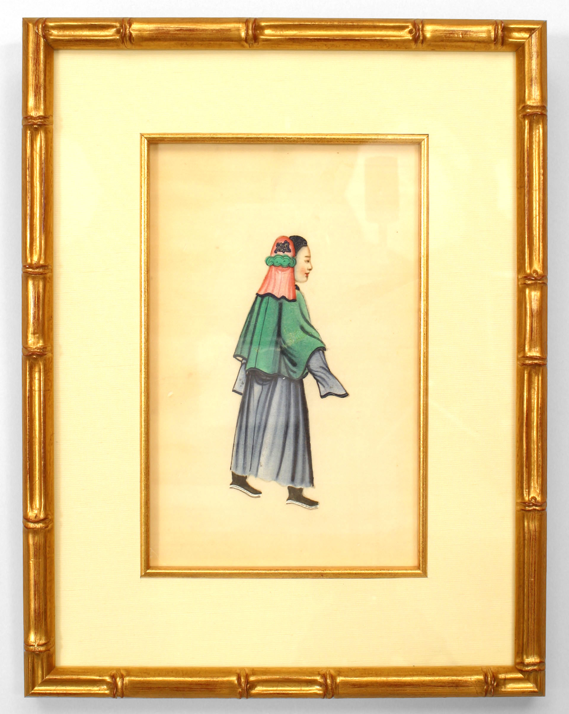 8 Asian Chinese (19th century) gouache paintings of traditionally clad figures framed in modern gilt faux bamboo frames. (PRICED EACH)