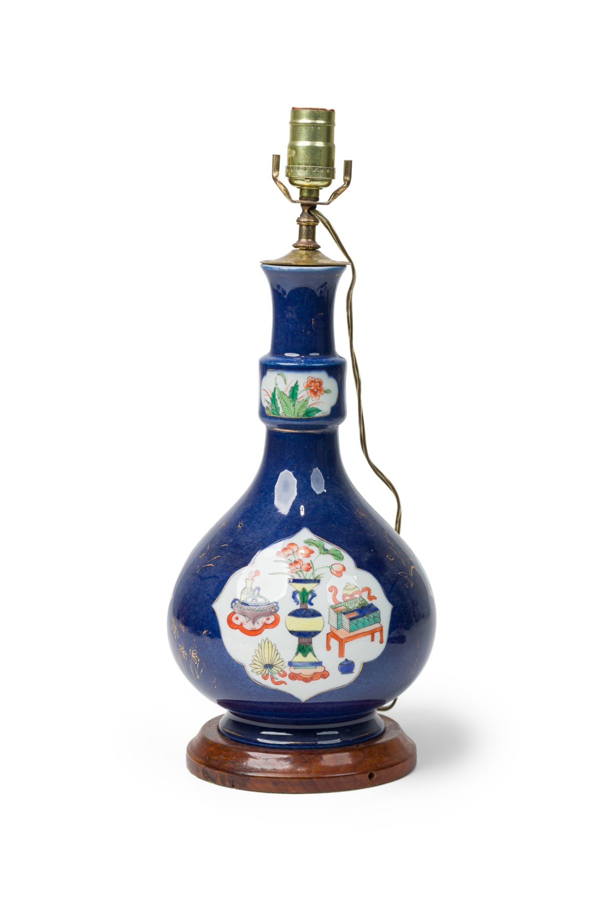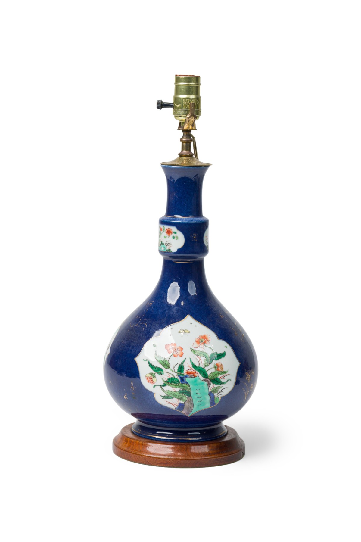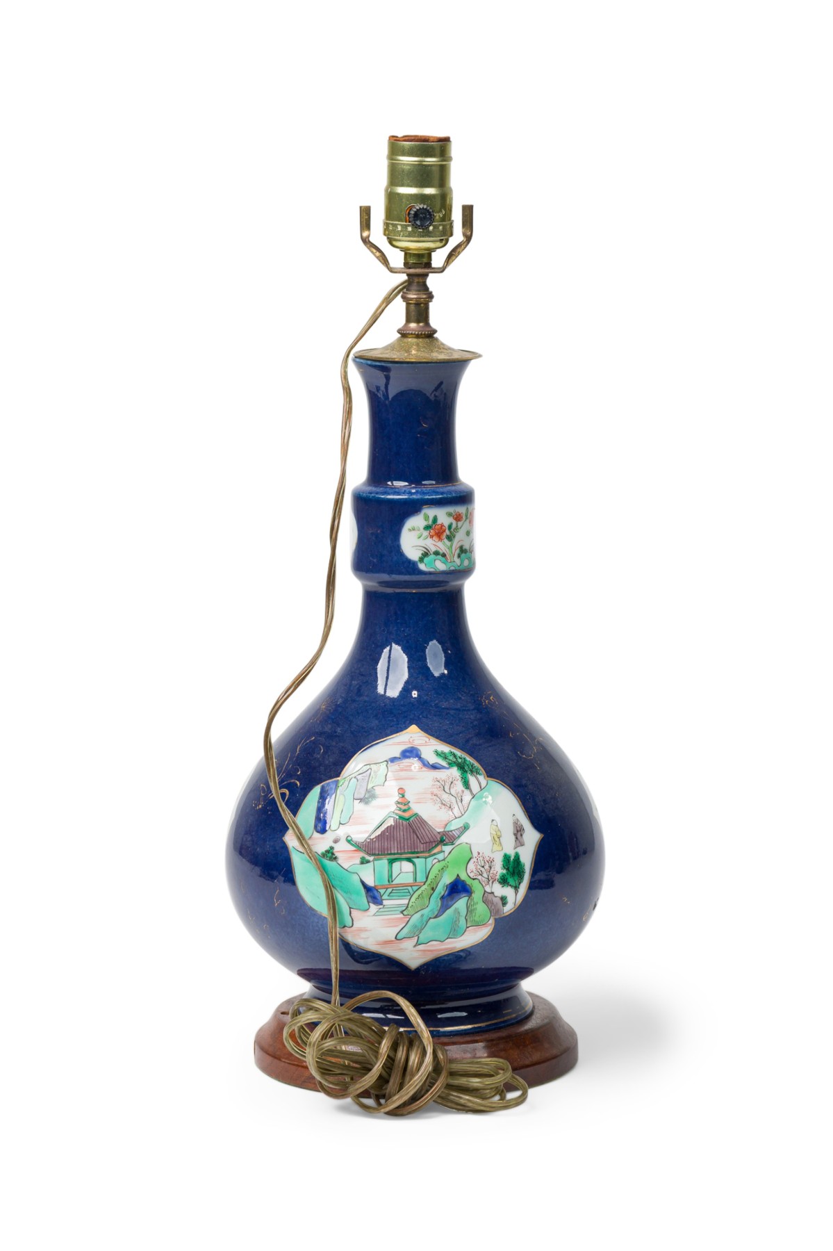 Chinese Landscape and Floral Motif Cobalt Blue Porcelain Table Lamp