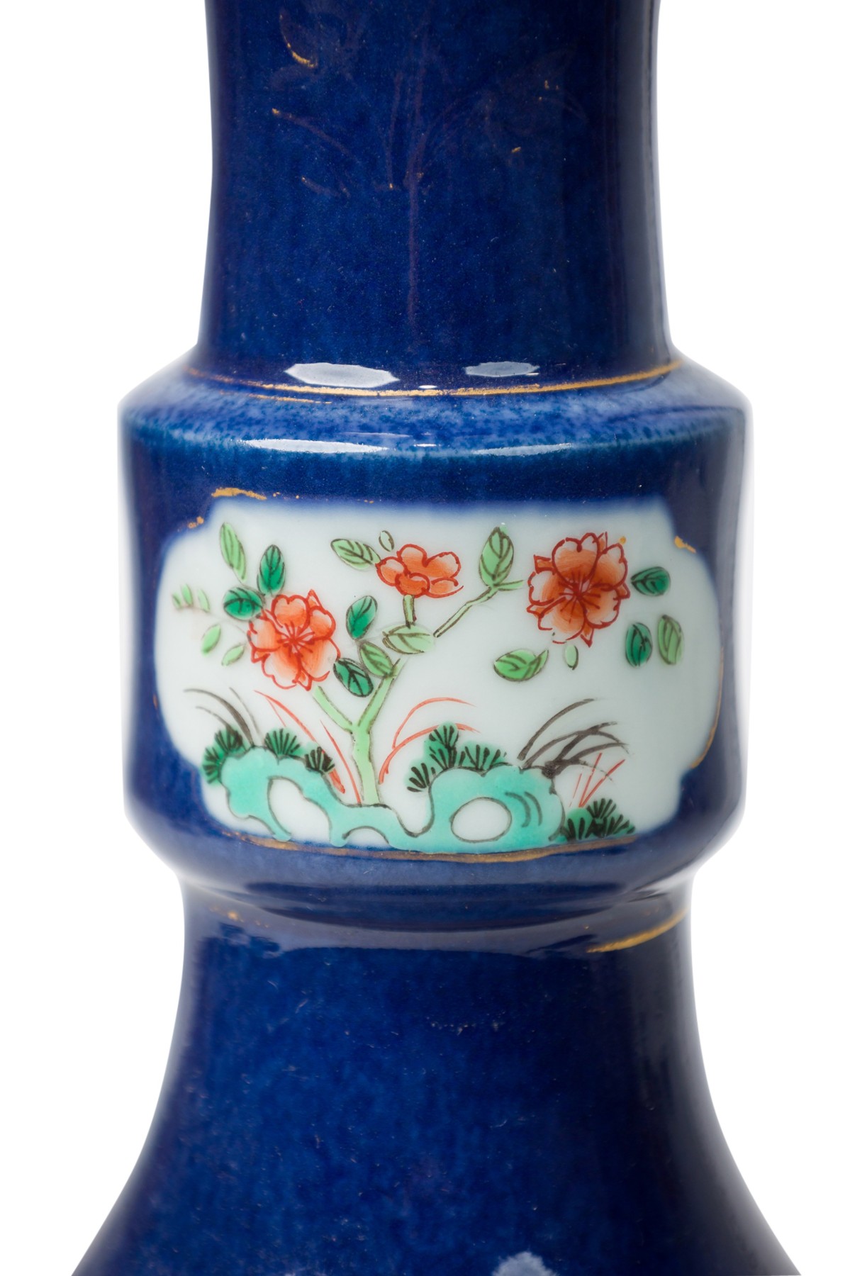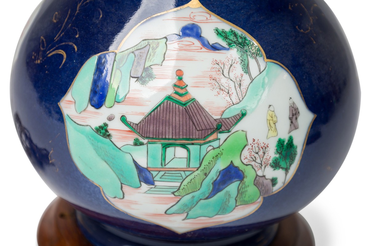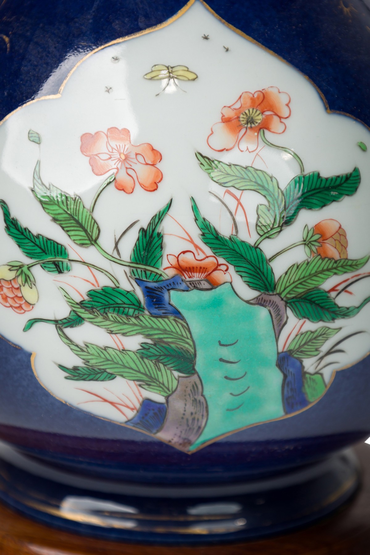 Chinese Landscape and Floral Motif Cobalt Blue Porcelain Table Lamp