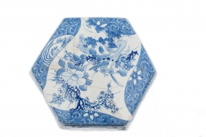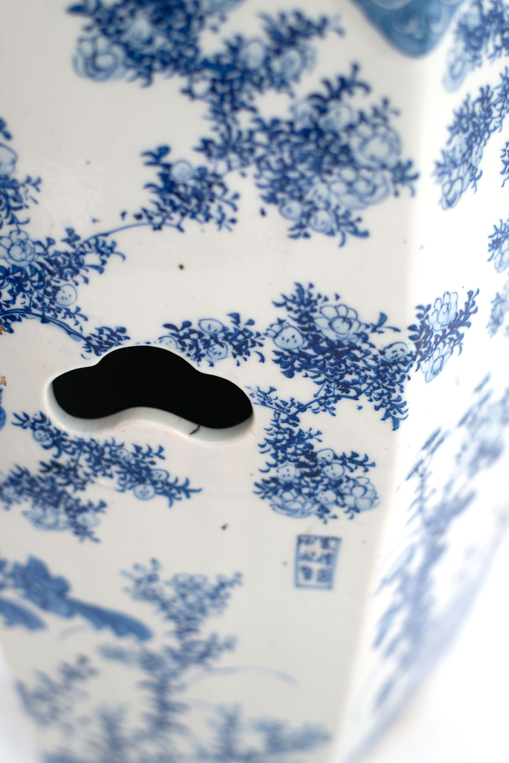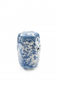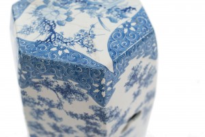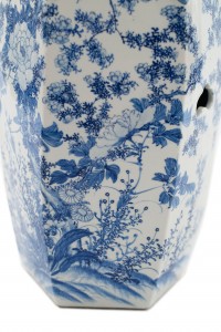 Asian Chinese style blue & white glazed porcelain garden seat of hexagonal section decorated with peonies & flowering vines (19th/20th Cent)(similar to Inv. #014642A)