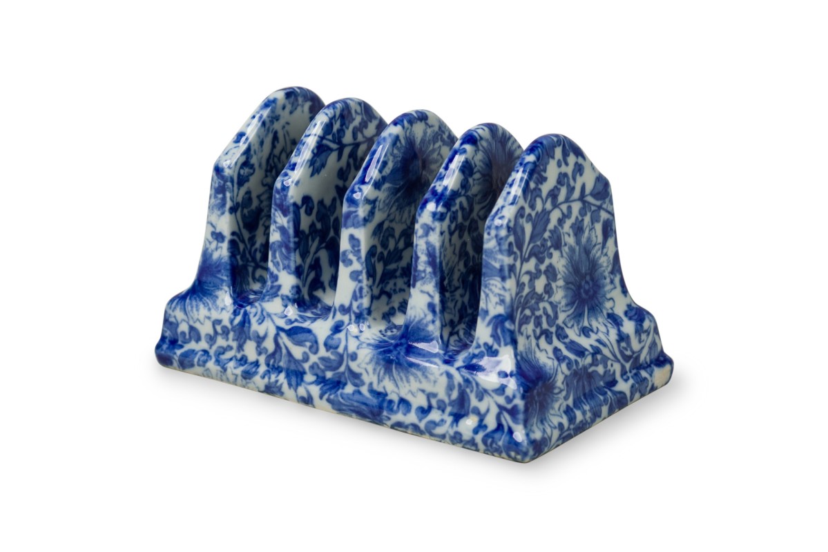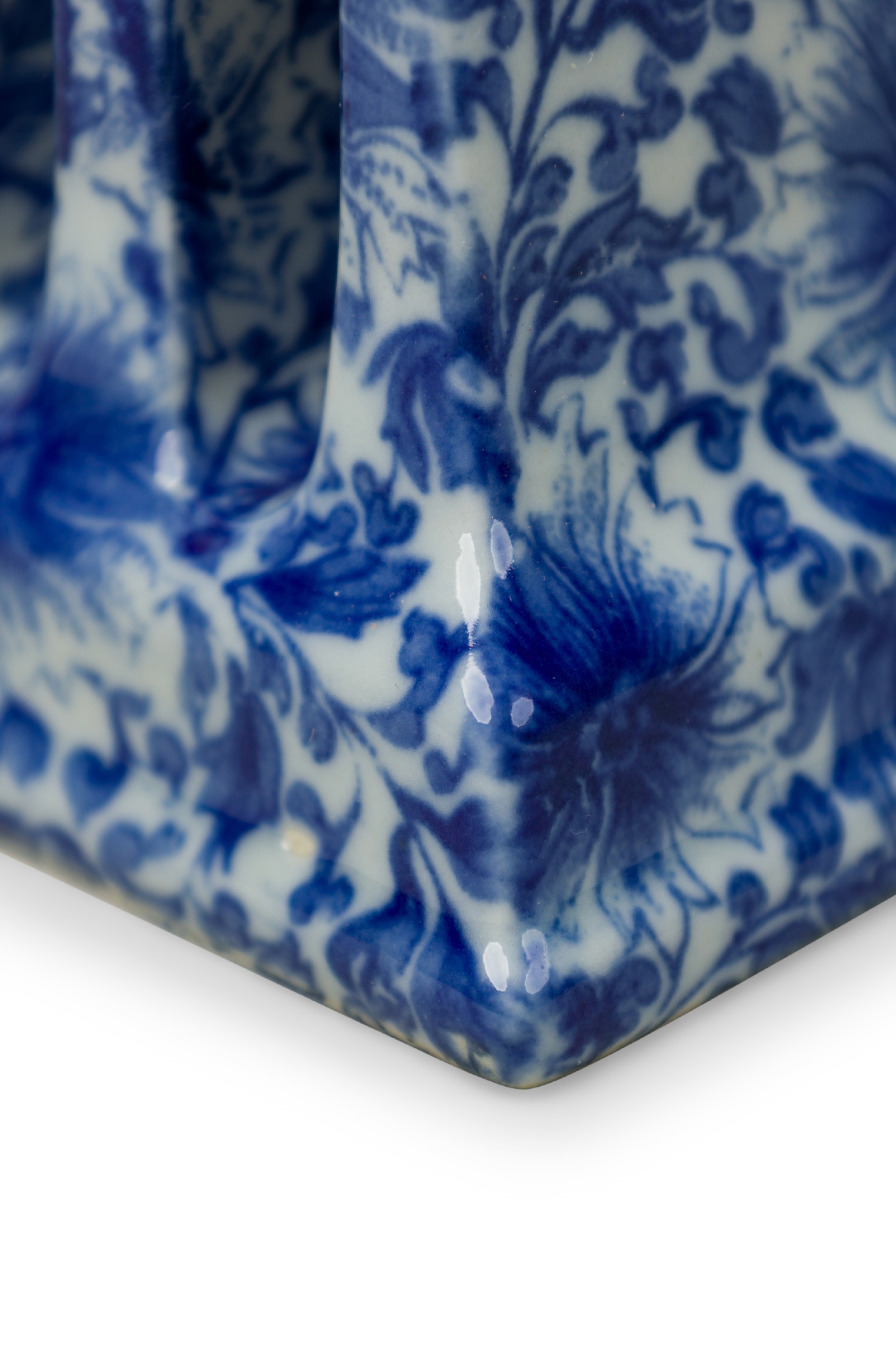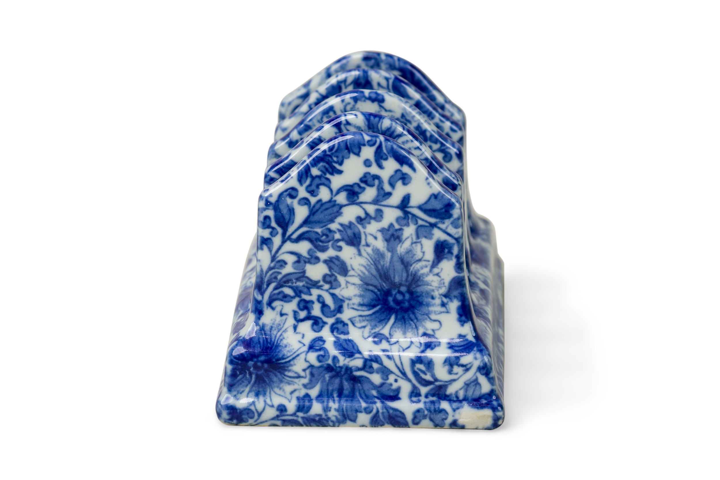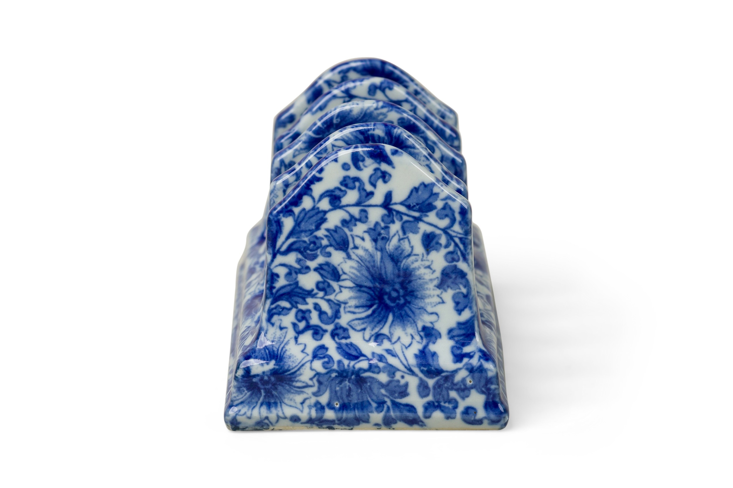 Chinese Transferware blue and white floral decorated ceramic napkin / toast rack with four compartments on a rectangular base