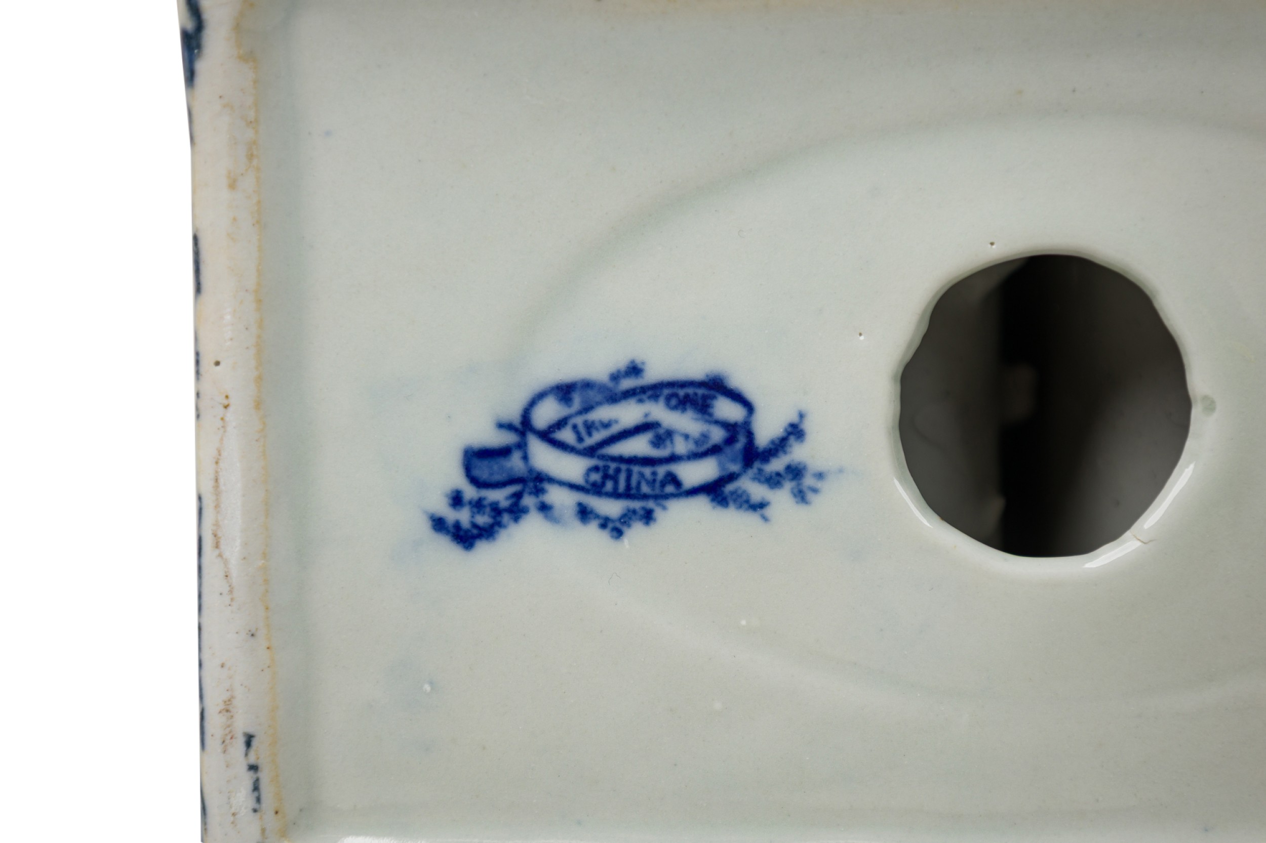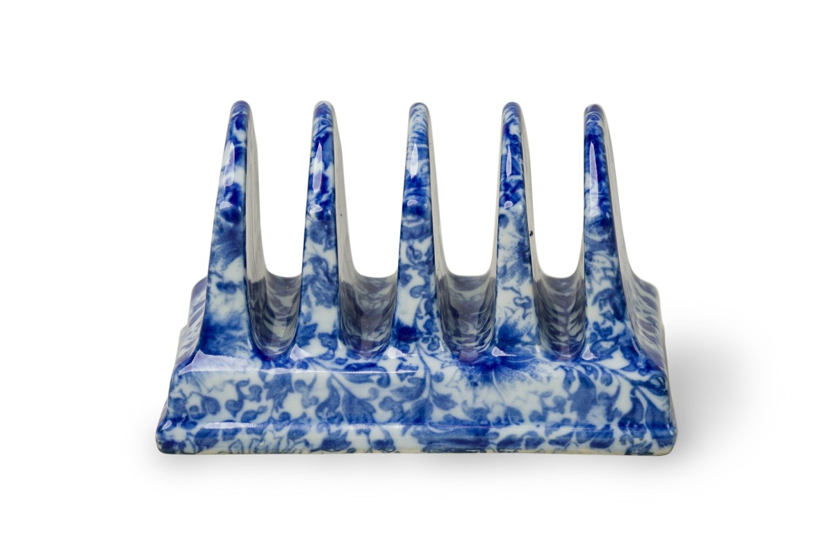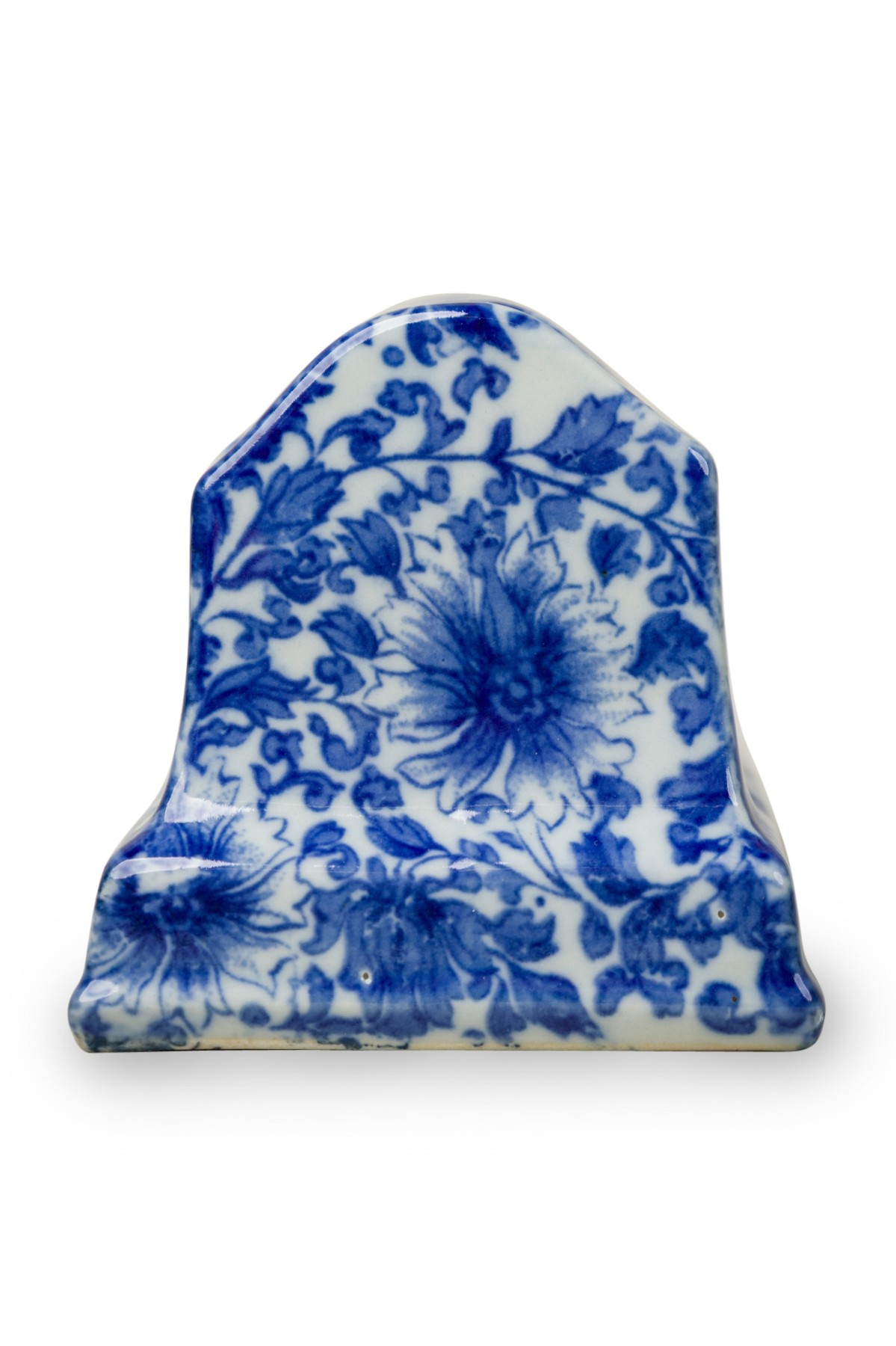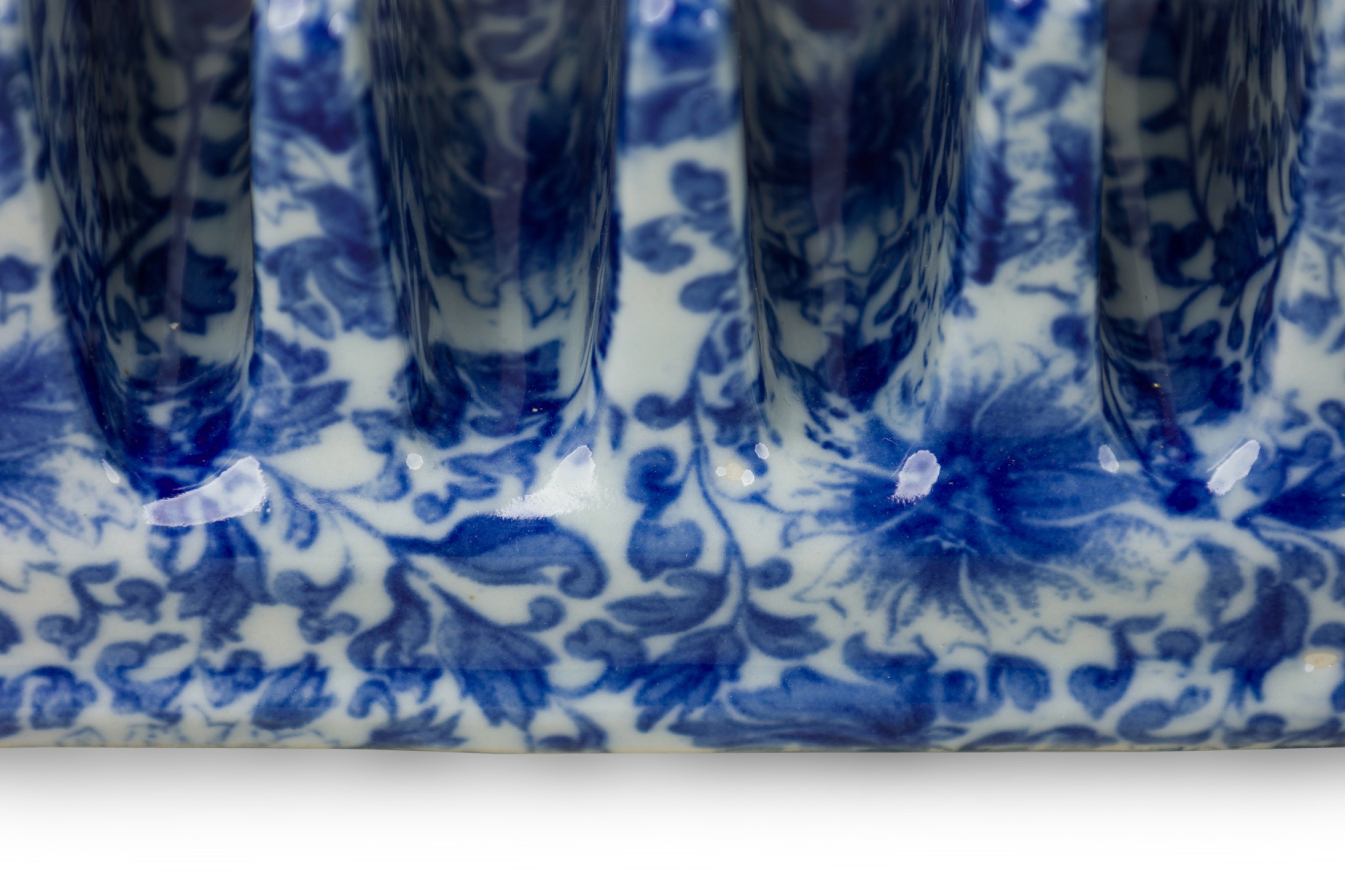 Chinese Transferware blue and white floral decorated ceramic napkin / toast rack with four compartments on a rectangular base