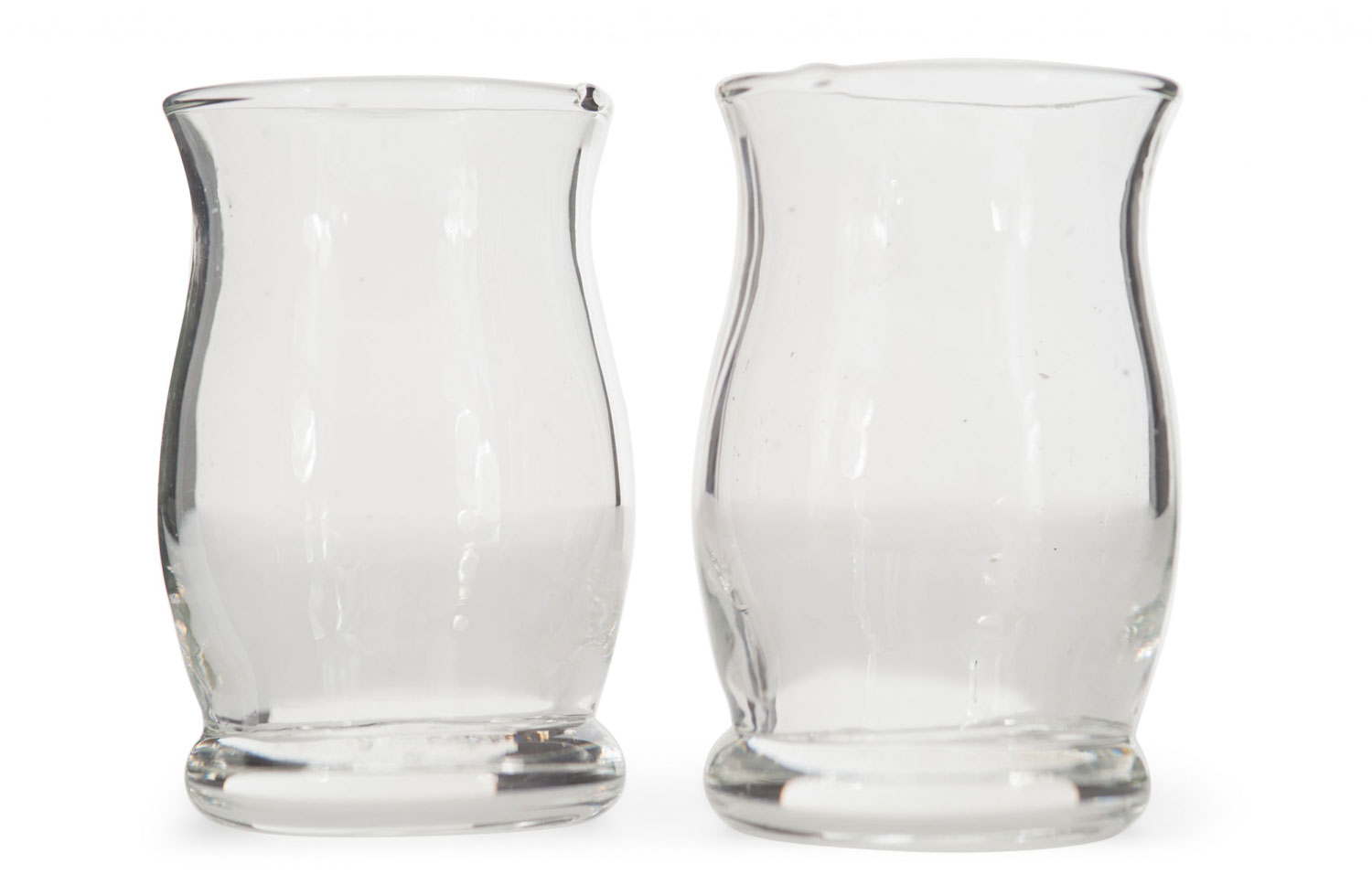 PAIR of clear glass candle holders (PRICED AS PAIR).