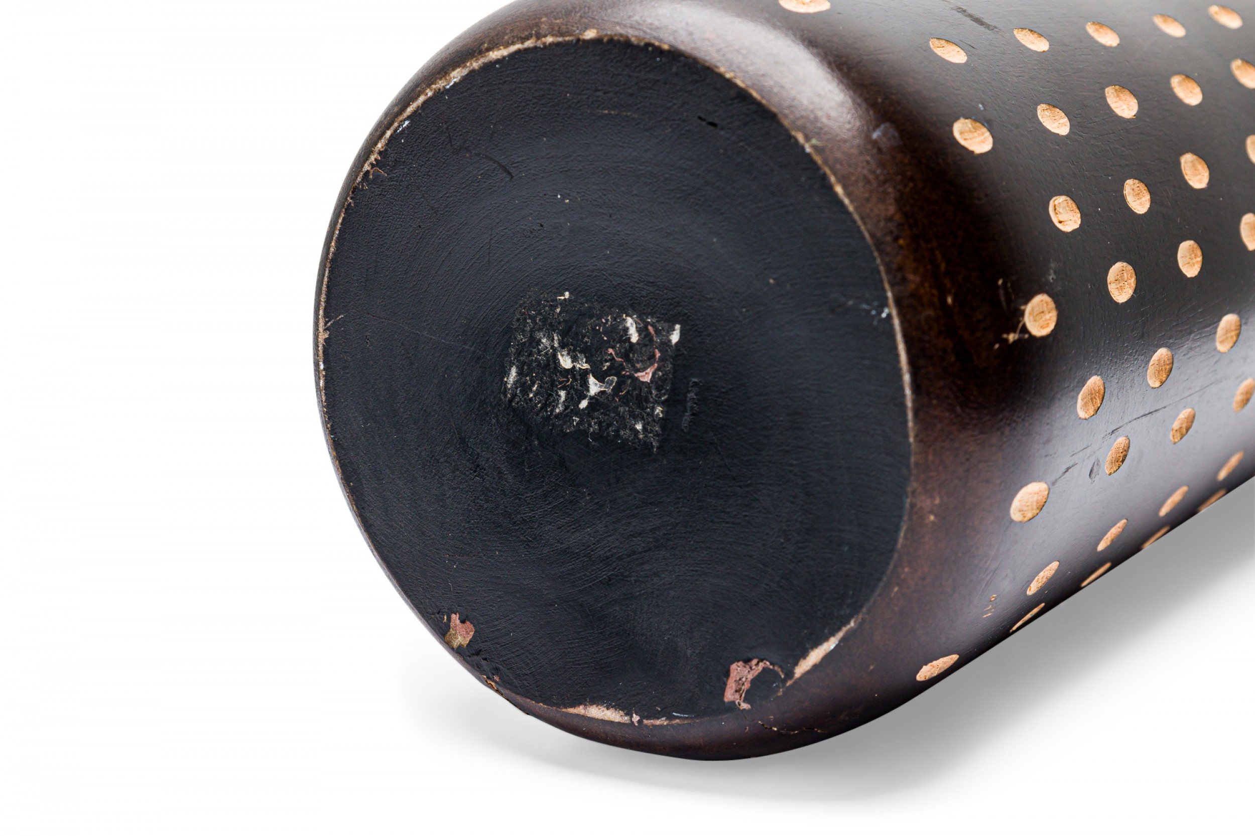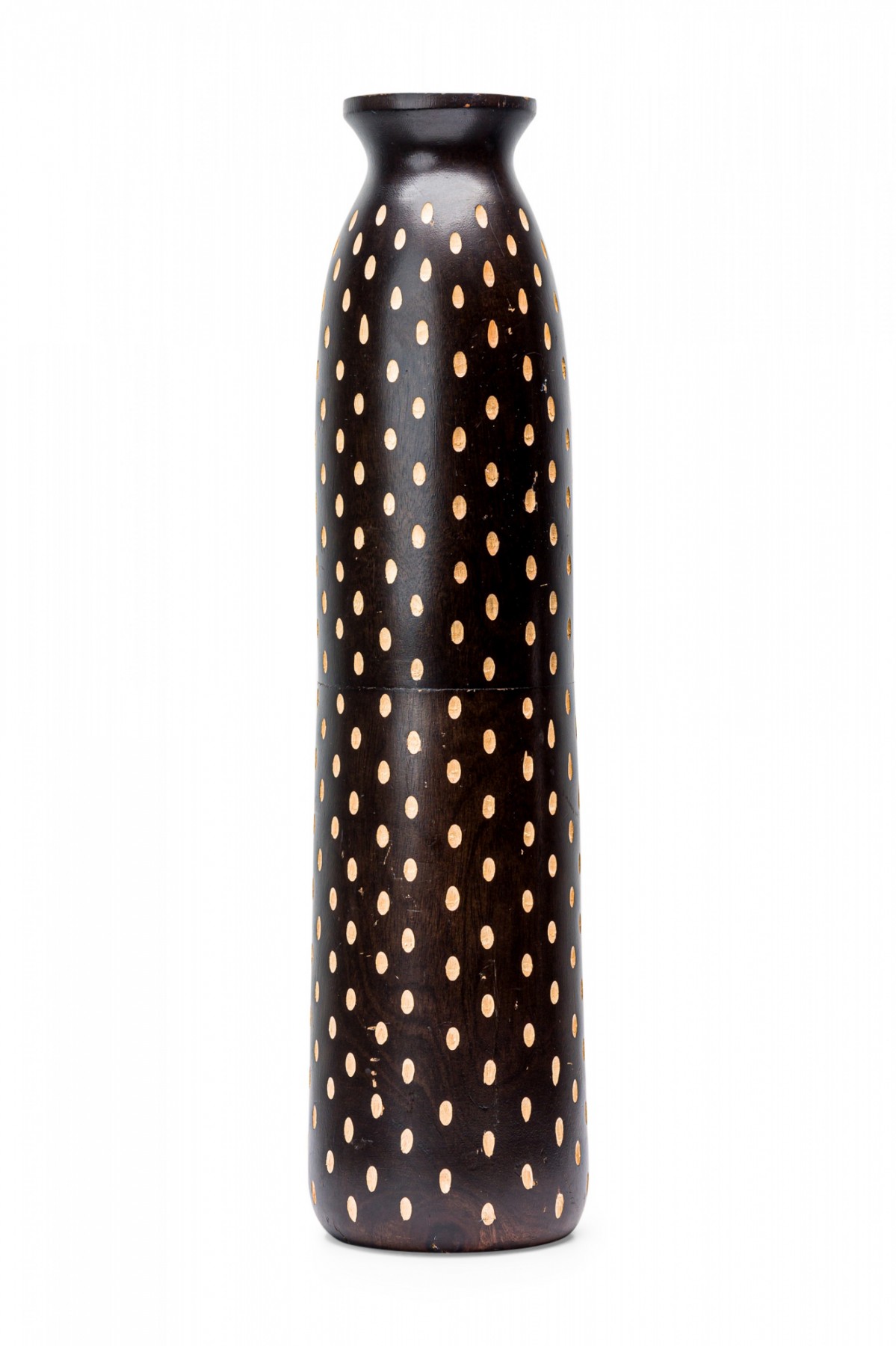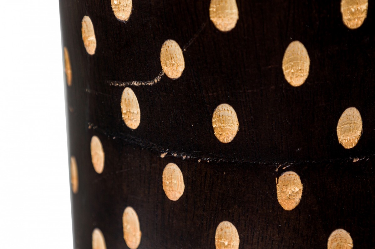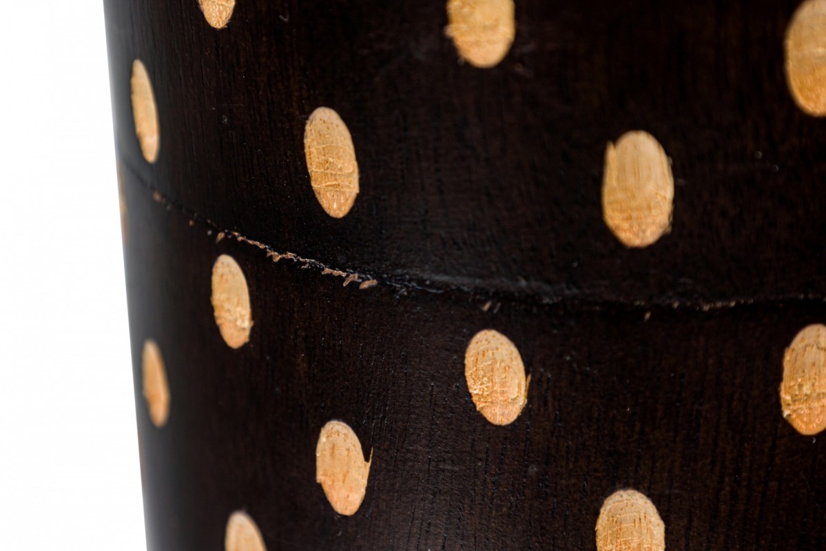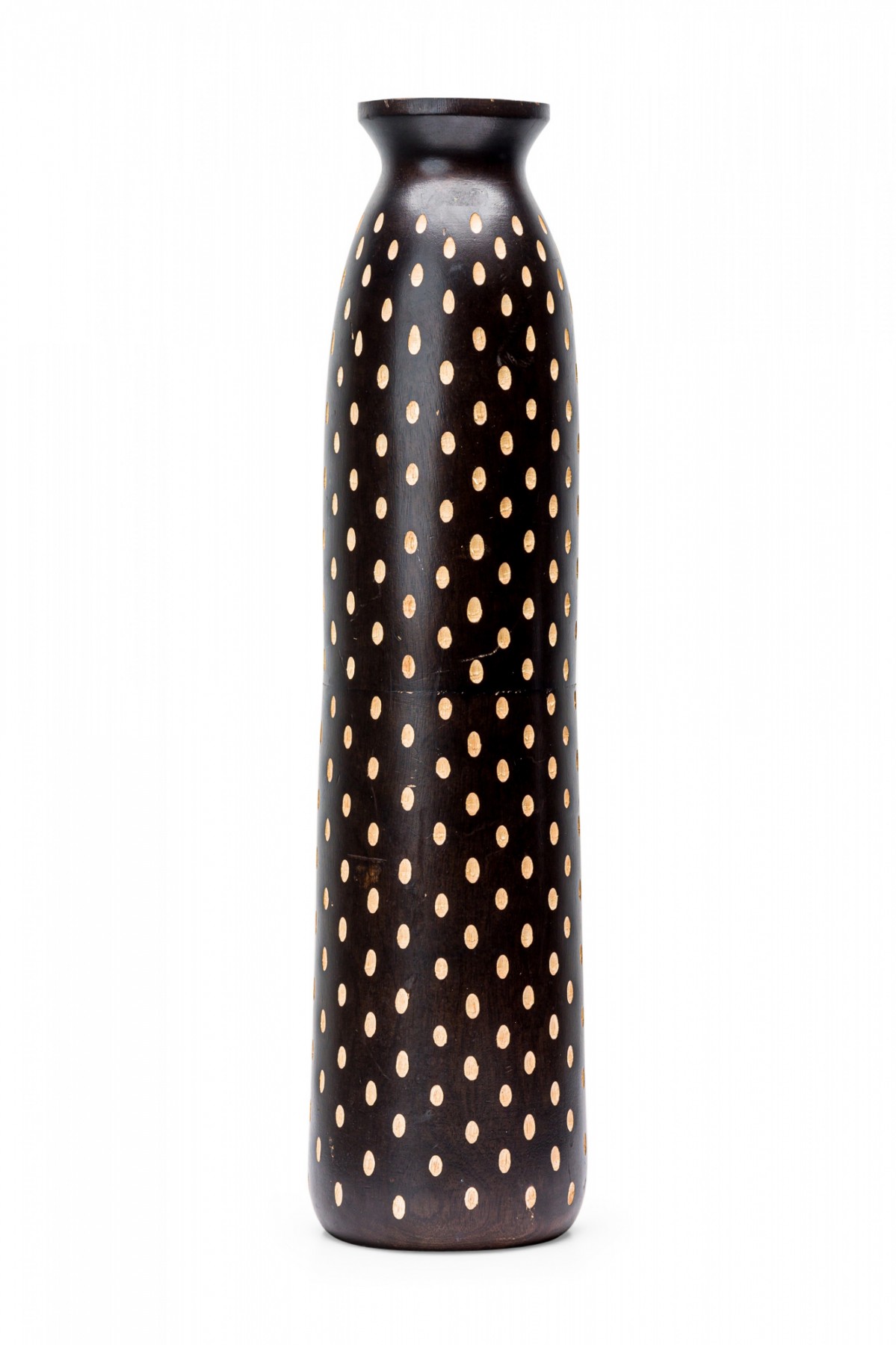 Contemporary African style wooden vase, with a turned shape and etched pattern design