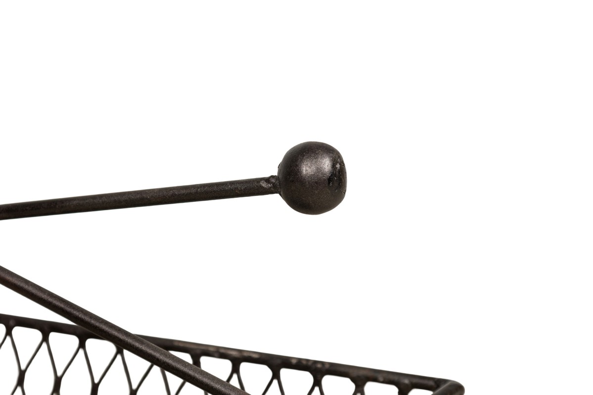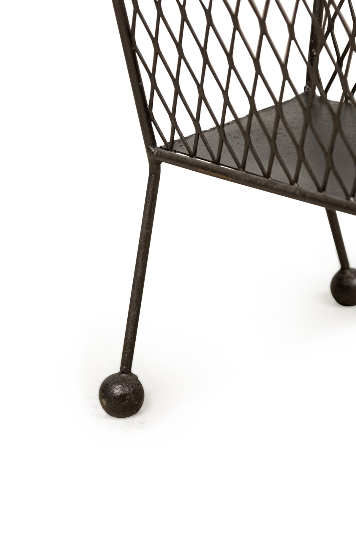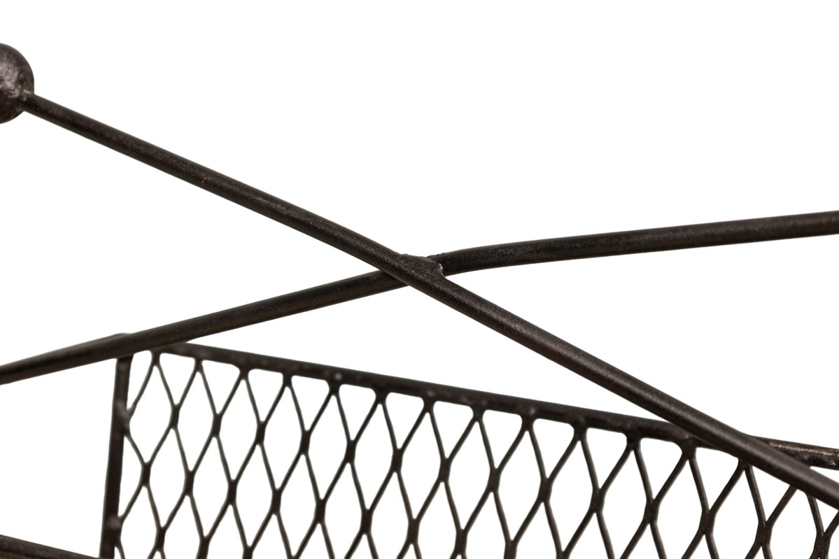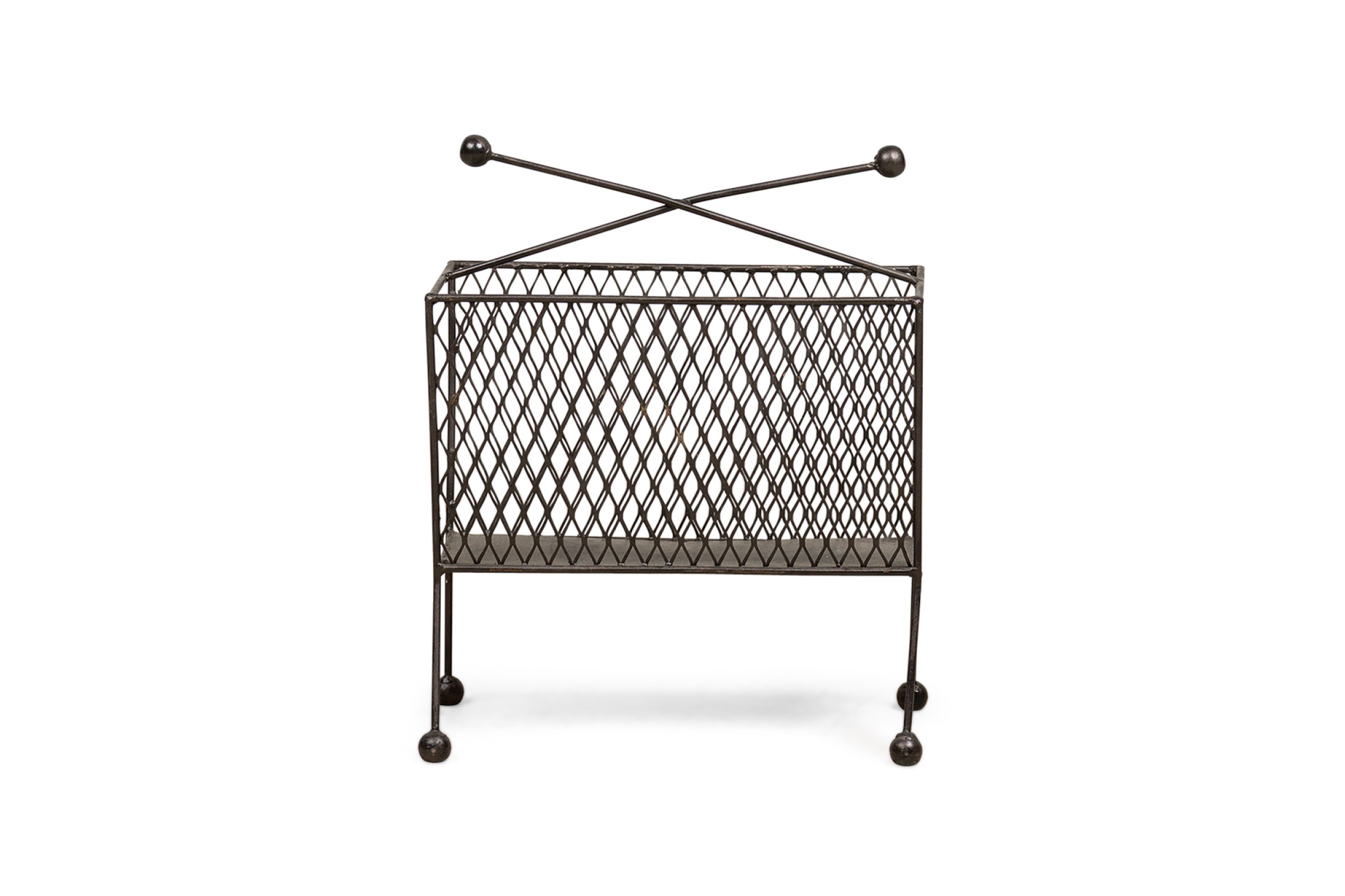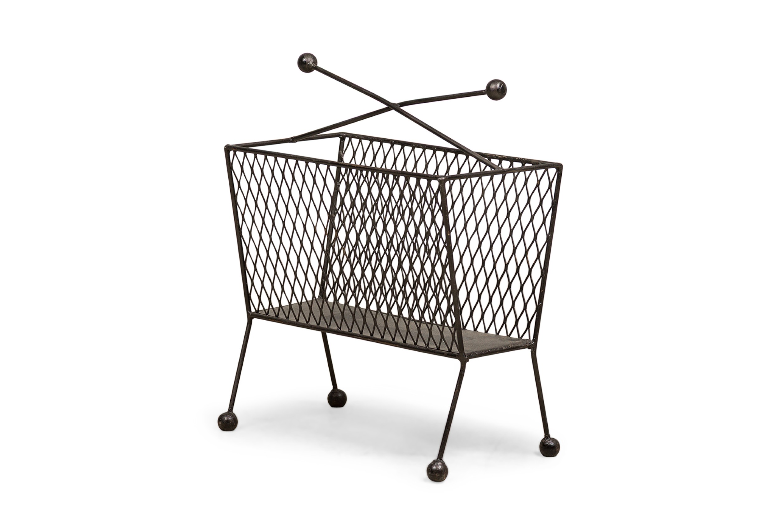 Contemporary American magazine rack bearing a netted body ending on four metal legs with round feet