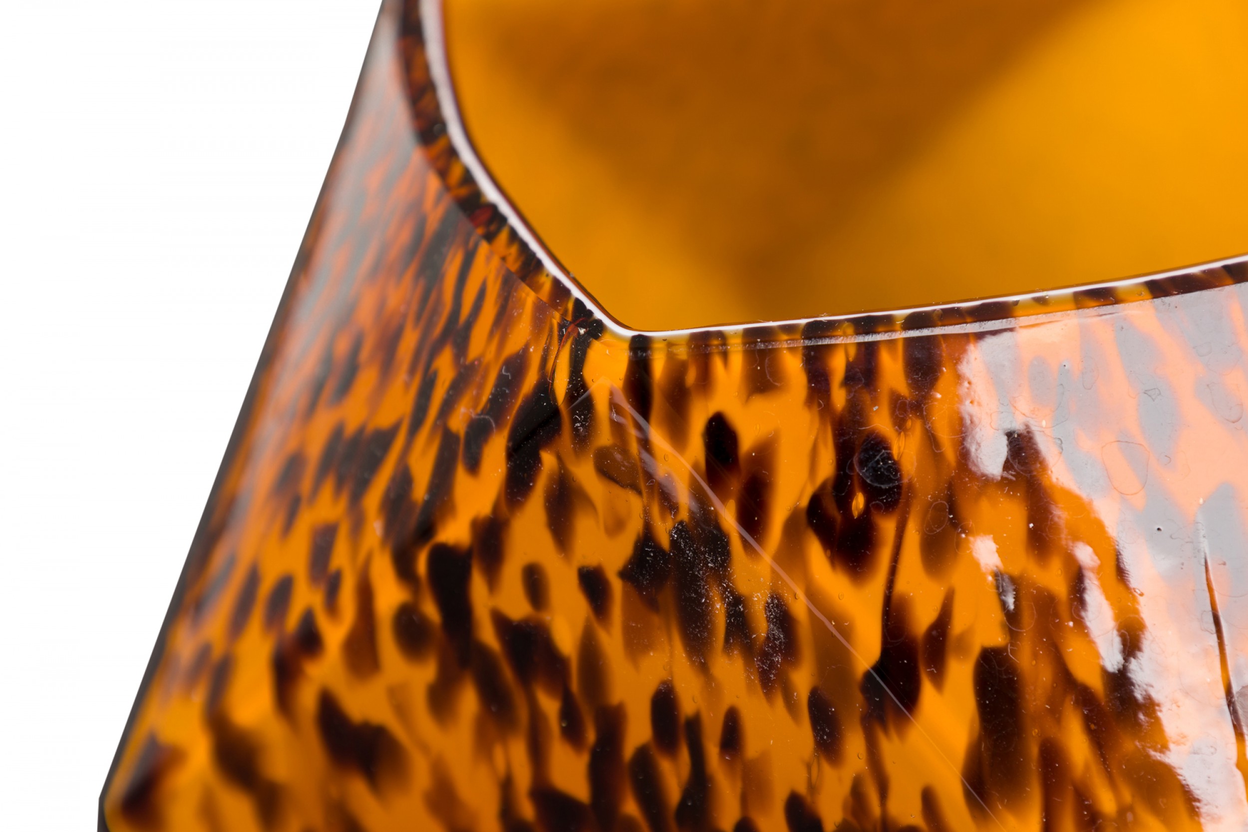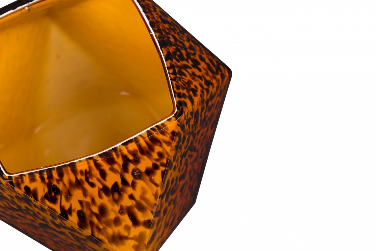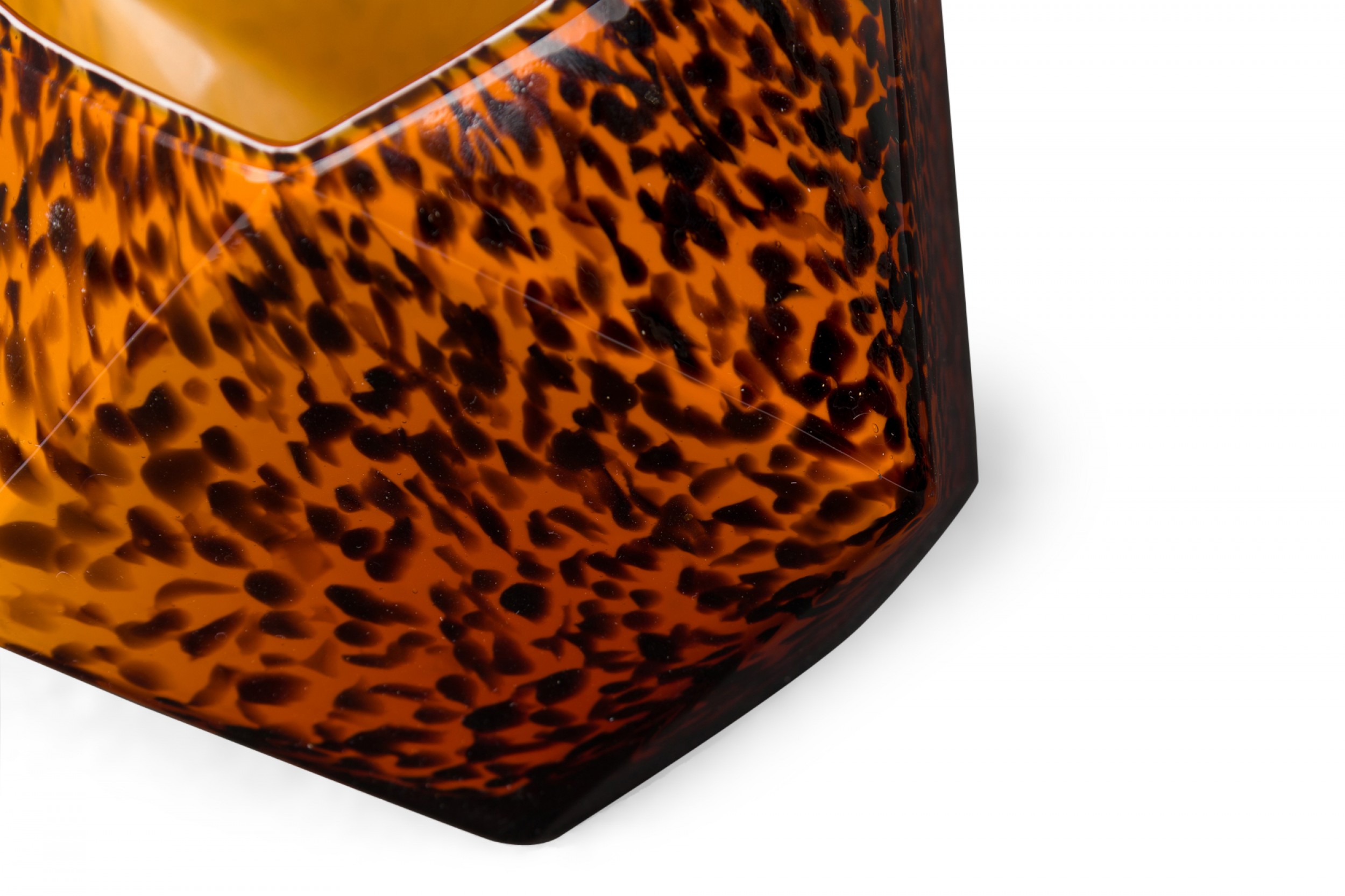 Choose one of the options below.Contemporary American Vintage Brown and Orange Leopard Speckled Polyhedral Glass Vase