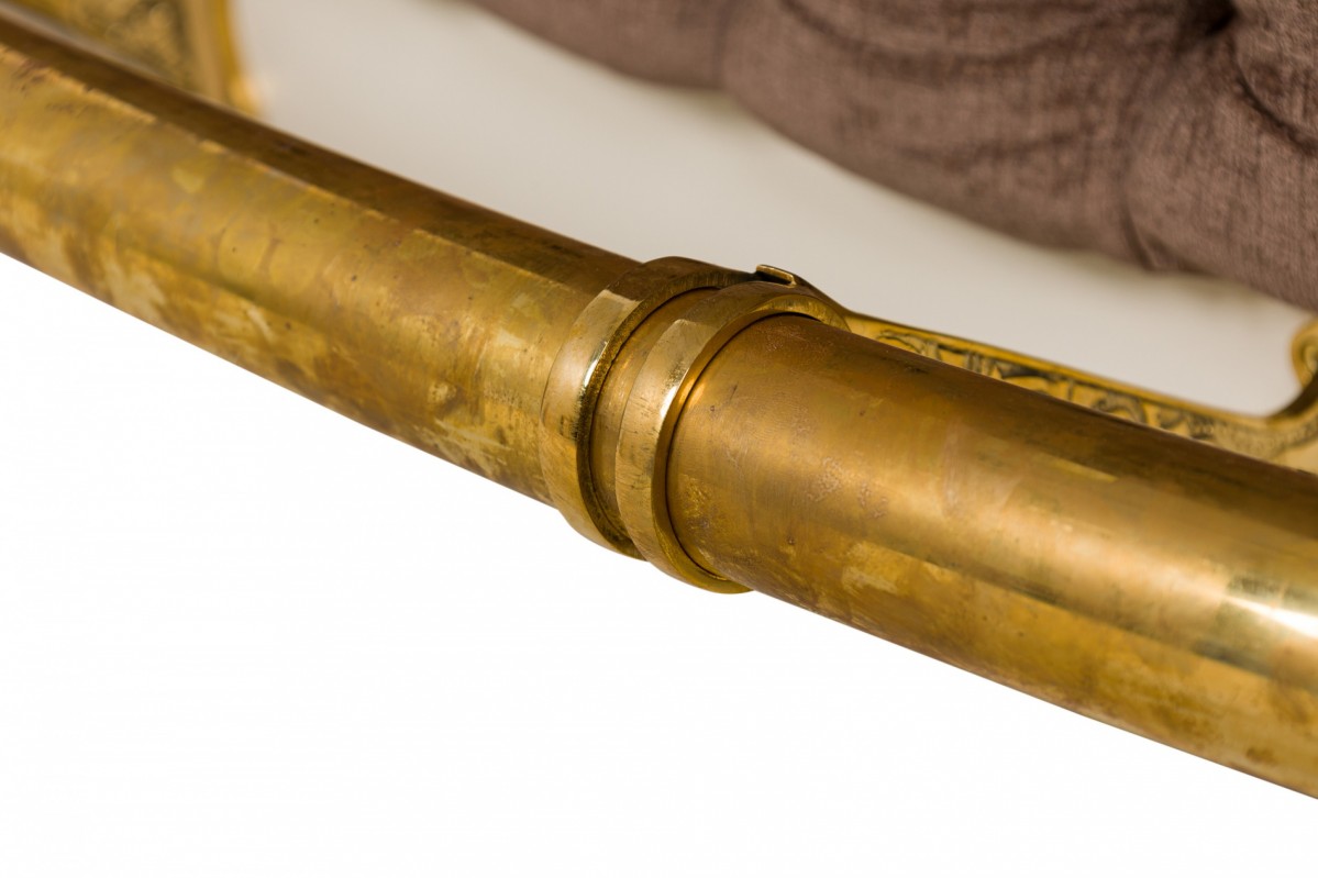 Contemporary American Wooden Taupe Tufted Upholstered 3-Tiered Bar with Brass Foot Rail