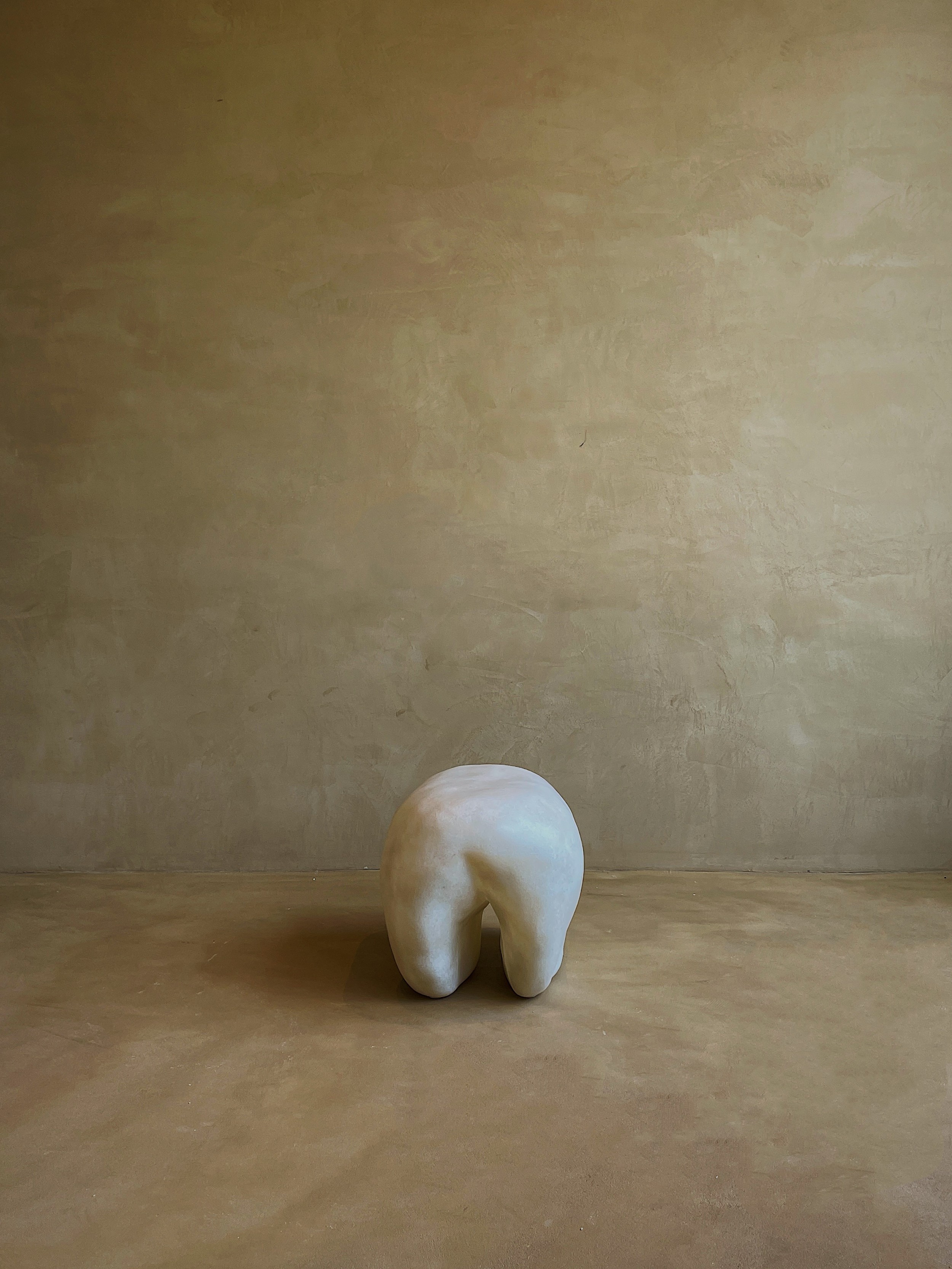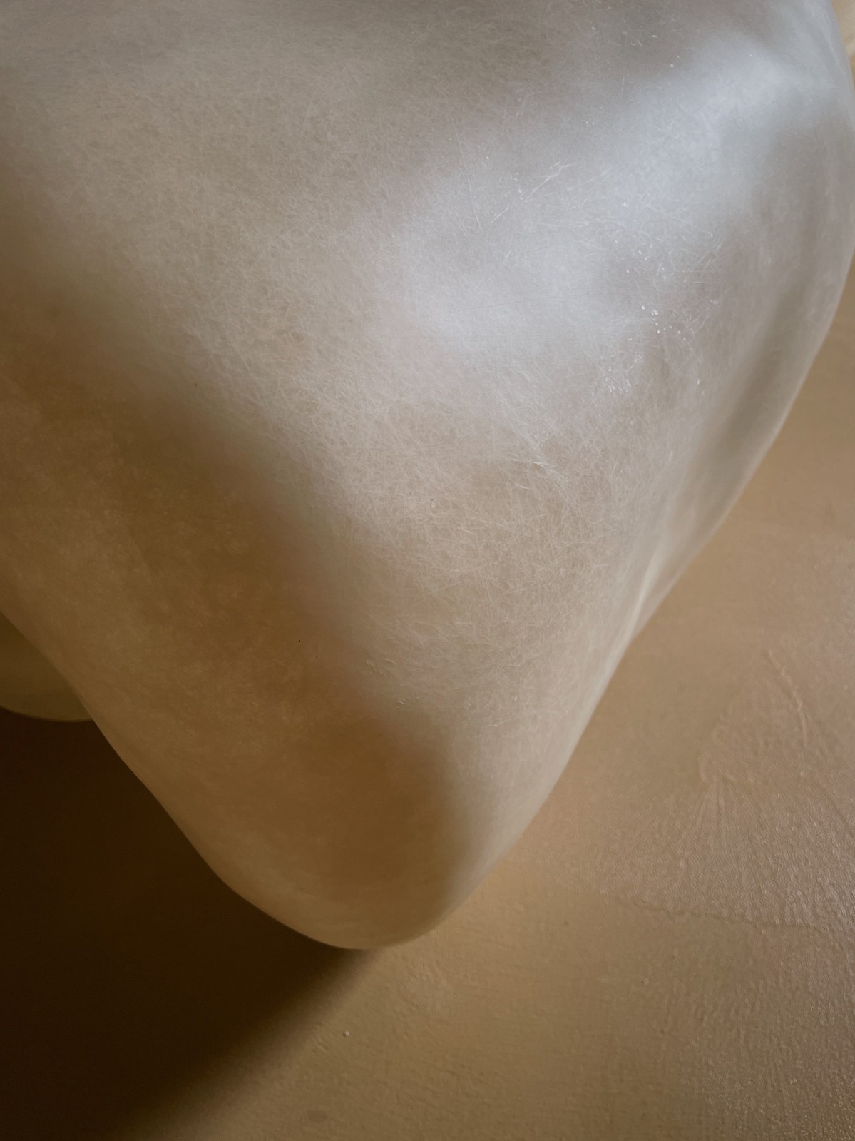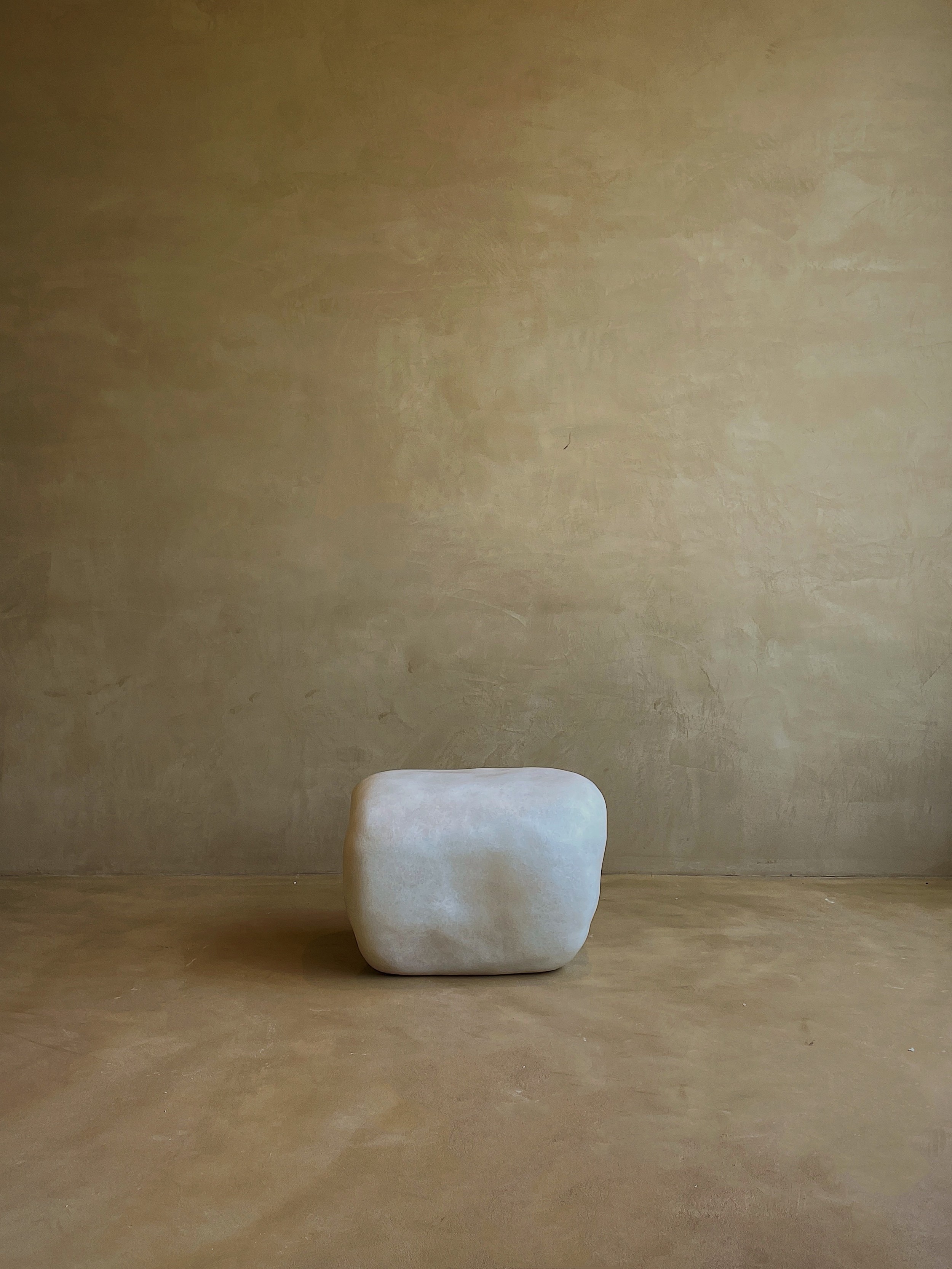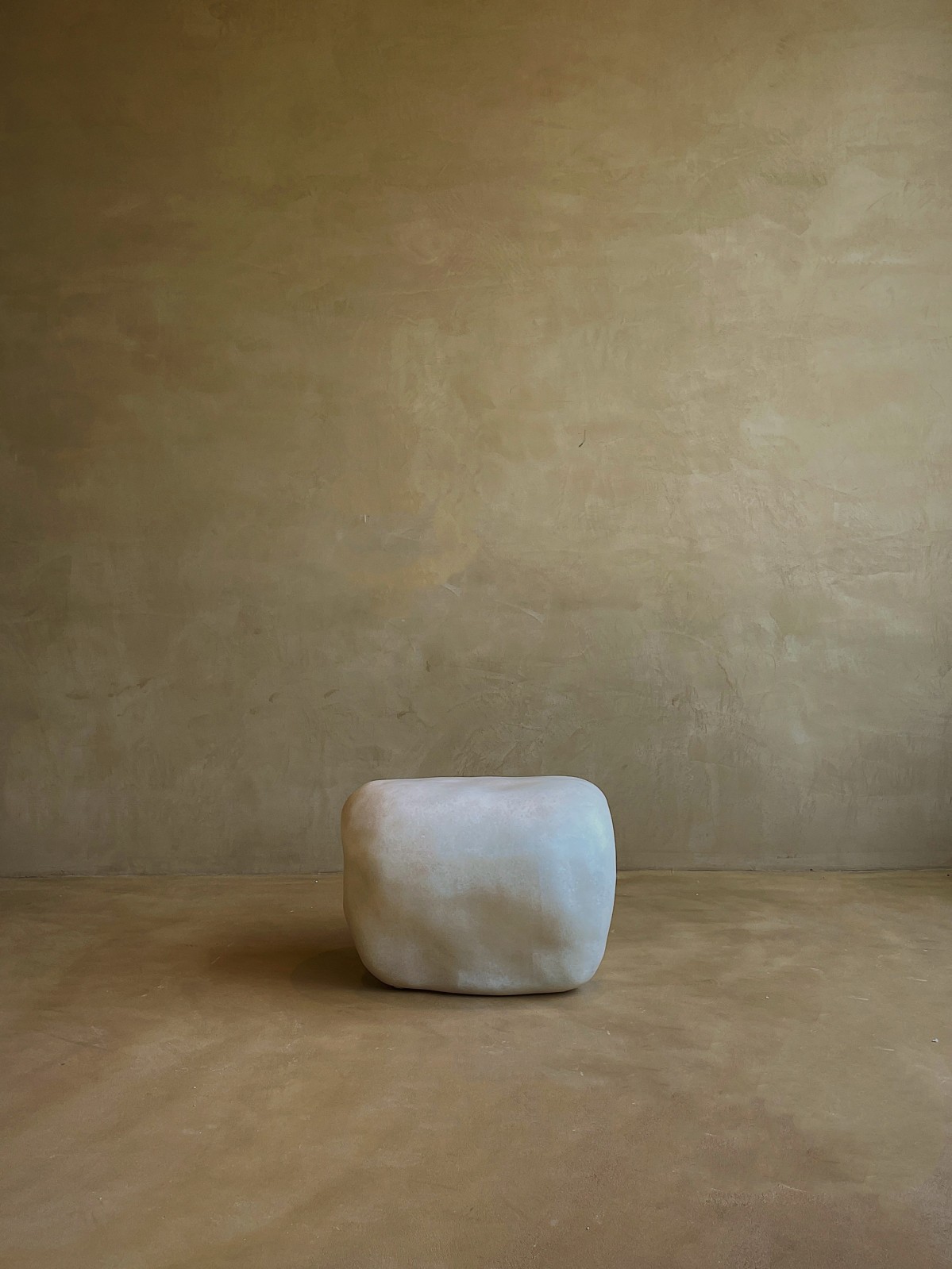 Contemporary "Tooth" stool in a beige fiberglass molded form that resembles a leveled molar tooth