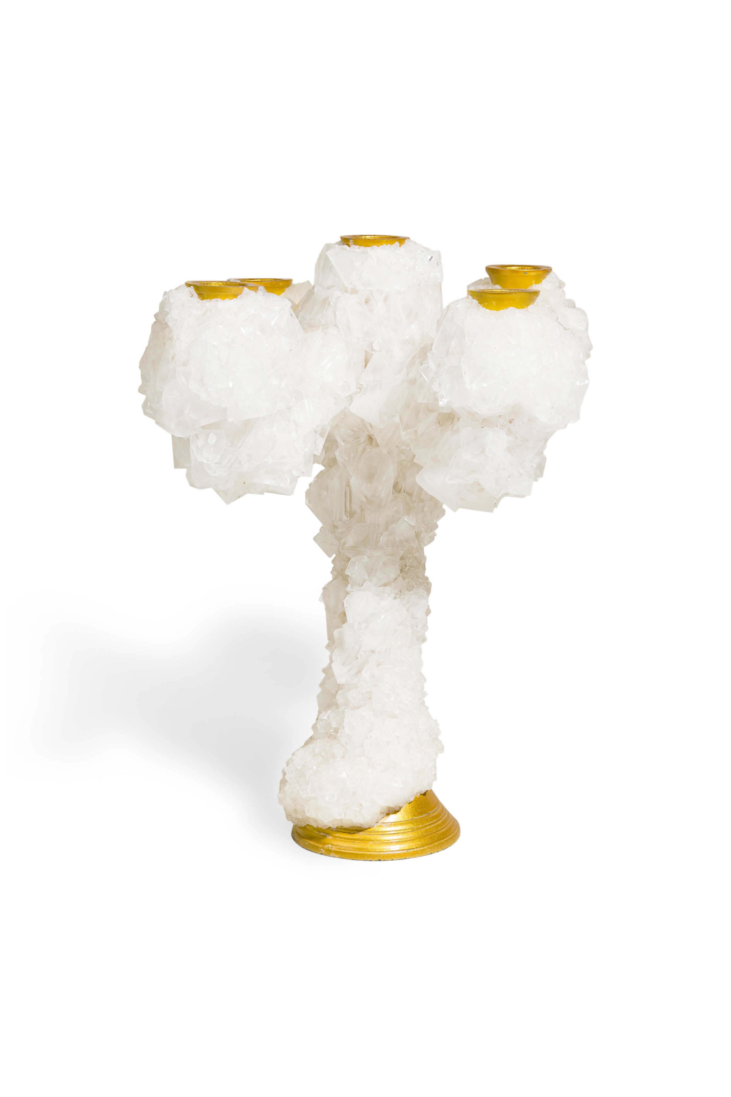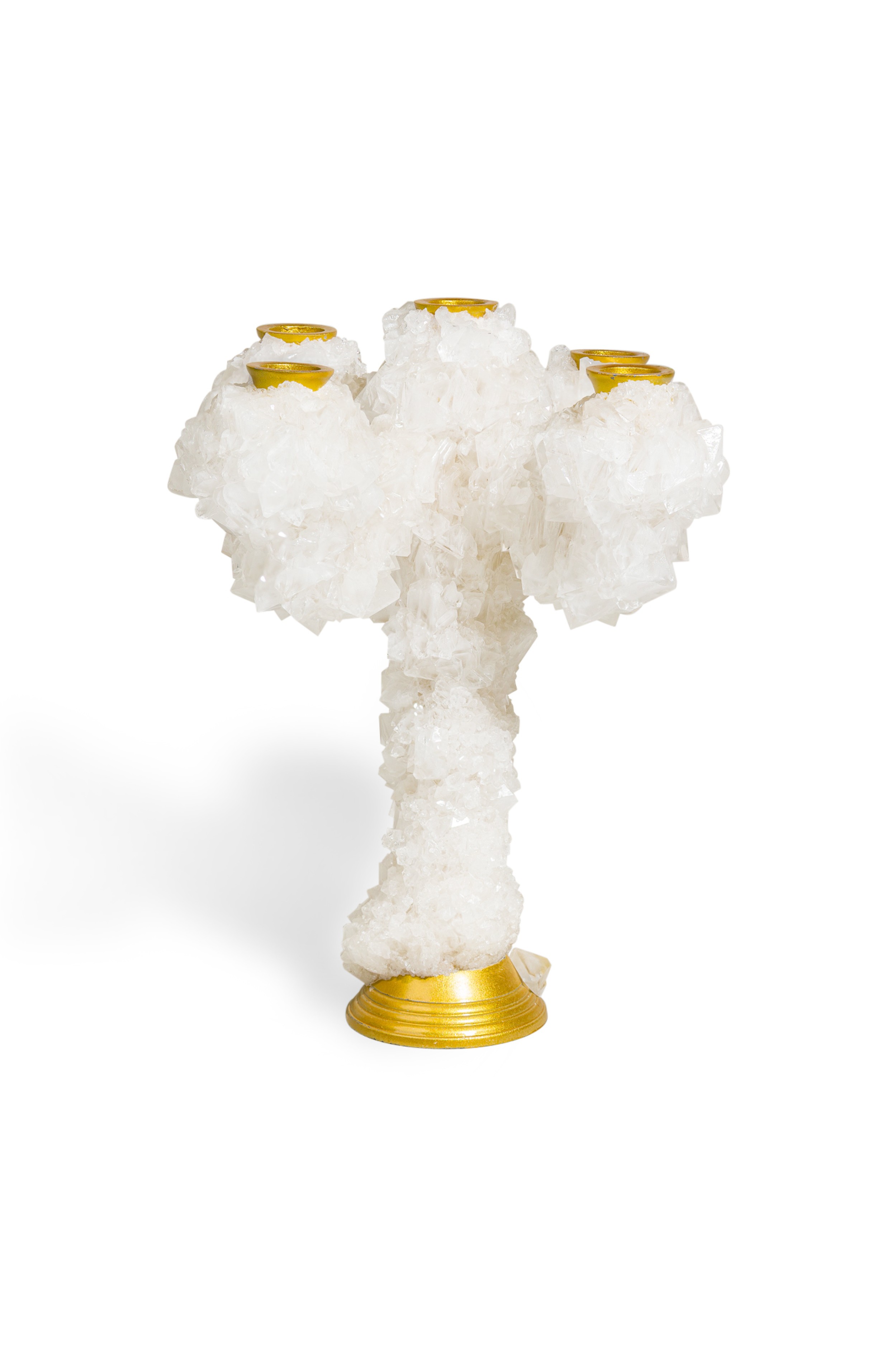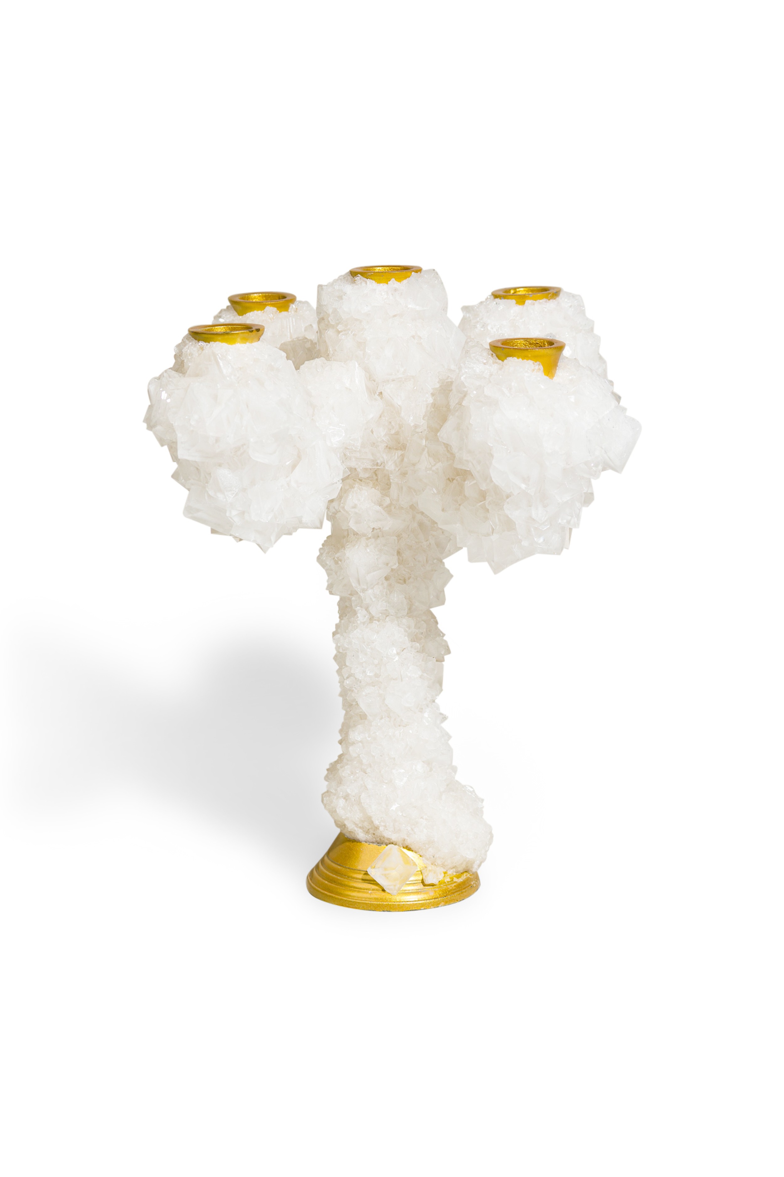 Contemporary candelabra with five aluminium candelsticks enveloped with crystals