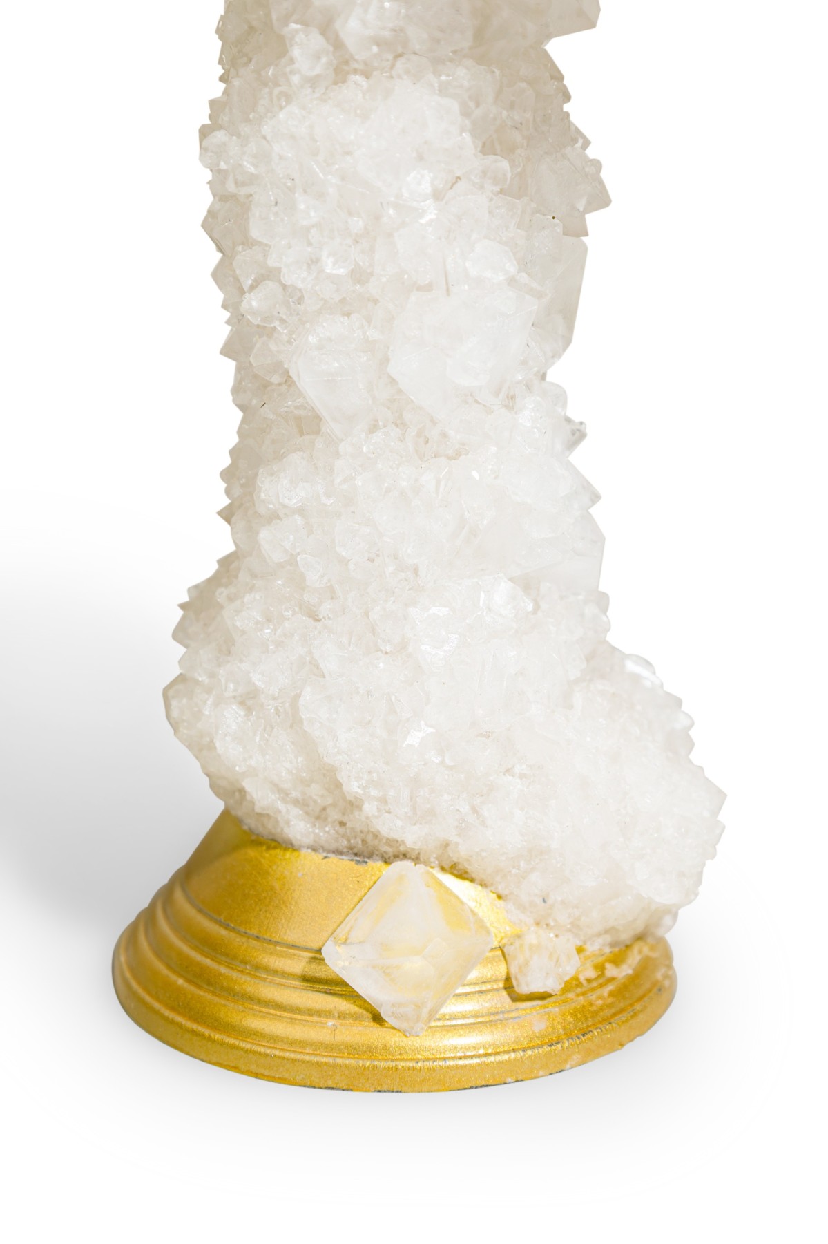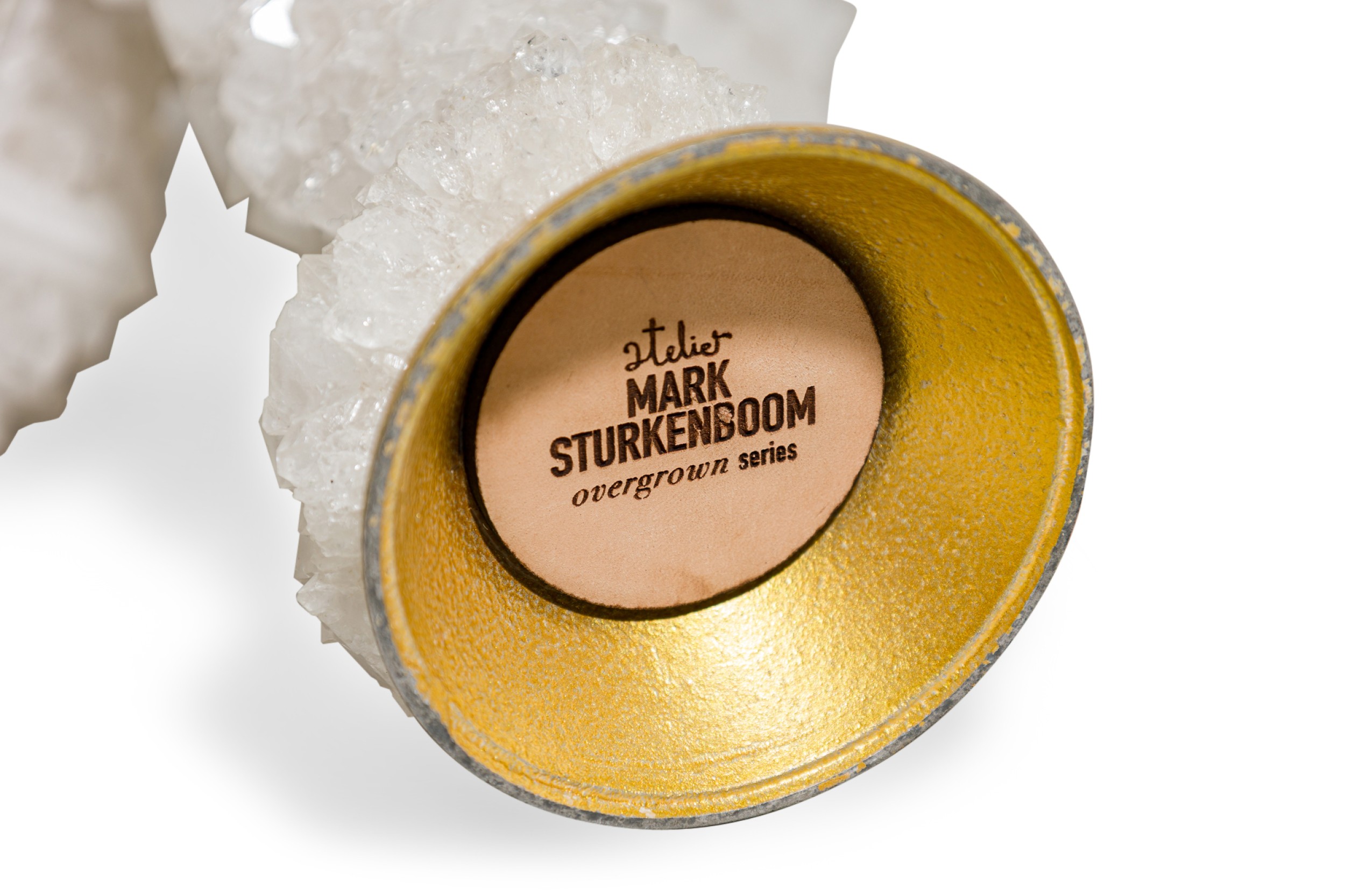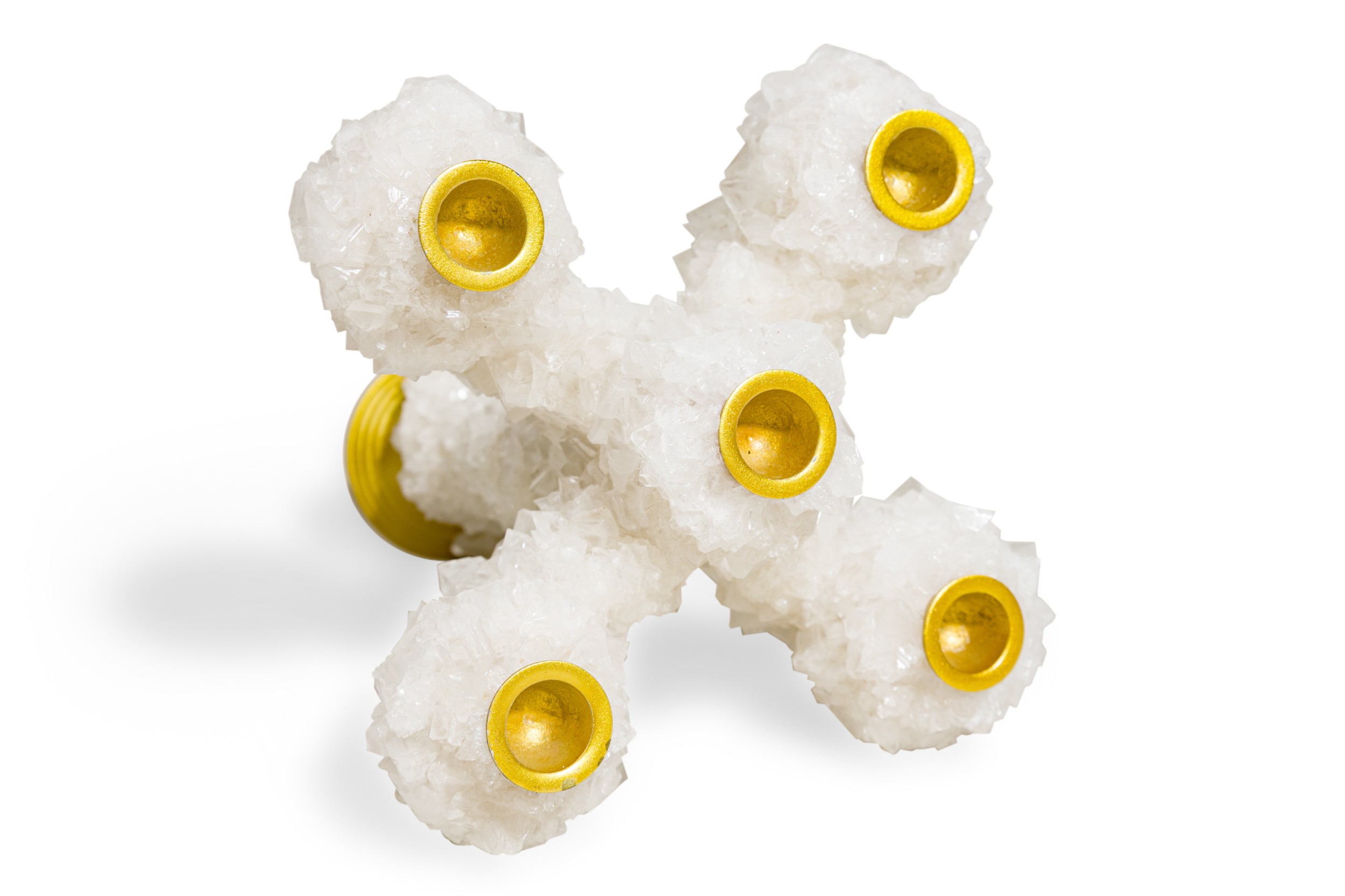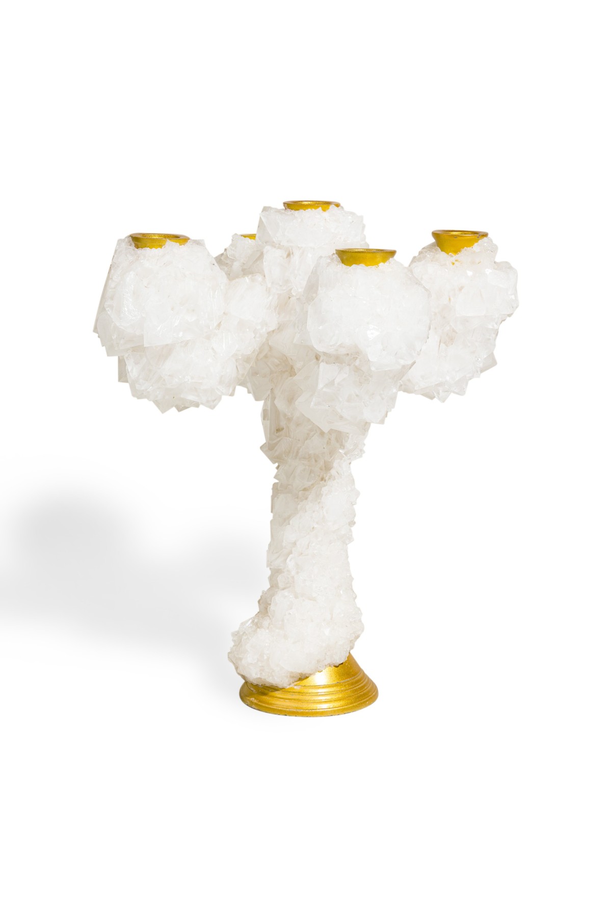 Contemporary candelabra with five aluminium candelsticks enveloped with crystals
