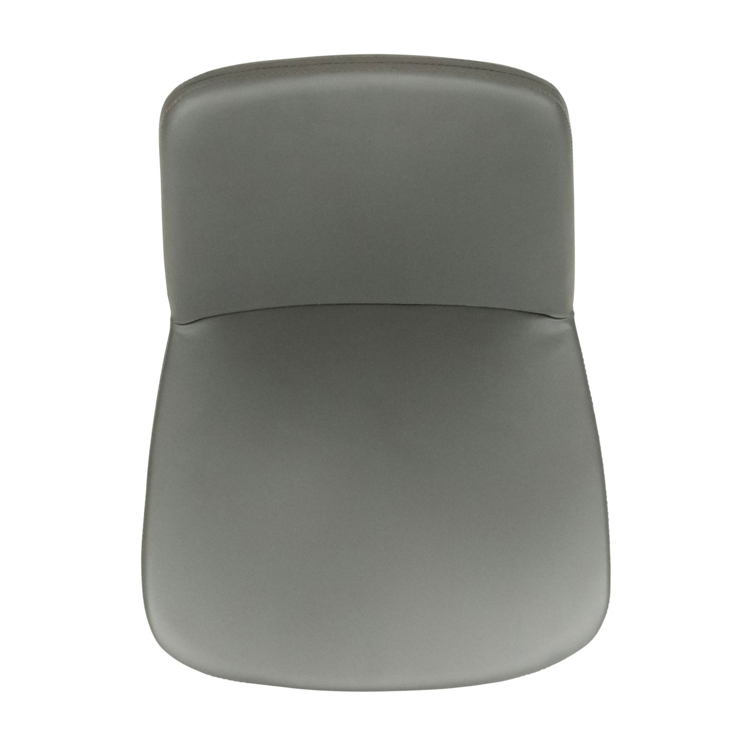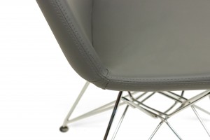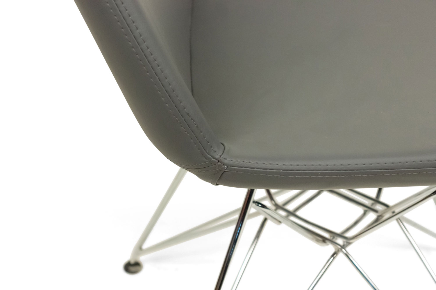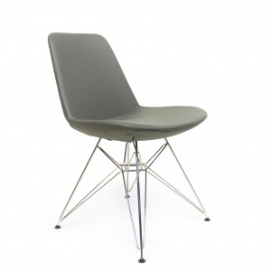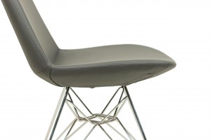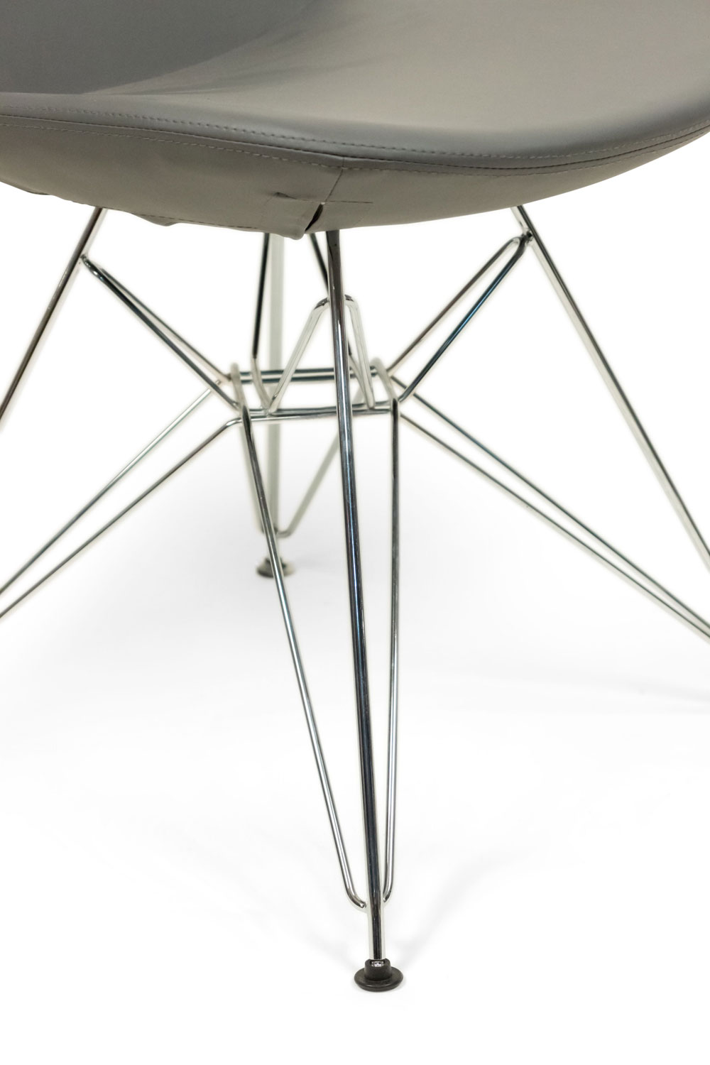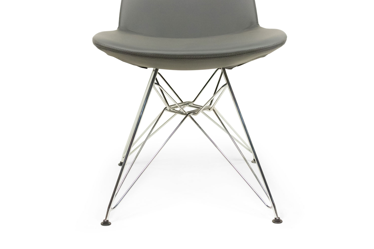 6 Contemporary design side chairs with a DARK GREY leatherette upholstered seat and back supported on stainless steel wire legs connected with a stretcher (PRICED EACH)