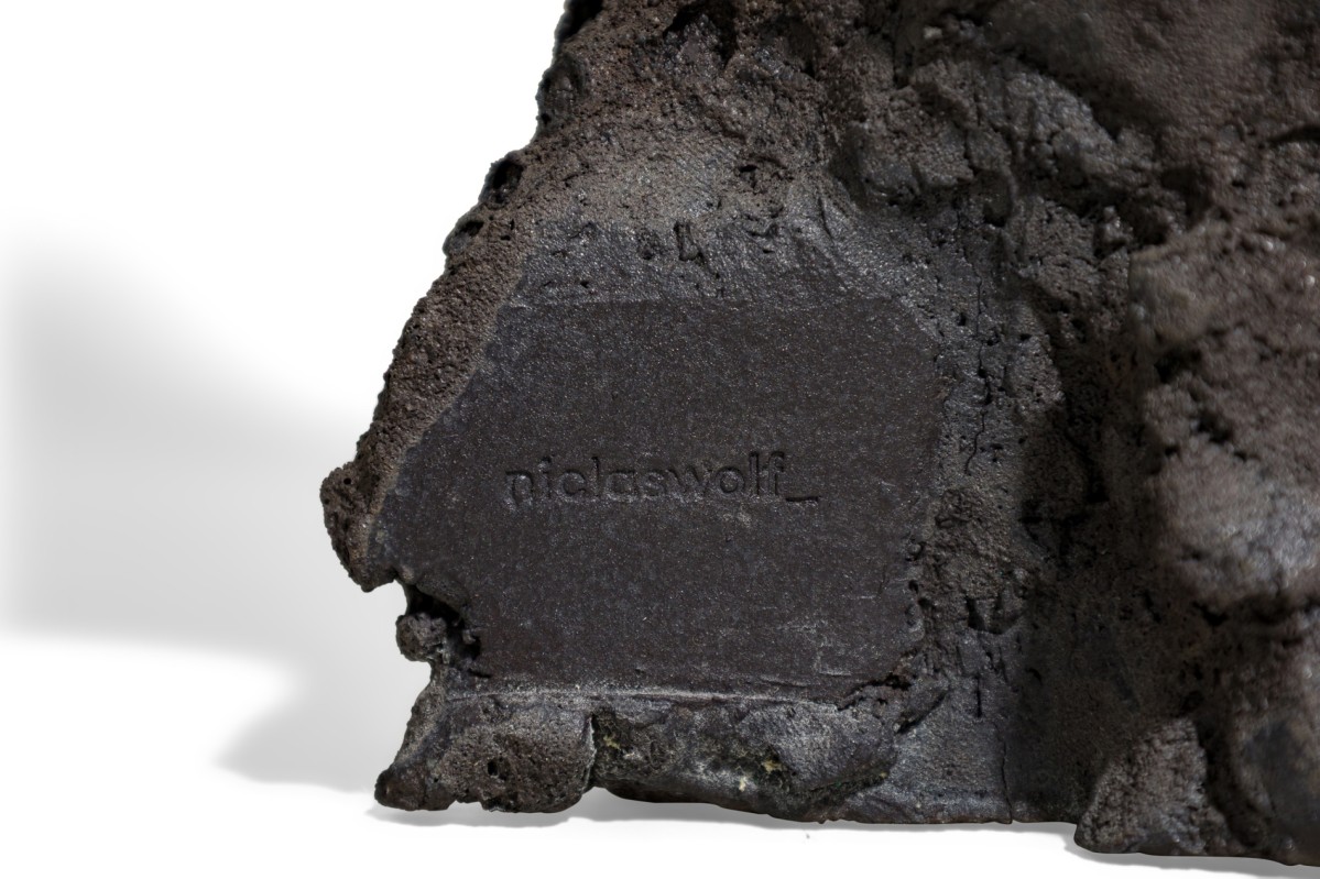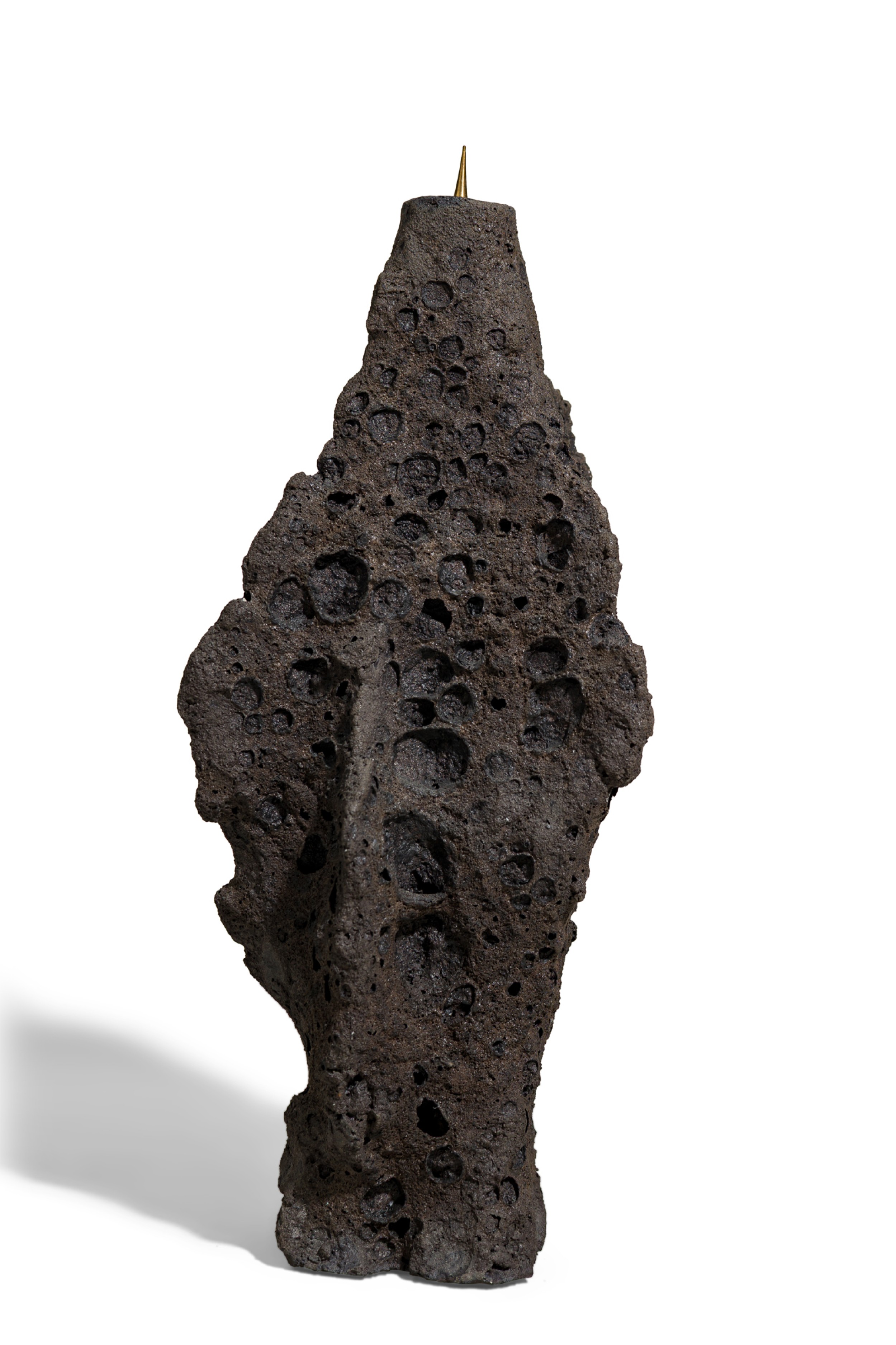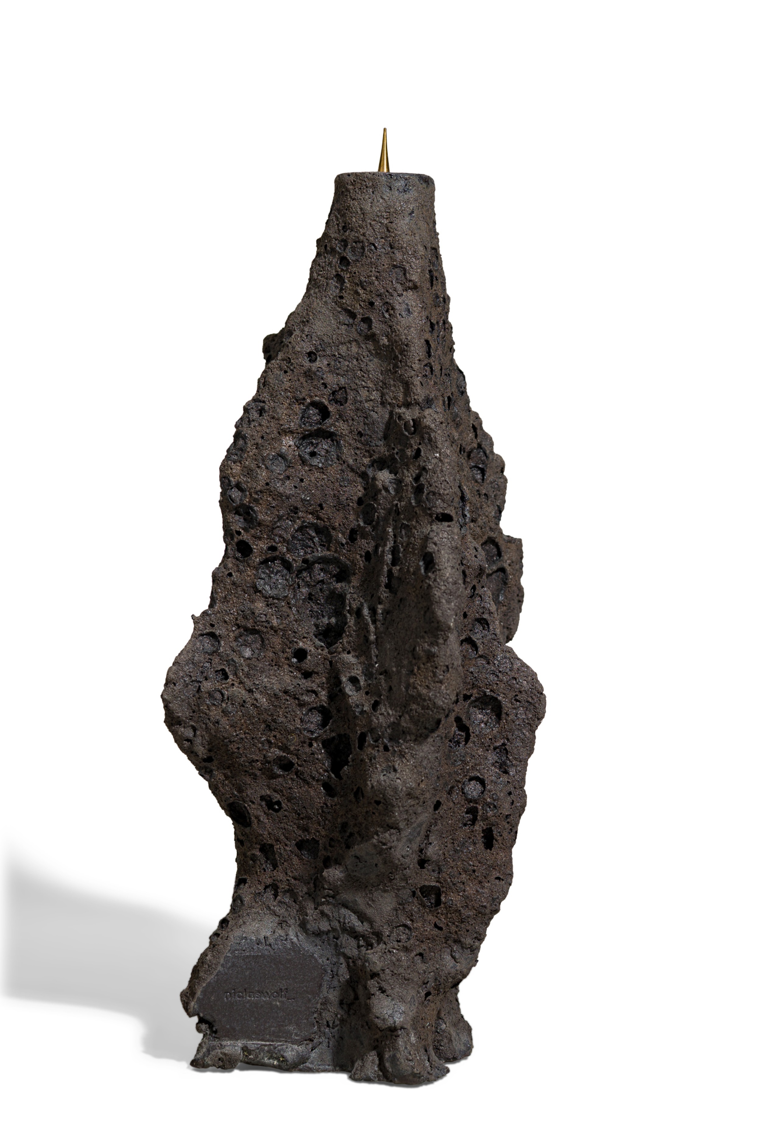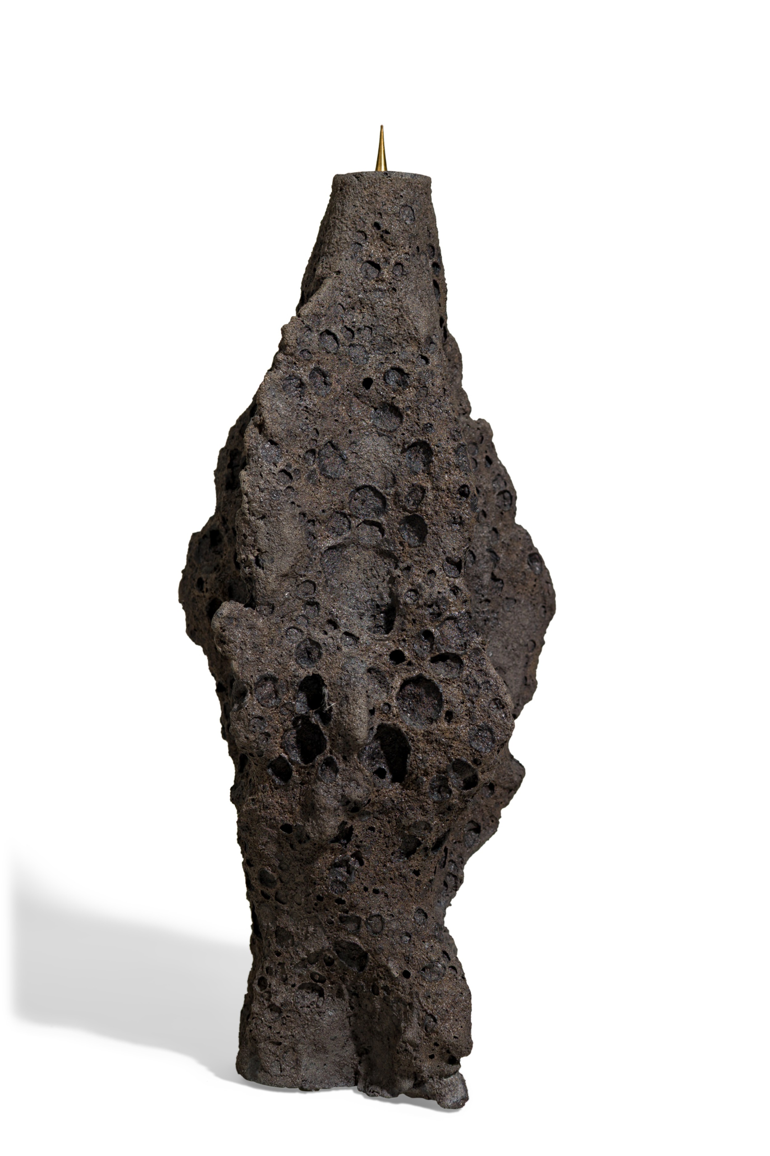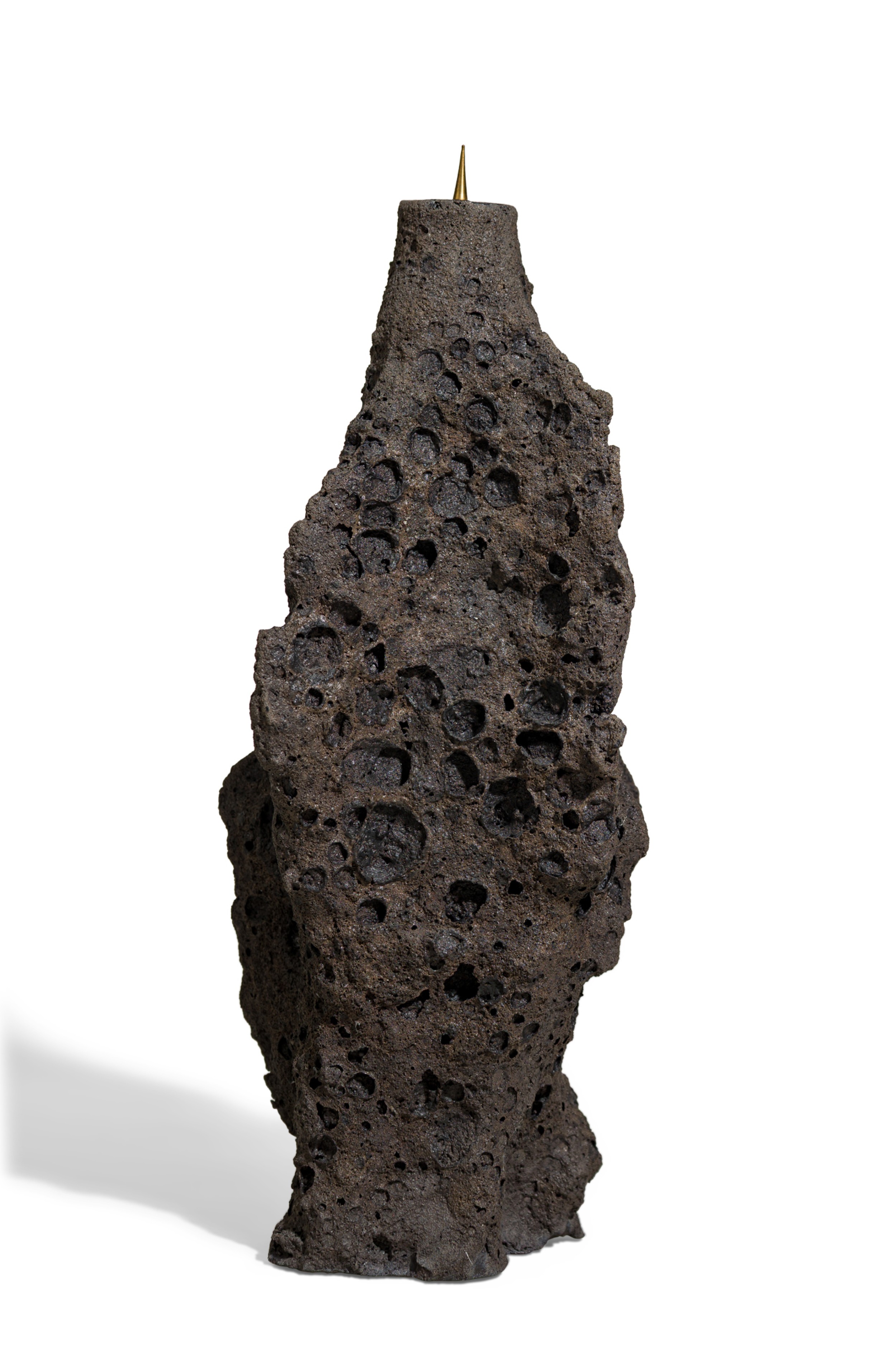 Contemporary candlestick featuring hand sculpted ceramic body inspired by tectonic structures and geological phenomena in nature