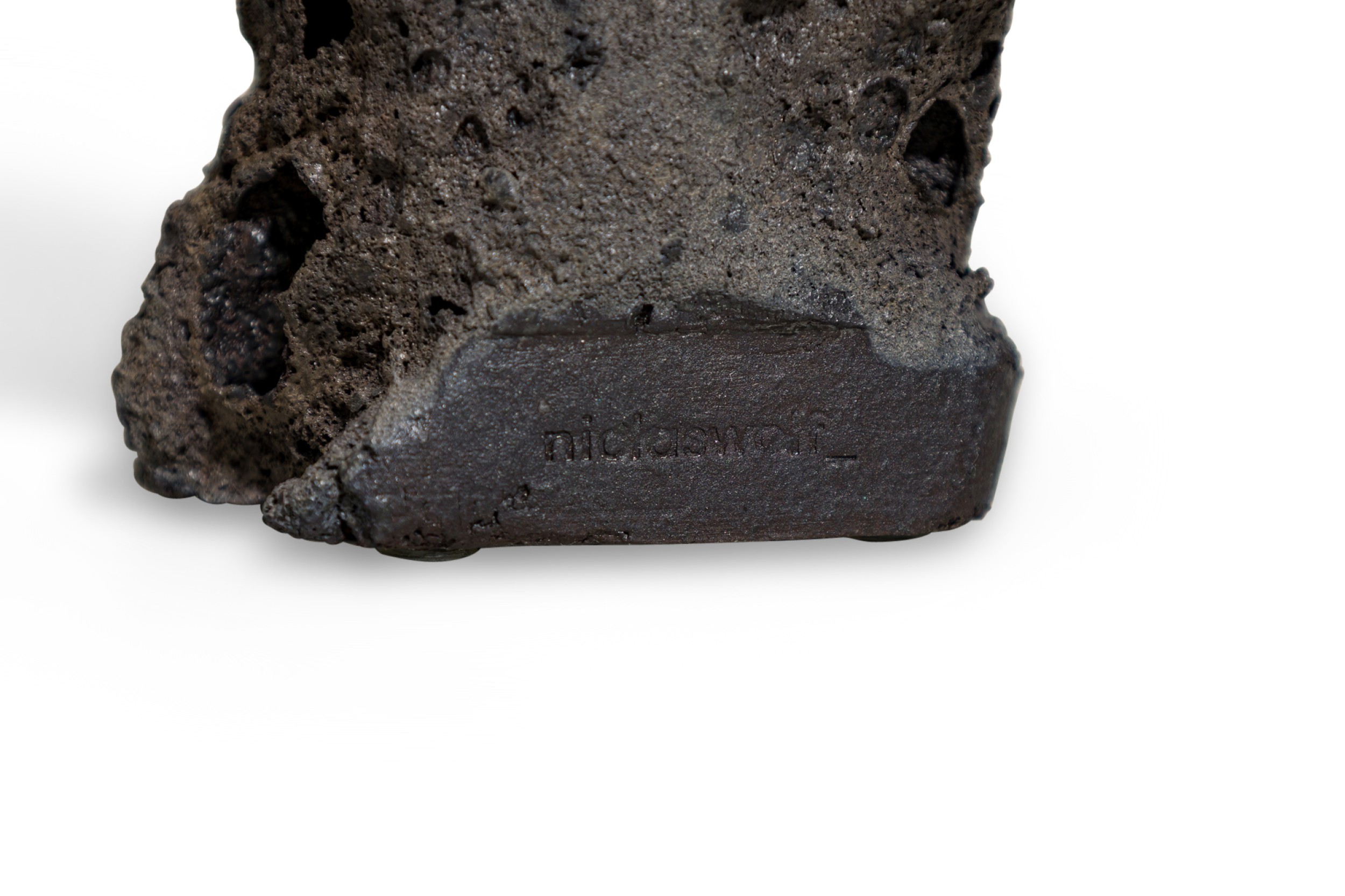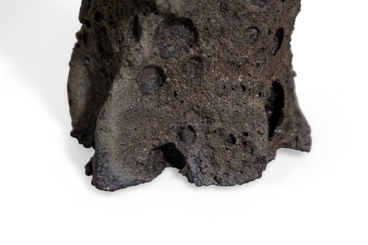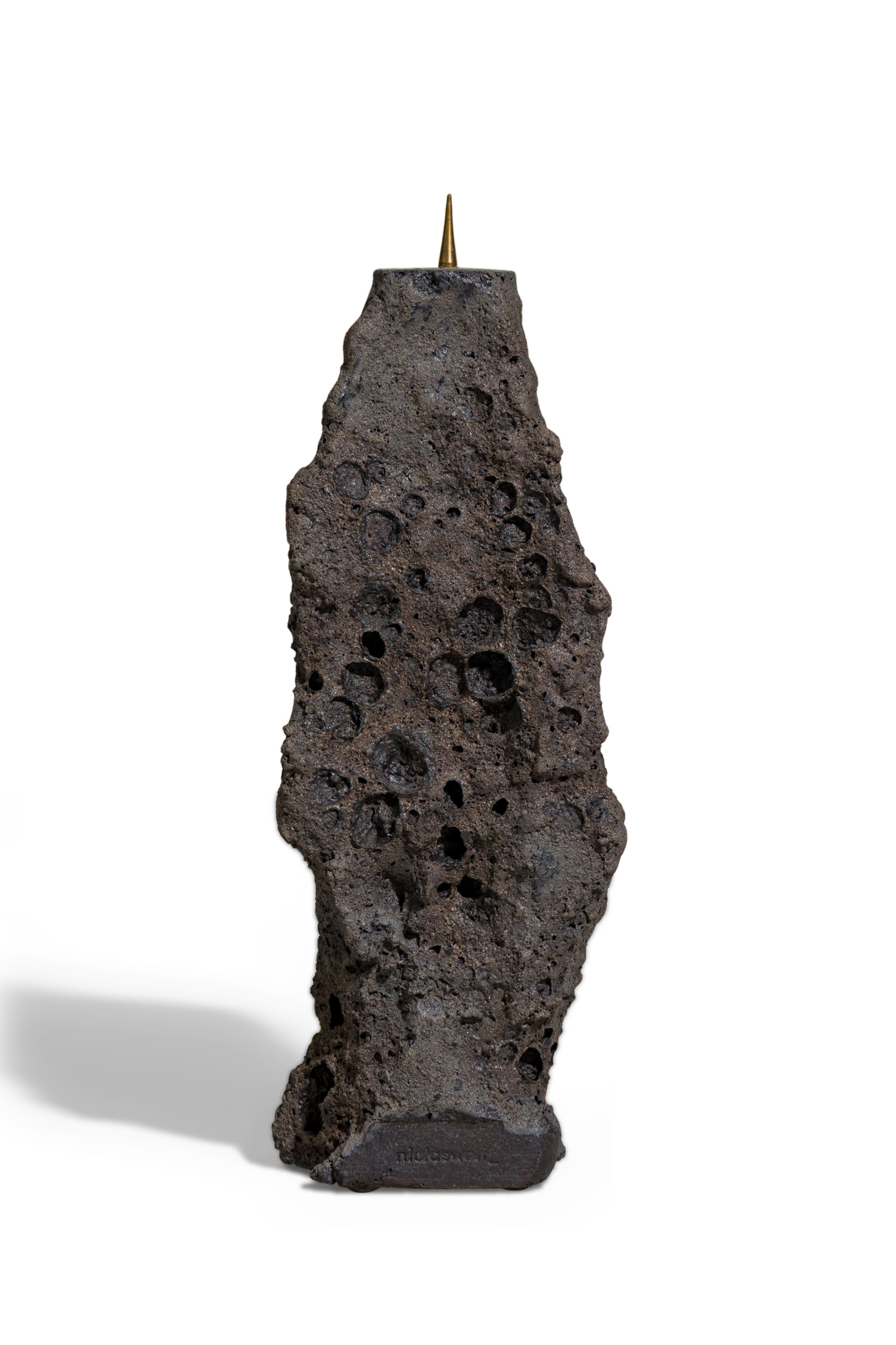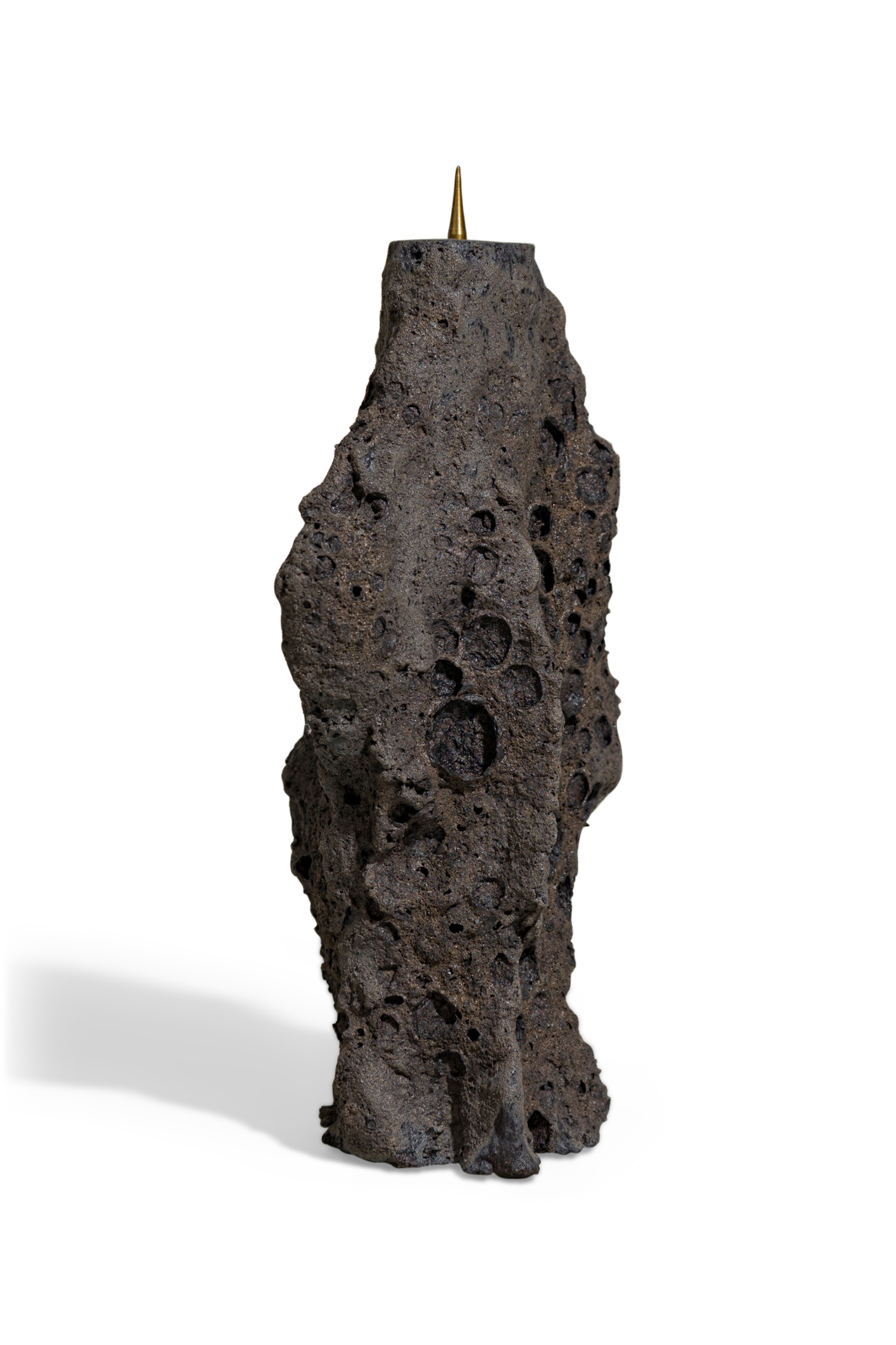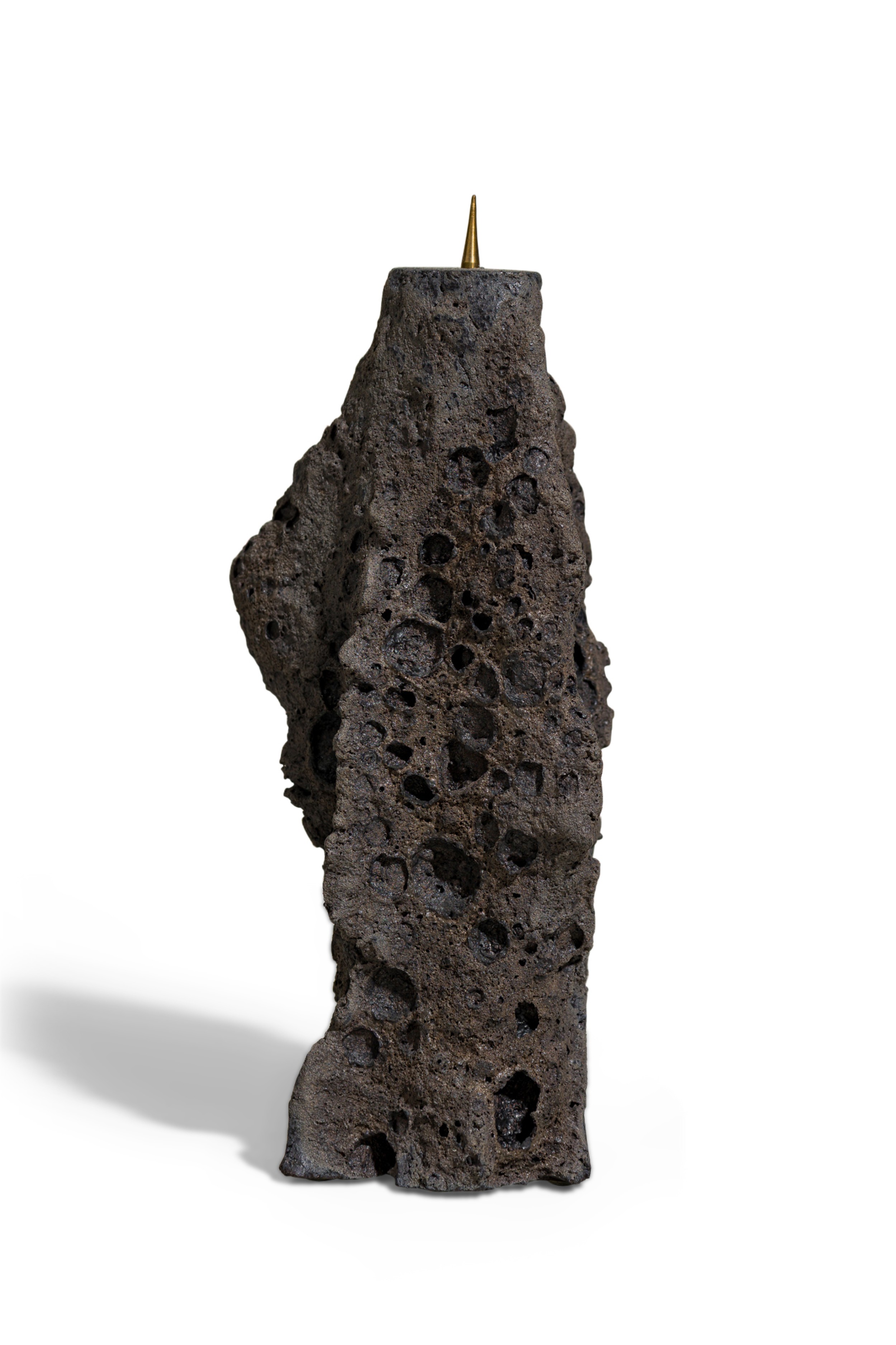 Contemporary candlestick featuring hand sculpted ceramic body inspired by tectonic structures and geological phenomena in nature