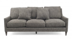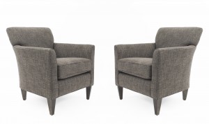 6 piece Contemporary upholstered living room / salon set with gray textured fabric & tapered wooden legs (Available individually: 4 arm chairs: 061680, ottoman: 061681, sofa: 061682)