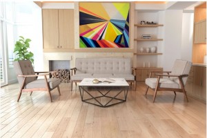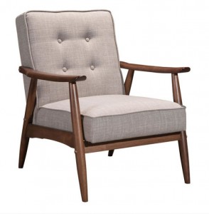 2 Contemporary arm chairs with wooden frames and gray button-tufted cushions (PRICED EACH) (Matching sofa: 061269)