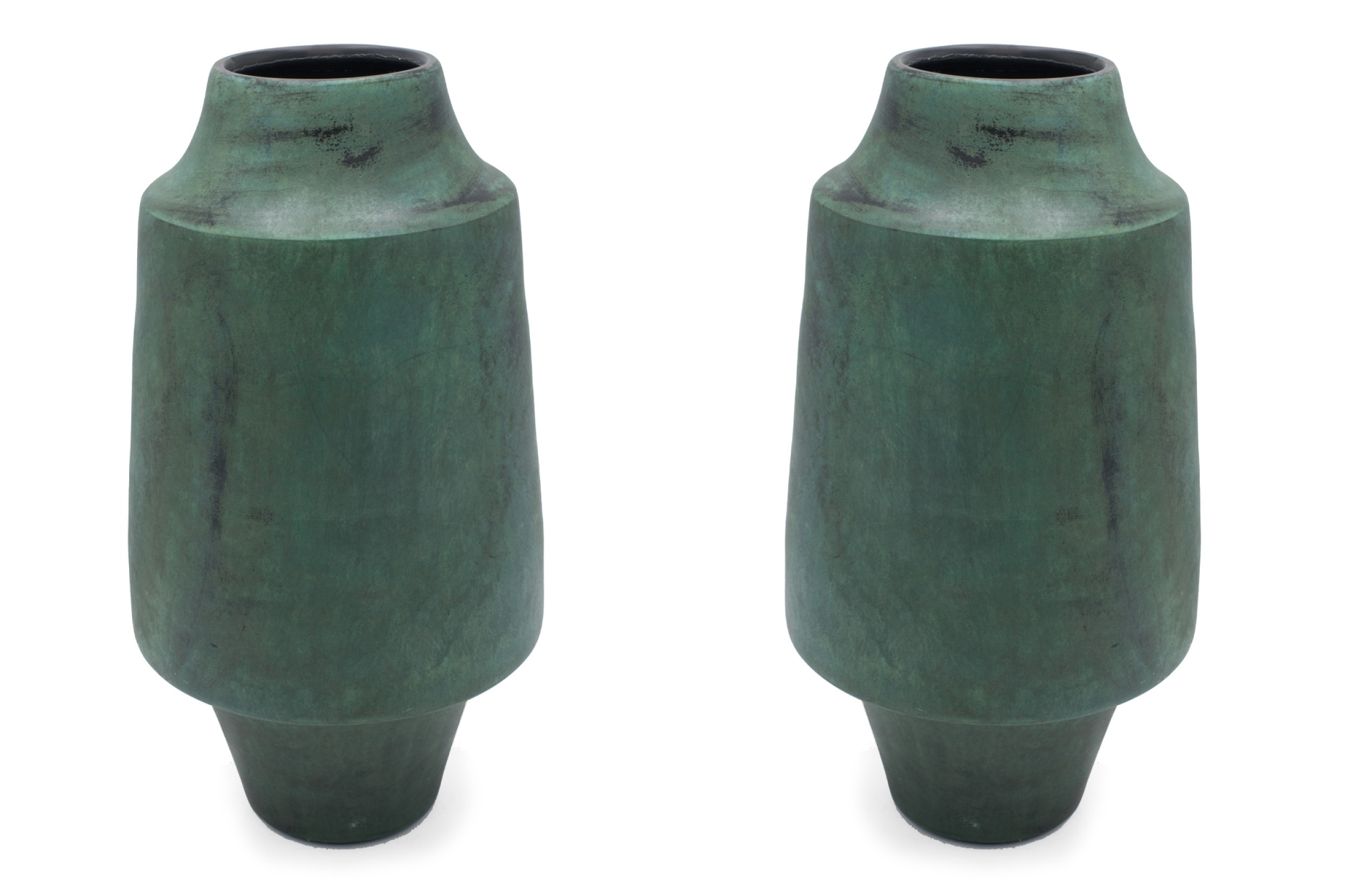 2 Contemporary ceramic vases with brushed green finish (Sm: 5"w x 10"h, Lg: 7"w x 13.5"h) (PRICED EACH)