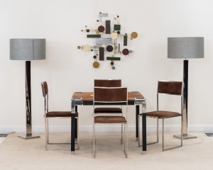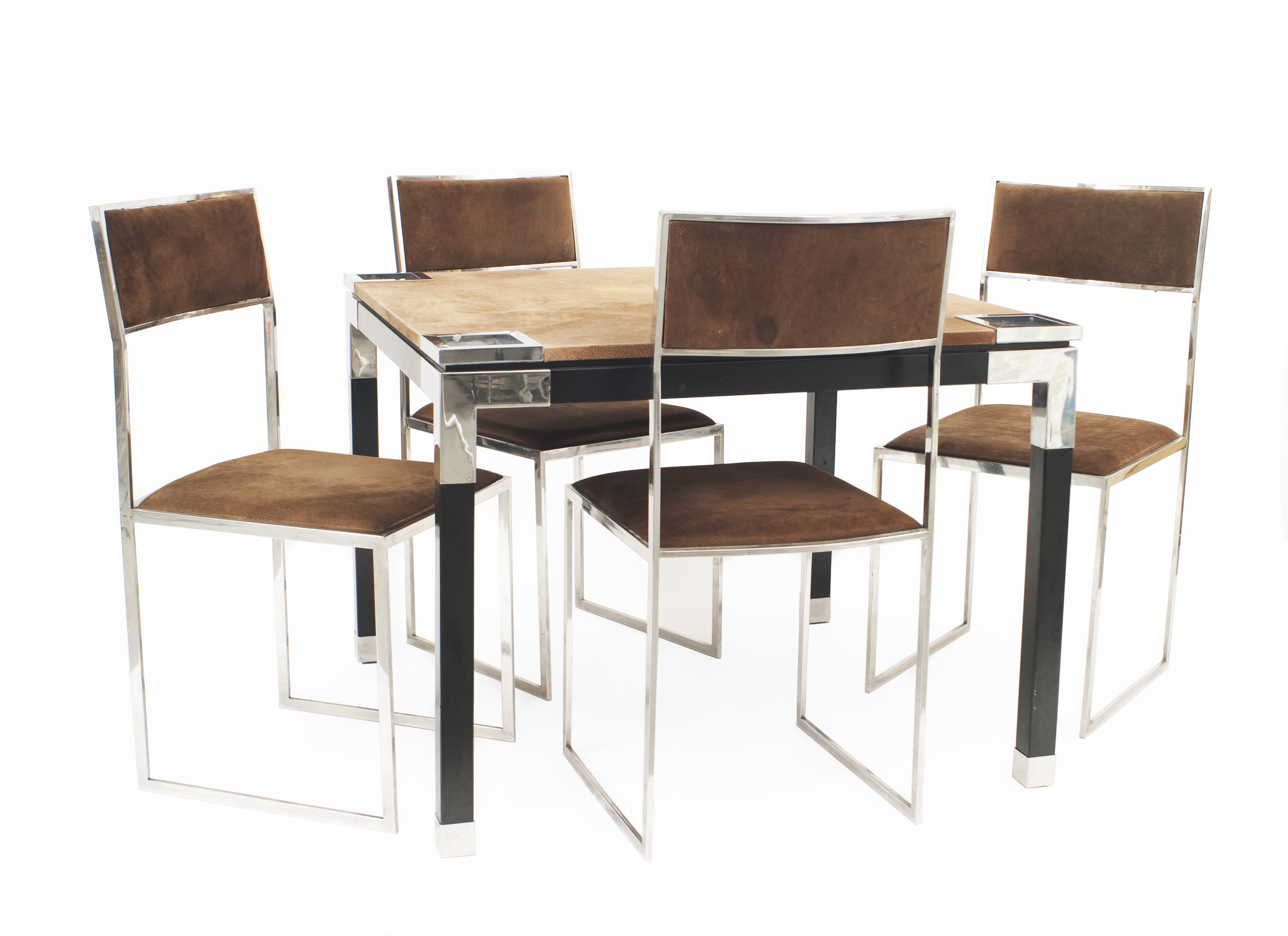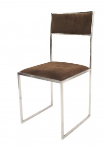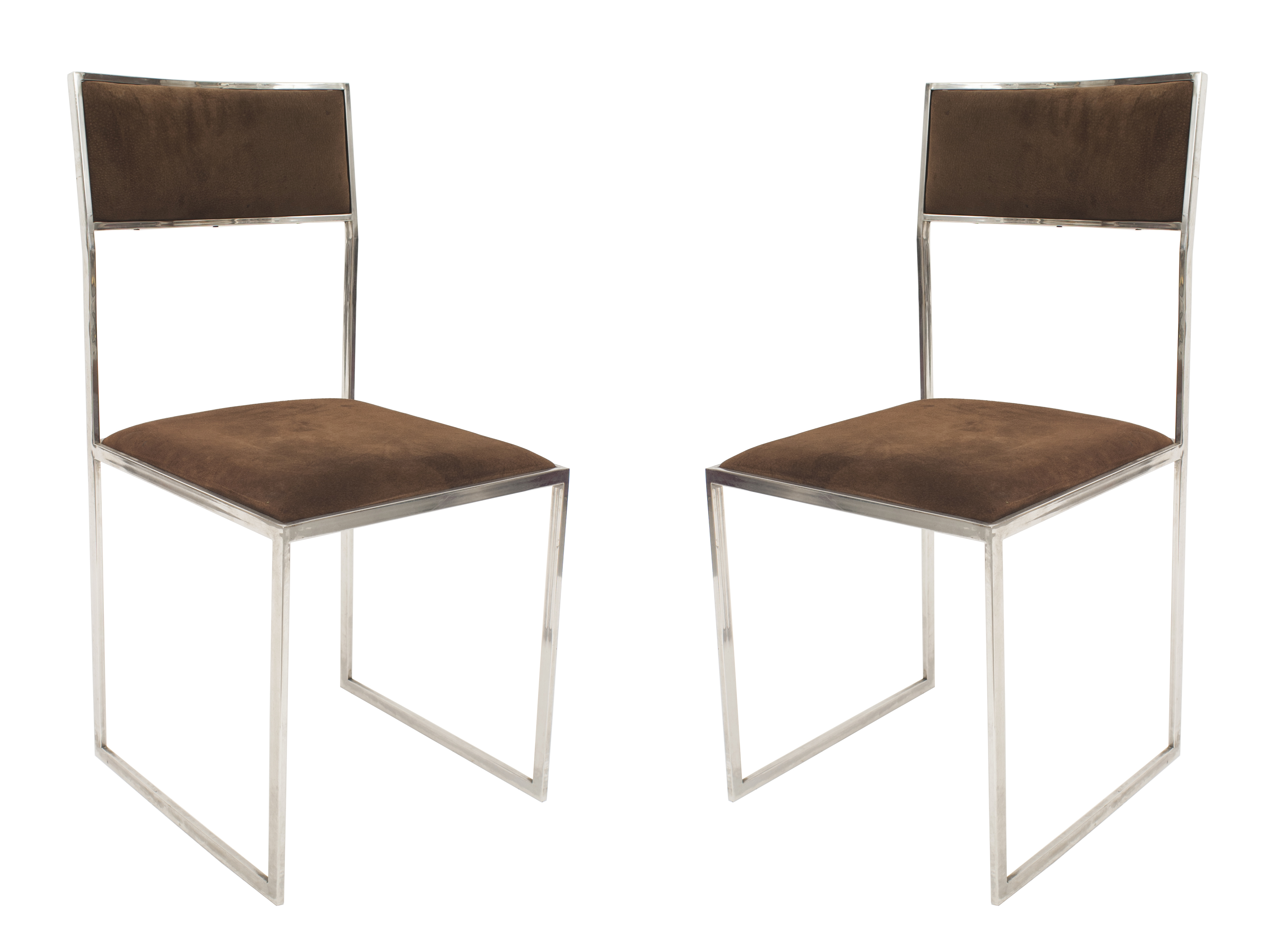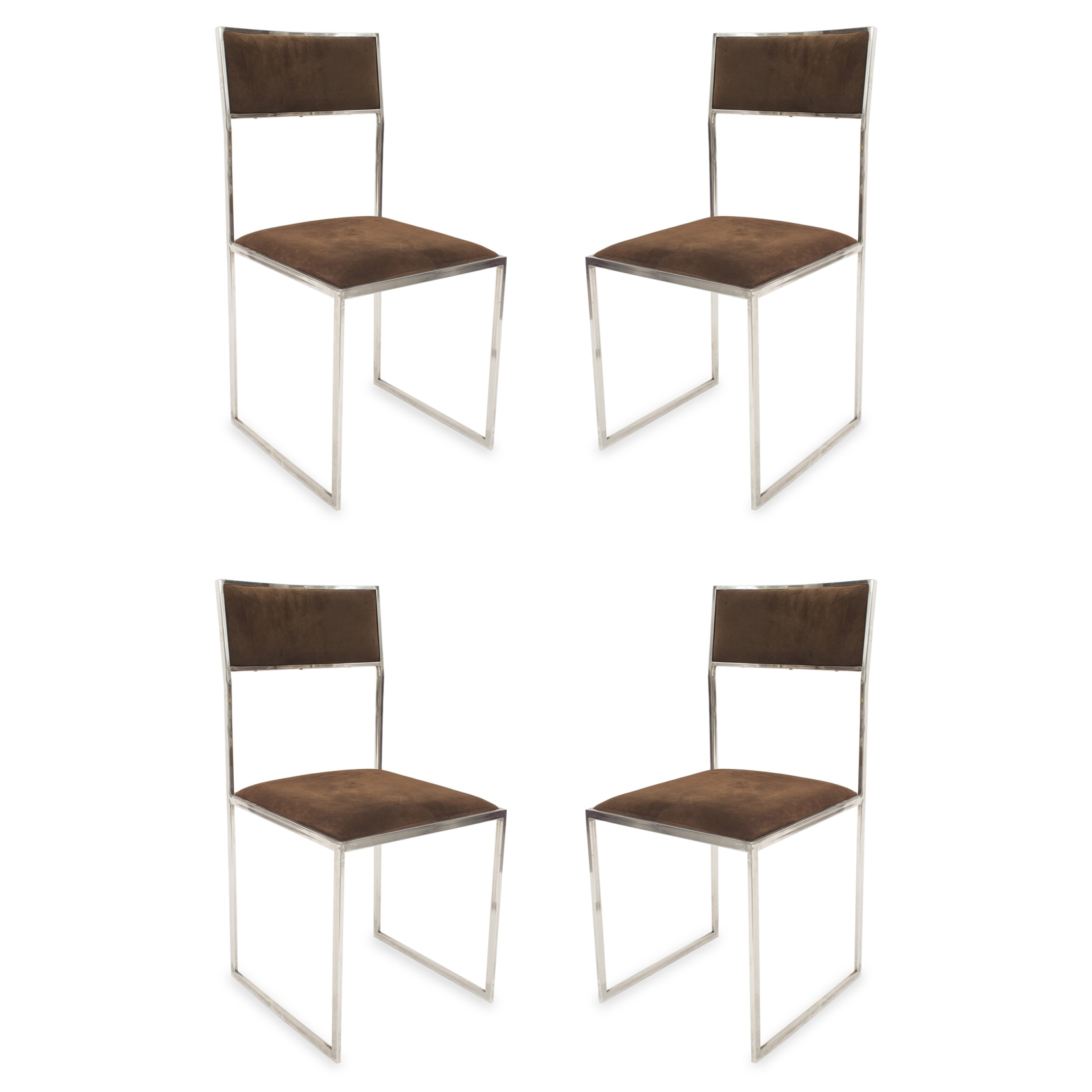 4 Italian Post War Design (1970s) chrome side chairs with brown suede upholstered seat & back panel (PRICED EACH)